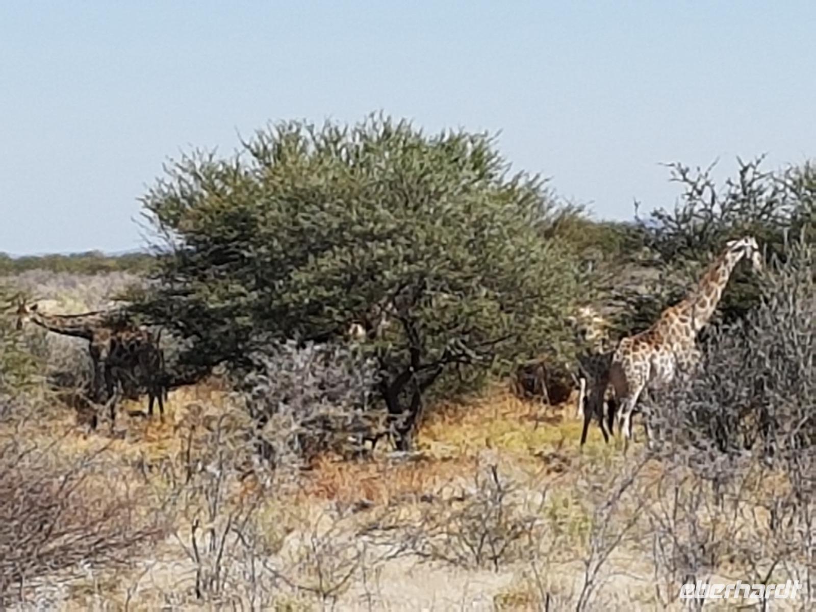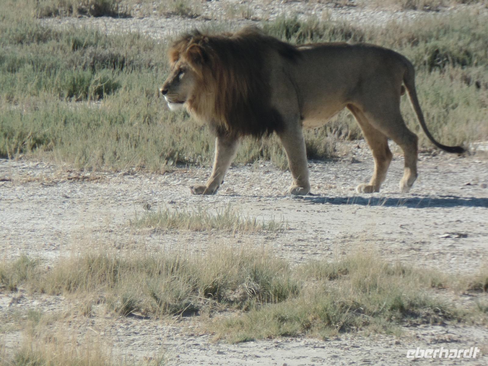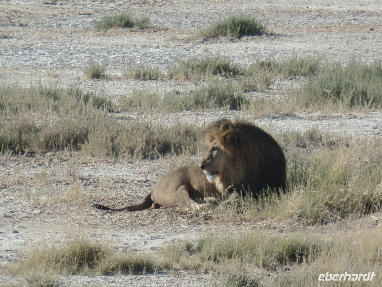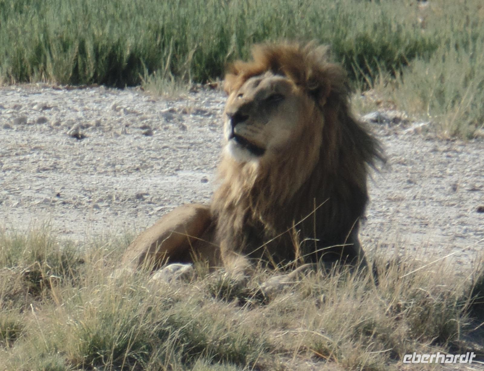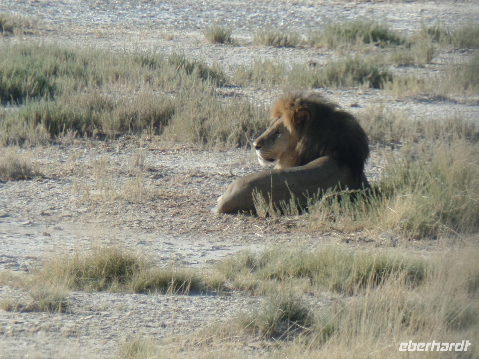 Ernst hat immer so ein Bauchgefühl und mit Hilfe auch von einer WhatsApp Gruppe wusste er manchmal, wo die besten Chancen waren und die Tiere sich aufhielten. Woran wir alle nicht glaubten war, dass wir Löwen begegnen. Doch sie waren da!! Für uns!! In Ruhe! König der Löwe!! Unsere Augen wollten es nicht glauben. Unfassbar, dass wir so etwas schönes erleben durften. Mit voller Dankbarkeit;) Wir konnten sie in Ruhe beobachten und die Zeit ging so langsam, dass wir eine Ewigkeit bei ihnen verbrachten. Es sind tolle Bilder entstanden Weiter fuhren wir zu einem Wasserloch wo ganz Afrika war. Ja, wirklich!! Wenn ich sage, ganz Afrika, meine ich: alle gemeinsam und friedlich die Giraffen, die Elefanten, die Onyx und Strauße, die Springböcke, Zebras, Gnus, der Schakal und 2 ganz lustige Warzenschweine. So friedlich müsste auch unsere Welt aussehen, wenn man die Nachrichten manchmal im Fernsehen sieht. Wunderschön!! Ab und zu kam auch ein Adler geflogen und so war die Natur in Ordnung. Und nicht nur Tiere sahen wir in Etosha, wie Elenantilope, Wasserbock. Kudu oder Schwarzgesicht-Impala wir sahen auch viele Vögel in den 2 Tagen: Sekretär, Schreiseeadler, Graureiher, Swainsonfrankolin sowie Riesentrappe und selbstverständlich den Strauß.