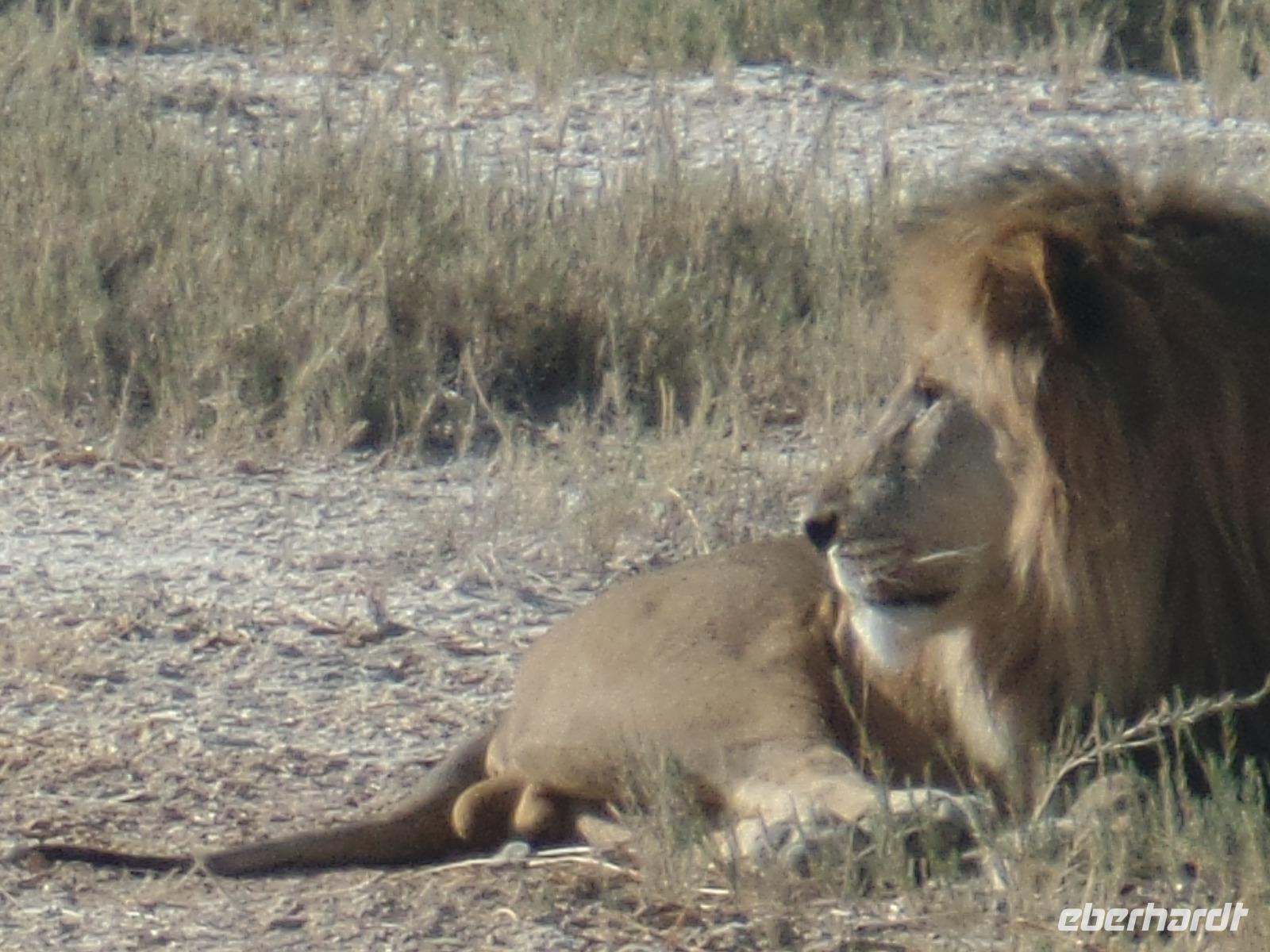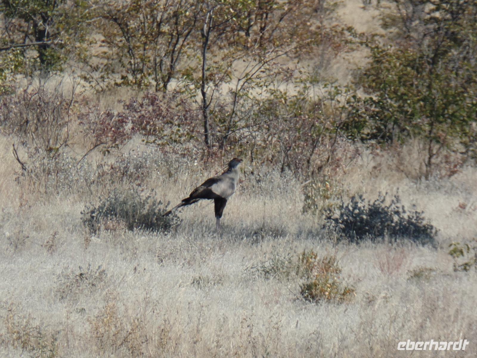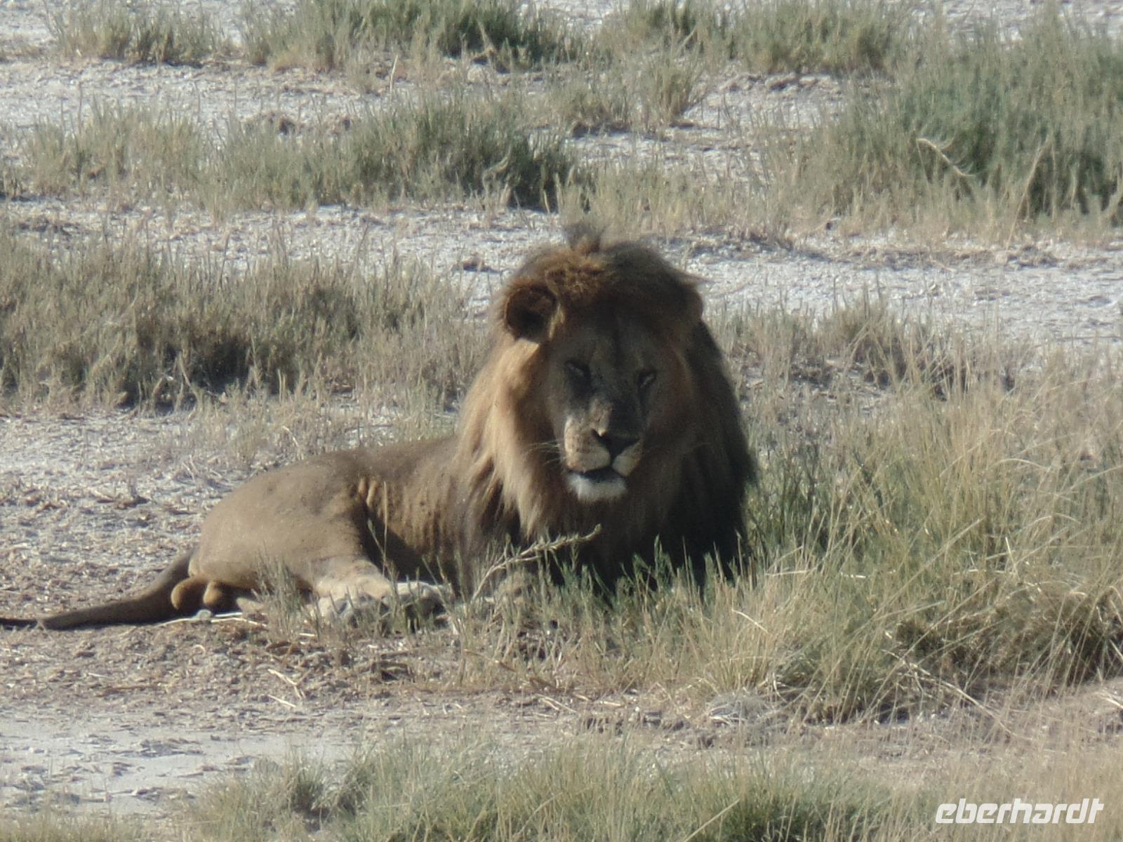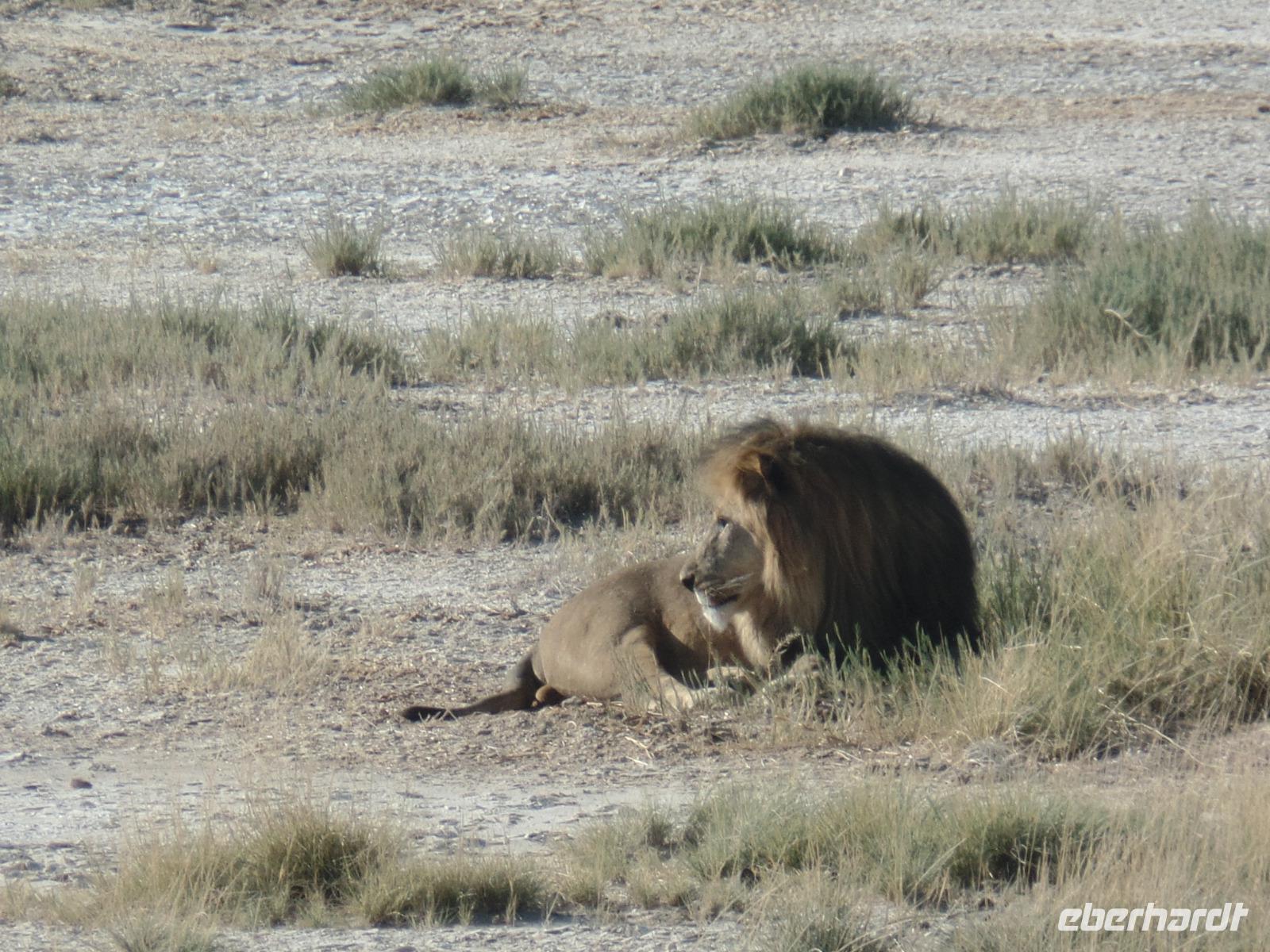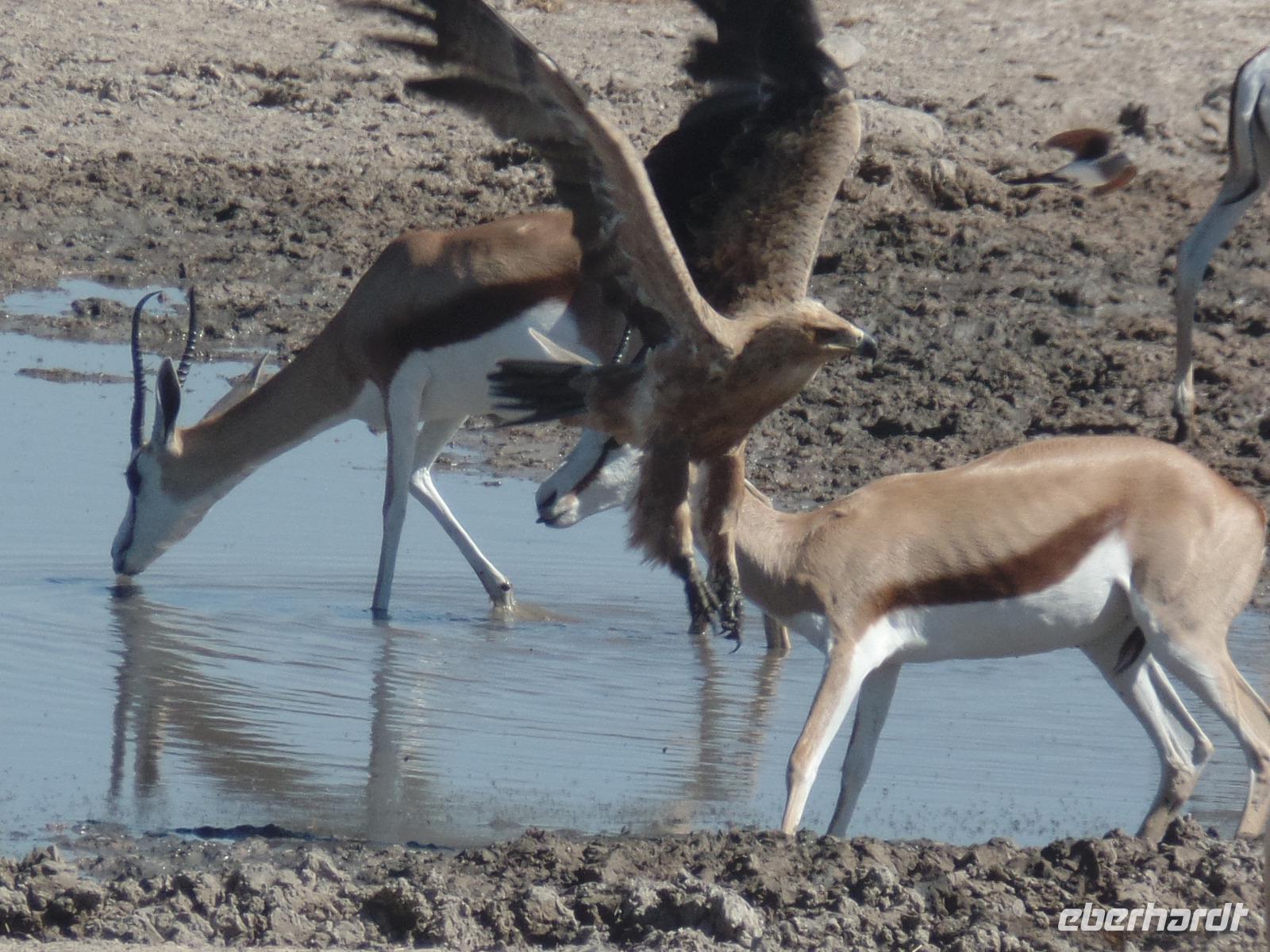 Ernst hat immer so ein Bauchgefühl und mit Hilfe auch von einer WhatsApp Gruppe wusste er manchmal, wo die besten Chancen waren und die Tiere sich aufhielten. Woran wir alle nicht glaubten war, dass wir Löwen begegnen. Doch sie waren da!! Für uns!! In Ruhe! König der Löwe!! Unsere Augen wollten es nicht glauben. Unfassbar, dass wir so etwas schönes erleben durften. Mit voller Dankbarkeit;) Wir konnten sie in Ruhe beobachten und die Zeit ging so langsam, dass wir eine Ewigkeit bei ihnen verbrachten. Es sind tolle Bilder entstanden Weiter fuhren wir zu einem Wasserloch wo ganz Afrika war. Ja, wirklich!! Wenn ich sage, ganz Afrika, meine ich: alle gemeinsam und friedlich die Giraffen, die Elefanten, die Onyx und Strauße, die Springböcke, Zebras, Gnus, der Schakal und 2 ganz lustige Warzenschweine. So friedlich müsste auch unsere Welt aussehen, wenn man die Nachrichten manchmal im Fernsehen sieht. Wunderschön!! Ab und zu kam auch ein Adler geflogen und so war die Natur in Ordnung. Und nicht nur Tiere sahen wir in Etosha, wie Elenantilope, Wasserbock. Kudu oder Schwarzgesicht-Impala wir sahen auch viele Vögel in den 2 Tagen: Sekretär, Schreiseeadler, Graureiher, Swainsonfrankolin sowie Riesentrappe und selbstverständlich den Strauß.