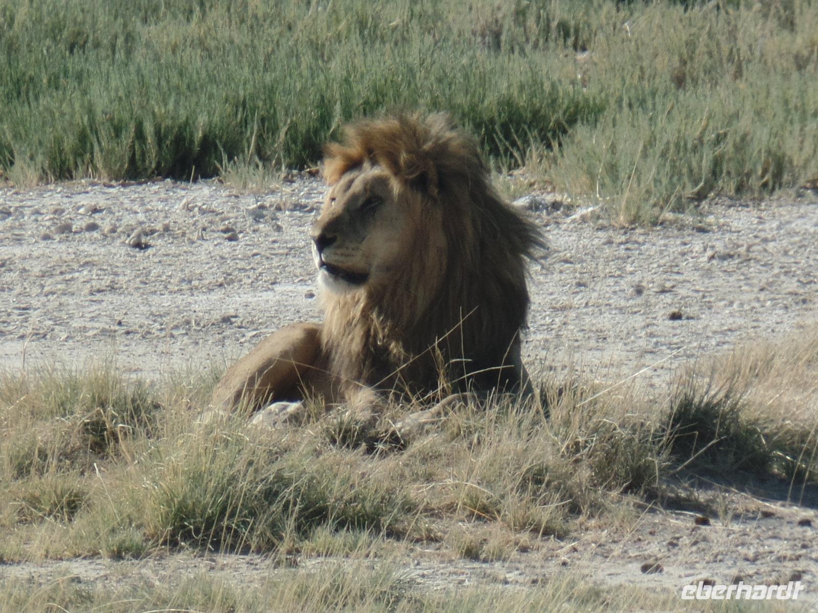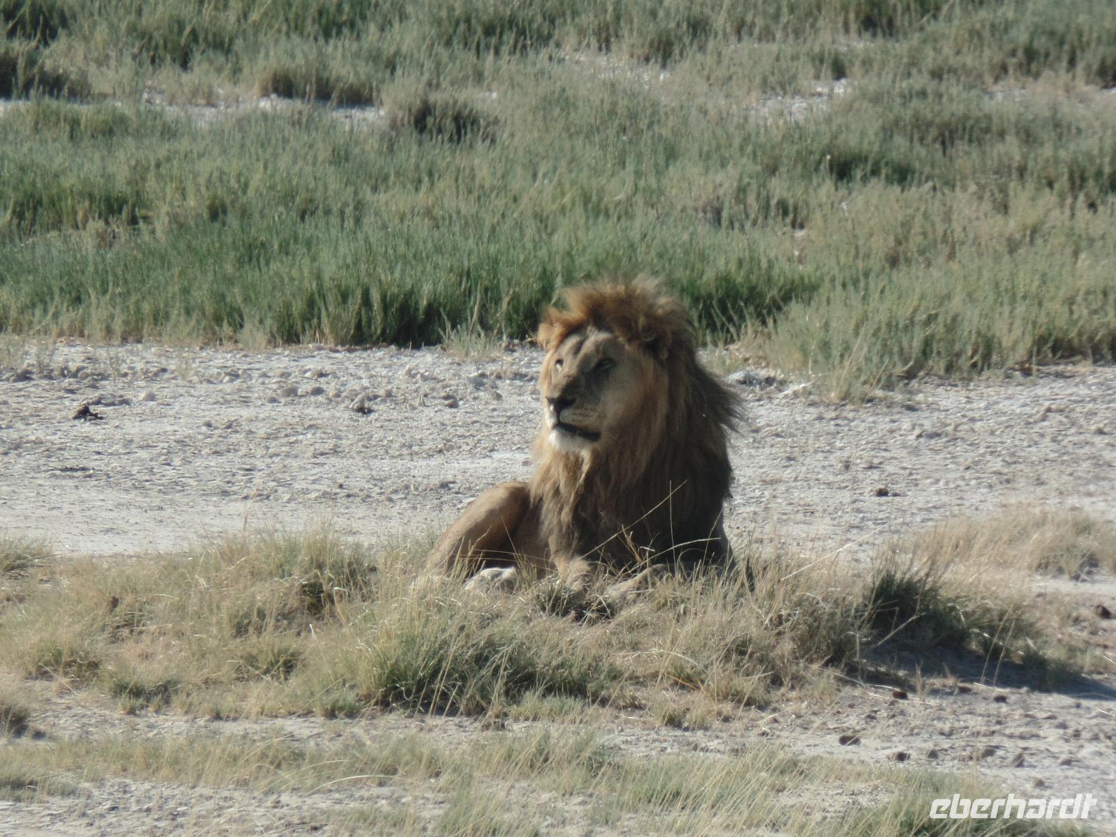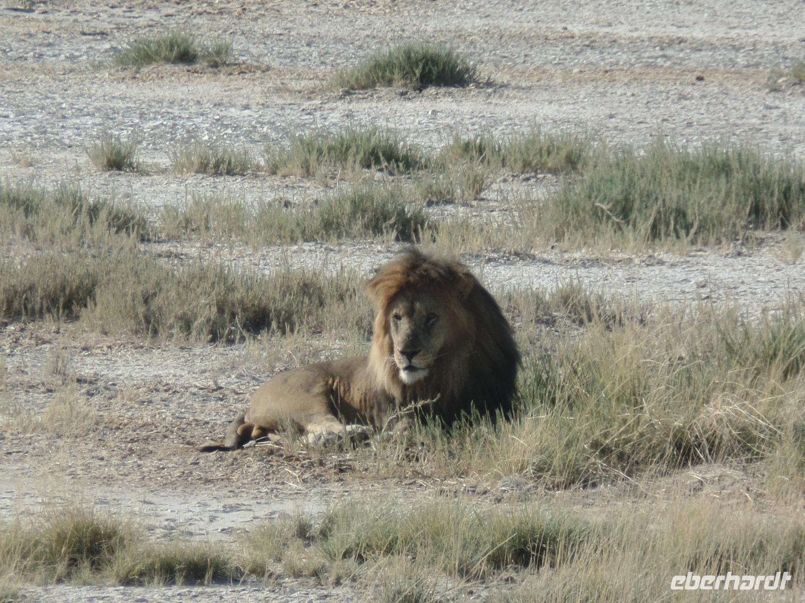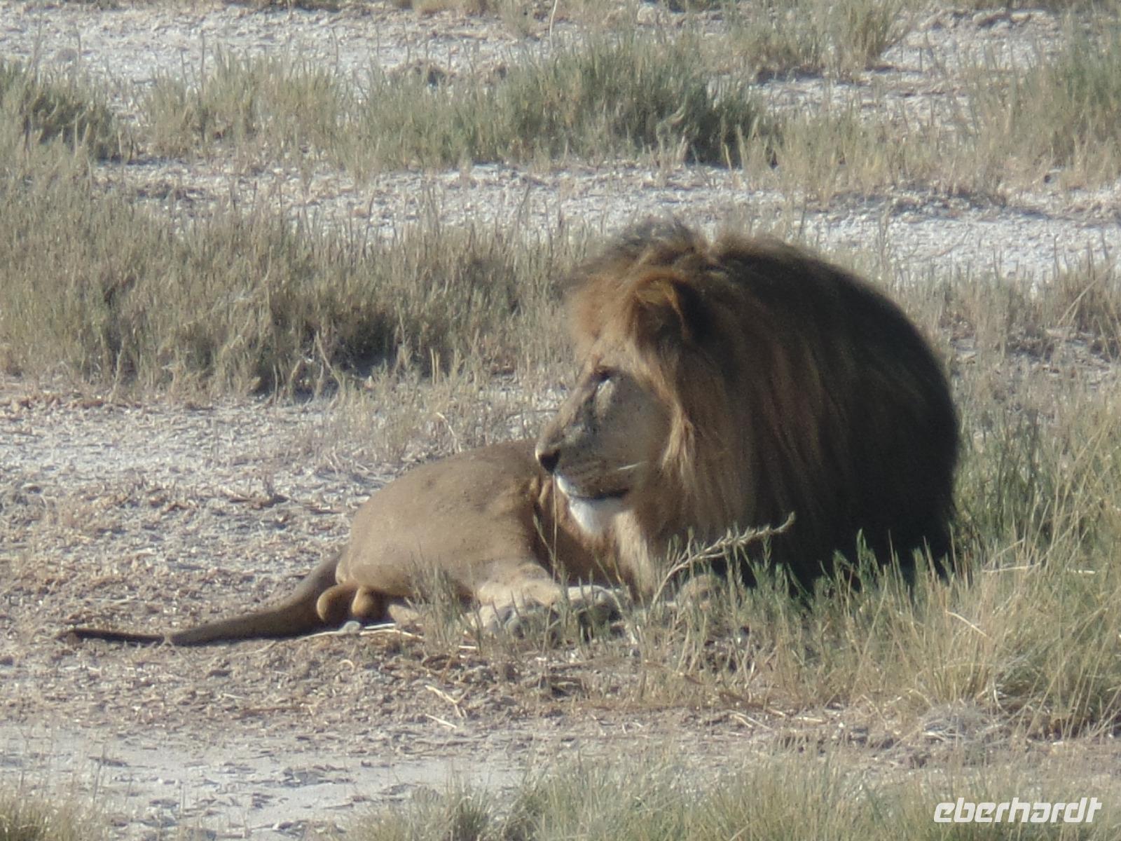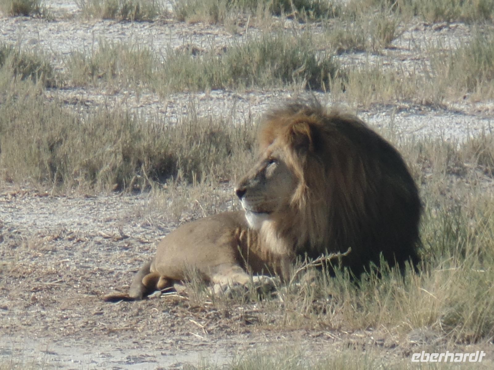 Ernst hat immer so ein Bauchgefühl und mit Hilfe auch von einer WhatsApp Gruppe wusste er manchmal, wo die besten Chancen waren und die Tiere sich aufhielten. Woran wir alle nicht glaubten war, dass wir Löwen begegnen. Doch sie waren da!! Für uns!! In Ruhe! König der Löwe!! Unsere Augen wollten es nicht glauben. Unfassbar, dass wir so etwas schönes erleben durften. Mit voller Dankbarkeit;) Wir konnten sie in Ruhe beobachten und die Zeit ging so langsam, dass wir eine Ewigkeit bei ihnen verbrachten. Es sind tolle Bilder entstanden Weiter fuhren wir zu einem Wasserloch wo ganz Afrika war. Ja, wirklich!! Wenn ich sage, ganz Afrika, meine ich: alle gemeinsam und friedlich die Giraffen, die Elefanten, die Onyx und Strauße, die Springböcke, Zebras, Gnus, der Schakal und 2 ganz lustige Warzenschweine. So friedlich müsste auch unsere Welt aussehen, wenn man die Nachrichten manchmal im Fernsehen sieht. Wunderschön!! Ab und zu kam auch ein Adler geflogen und so war die Natur in Ordnung. Und nicht nur Tiere sahen wir in Etosha, wie Elenantilope, Wasserbock. Kudu oder Schwarzgesicht-Impala wir sahen auch viele Vögel in den 2 Tagen: Sekretär, Schreiseeadler, Graureiher, Swainsonfrankolin sowie Riesentrappe und selbstverständlich den Strauß.