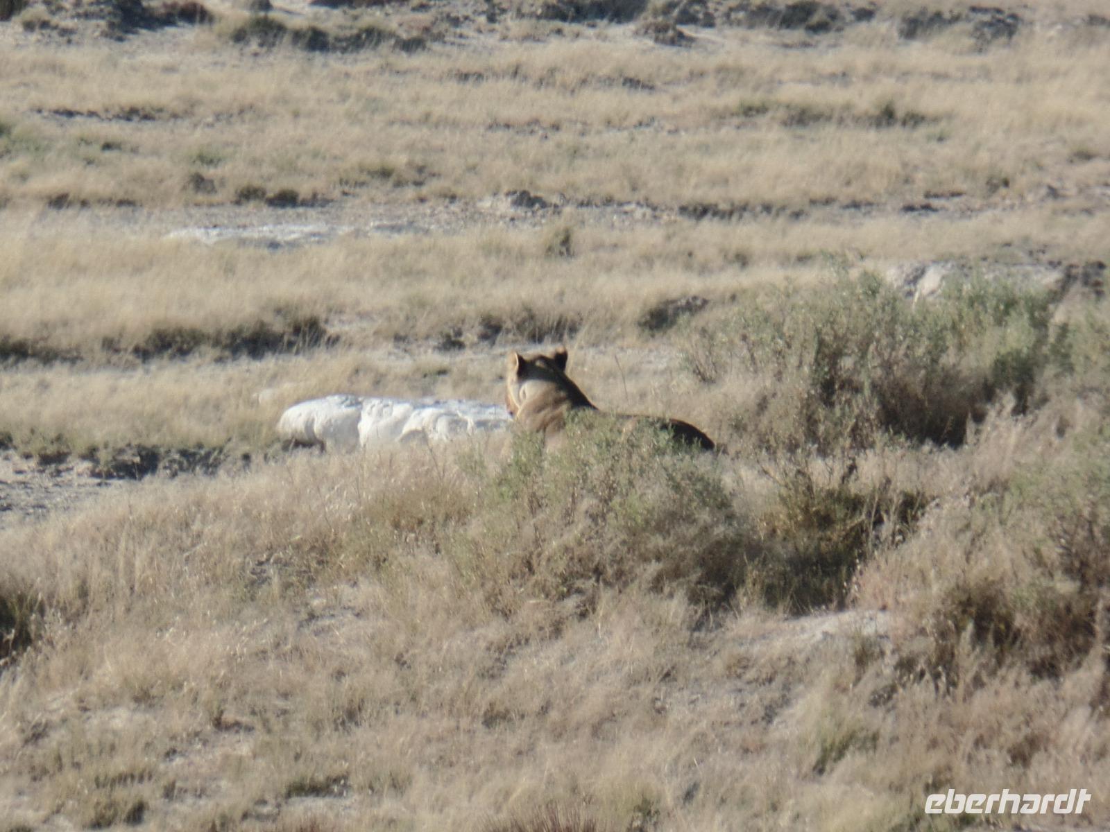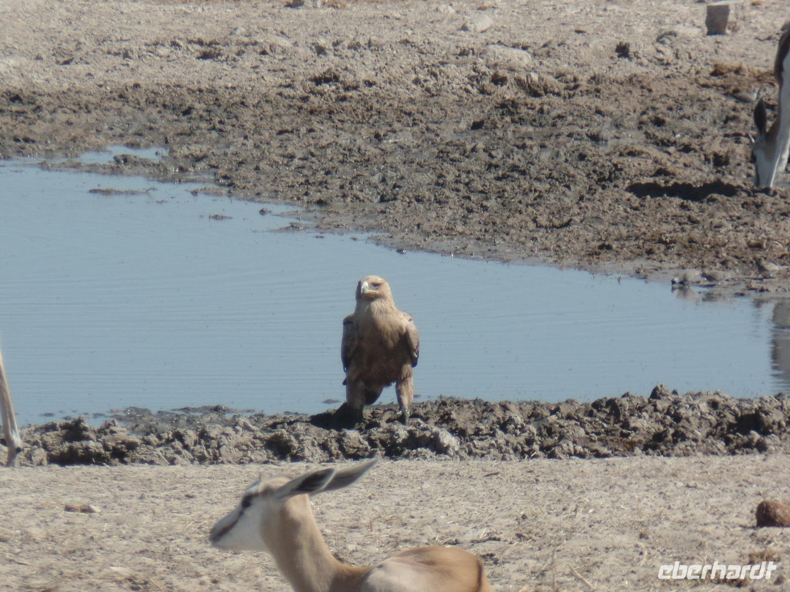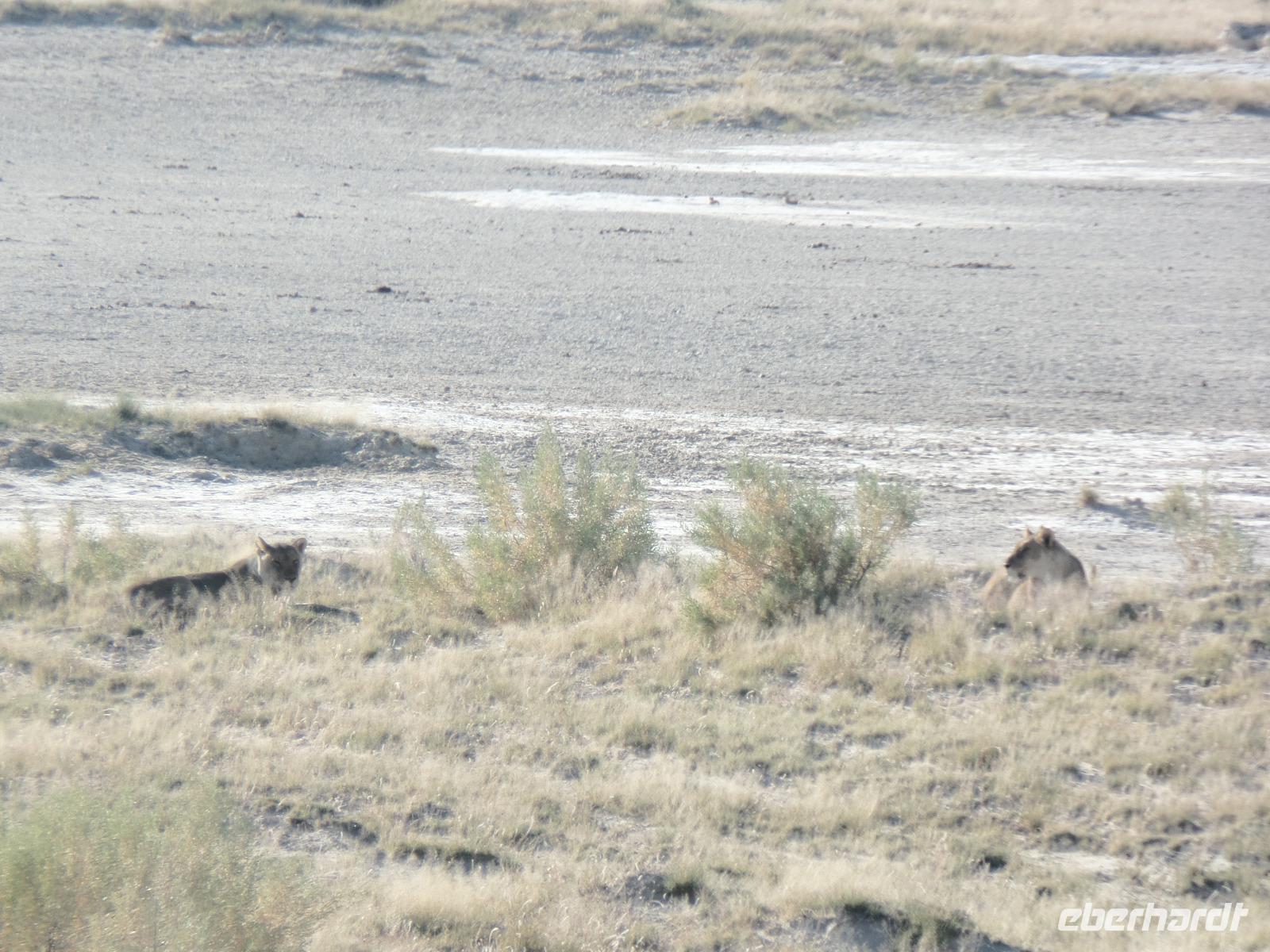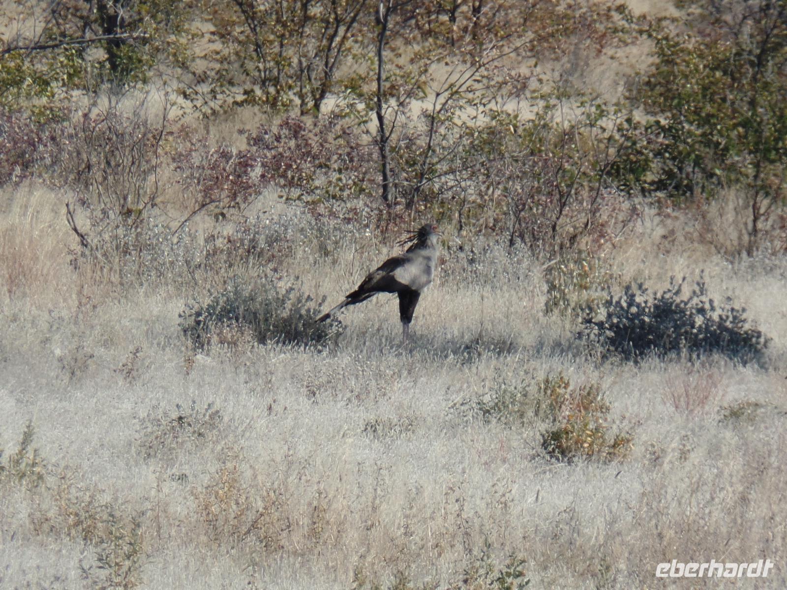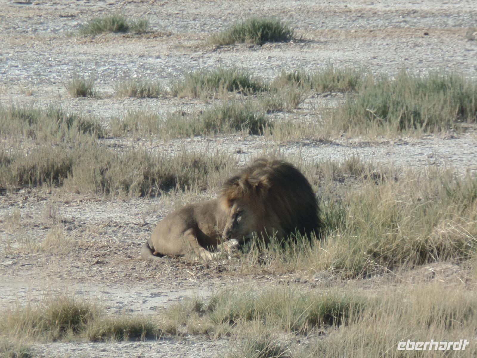Ernst hat immer so ein Bauchgefühl und mit Hilfe auch von einer WhatsApp Gruppe wusste er manchmal, wo die besten Chancen waren und die Tiere sich aufhielten. Woran wir alle nicht glaubten war, dass wir Löwen begegnen. Doch sie waren da!! Für uns!! In Ruhe! König der Löwe!! Unsere Augen wollten es nicht glauben. Unfassbar, dass wir so etwas schönes erleben durften. Mit voller Dankbarkeit;) Wir konnten sie in Ruhe beobachten und die Zeit ging so langsam, dass wir eine Ewigkeit bei ihnen verbrachten. Es sind tolle Bilder entstanden Weiter fuhren wir zu einem Wasserloch wo ganz Afrika war. Ja, wirklich!! Wenn ich sage, ganz Afrika, meine ich: alle gemeinsam und friedlich die Giraffen, die Elefanten, die Onyx und Strauße, die Springböcke, Zebras, Gnus, der Schakal und 2 ganz lustige Warzenschweine. So friedlich müsste auch unsere Welt aussehen, wenn man die Nachrichten manchmal im Fernsehen sieht. Wunderschön!! Ab und zu kam auch ein Adler geflogen und so war die Natur in Ordnung. Und nicht nur Tiere sahen wir in Etosha, wie Elenantilope, Wasserbock. Kudu oder Schwarzgesicht-Impala wir sahen auch viele Vögel in den 2 Tagen: Sekretär, Schreiseeadler, Graureiher, Swainsonfrankolin sowie Riesentrappe und selbstverständlich den Strauß.