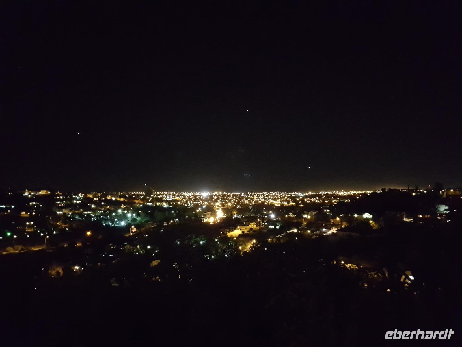 Eigentlich wollten wir nicht die Schönheit von Etosha verlassen, aber wie Irmgard sagt:" Alles hat ein Ende außer die Wurst, die hat keine?? Wir fuhren Richtung Windhoek via Otjiwarongo. Diese Region ist sehr fruchtbar, was sich auch in der grünen und wohlhabenden Stadt widerspiegelt. In der Hererosprache bedeutet der Name "schöner Platz der fetten Rinder". Wir fuhren am Bahnhof vorbei, wo sich ein Kleinod für Eisenbahnliebhaber befindet: eine in Deutschland gebaute Schmalspurlokomotive, die bis 1960 die Strecke Swakopmund - Tsumeb befuhr. Auf dem Weg weiter nach Windhoek entdeckten wir in der Ferne das Massiv des legendären Waterberges. Bevor wir in die namibianische Hauptstadt gelangen, besuchen wir auch Okahandja. Diese Stadt ist eng mit der Kultur der Hereros verbunden. Hier wurde der große Herero-Chief Mahahero beigesetzt, der sein Volk nach der verheerenden Schlacht am Waterberg durch die dürre Omaheke führte. Seitdem gedenken die Hereros an diesem Tag ihren Ahnen. Am frühen Nachmittag sind wir schon in Windhoek und unternehmen eine Rundfahrt durch die deutsch geprägte Stadt. Bis 1990 trug die zentrale Hauptstraße noch den Namen Kaiserstraße. Gegenüber der Christuskirche, wo wir anhalten steht seit kurzem der futuristische Bau des neuen Unabhängigkeitsmuseums. Das bekannte Reiterdenkmal Südwester aus dem Jahre 1912 tristet nun sein Dasein in den Mauern der Alten Feste. Hier hatten wir 3 Stunden Freizeit um gemeinsam oder individuell Windhoek auf eigene Faust zu entdecken. Anschließend fuhren wir zum idyllisch gelegenen Hotel Thule, welches traumhaft auf einem Hügel über Windhoek thront. Dort wurden wir mit Sekt auf die Terrasse mit Blick auf die Stadt empfangen. Wir genossen unser letztes Abendmahl in Namibia und ließen dabei die Reise noch einmal Revue passieren! Wir waren im besten Restaurant in Windhoek: Joe´s Beerhouse. Jeder konnte sich etwas von der Karte heraussuchen. Bevor wir ins Bett gingen wollten wir noch die Terrasse vom Hotel mit Blick auf Windhoek genießen, die Sterne des afrikanischen Himmels und das Kreuz des Südens.