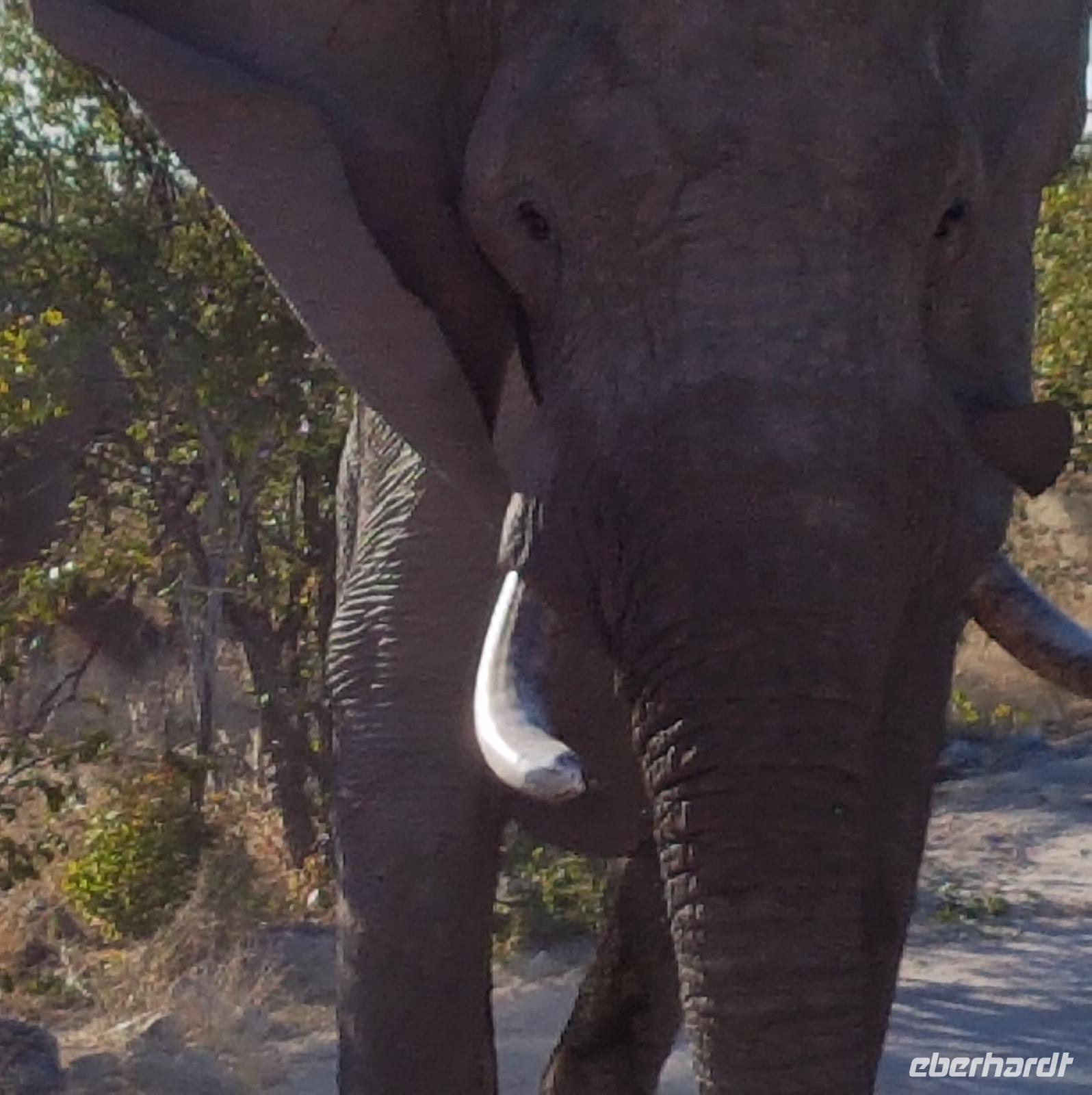 Kurz danach sahen wir heute ein Nashorn aber der lieber Gott hatte noch was für uns vorbereitet... ja die Reisegruppe von Benjamin hatte tierische Erlebnisse und wurde sogar von einem Elefanten verfolgt! In der Bildergalerie kann man den Moment sehen, wenn man von einem Elefantenbullen angegriffen wird. Uns ging es gut, aber wir hätten uns fast in die Hose gemacht oder auf hochdeutsch geka.... aber tolle Bilder:) Wir waren alle begeistert, sowas so nah zu erleben aber danach war kein Toiletten Papier mehr bei uns;) ach Tja, die Welt ist schön;) Tja, so ist das mit den einsamen, älteren Herren (es war doch ein alter Bulle), die fordern Aufmerksamkeit manchmal mit Getöse ein. Außer Geparden, die wir schon am Anfang der Reise sahen, hatten wir das Glück sehr nah viele und wichtige Tiere zu sehen und vor allem zu bestaunen. Wenn Engel Reisen, oder? Fast am Ausgang vom Park sahen noch einige Gäste von uns wieder ein Nashorn und mit voller Freude und Dankbarkeit im Herzen fuhren wir zu unserer Toshari Lodge, wo wir das Abendessen einnahmen. Bis dahin hatten wir das Erlebnis vom Elefantenangriff verarbeitet. Das erlebt man nicht jeden Tag.