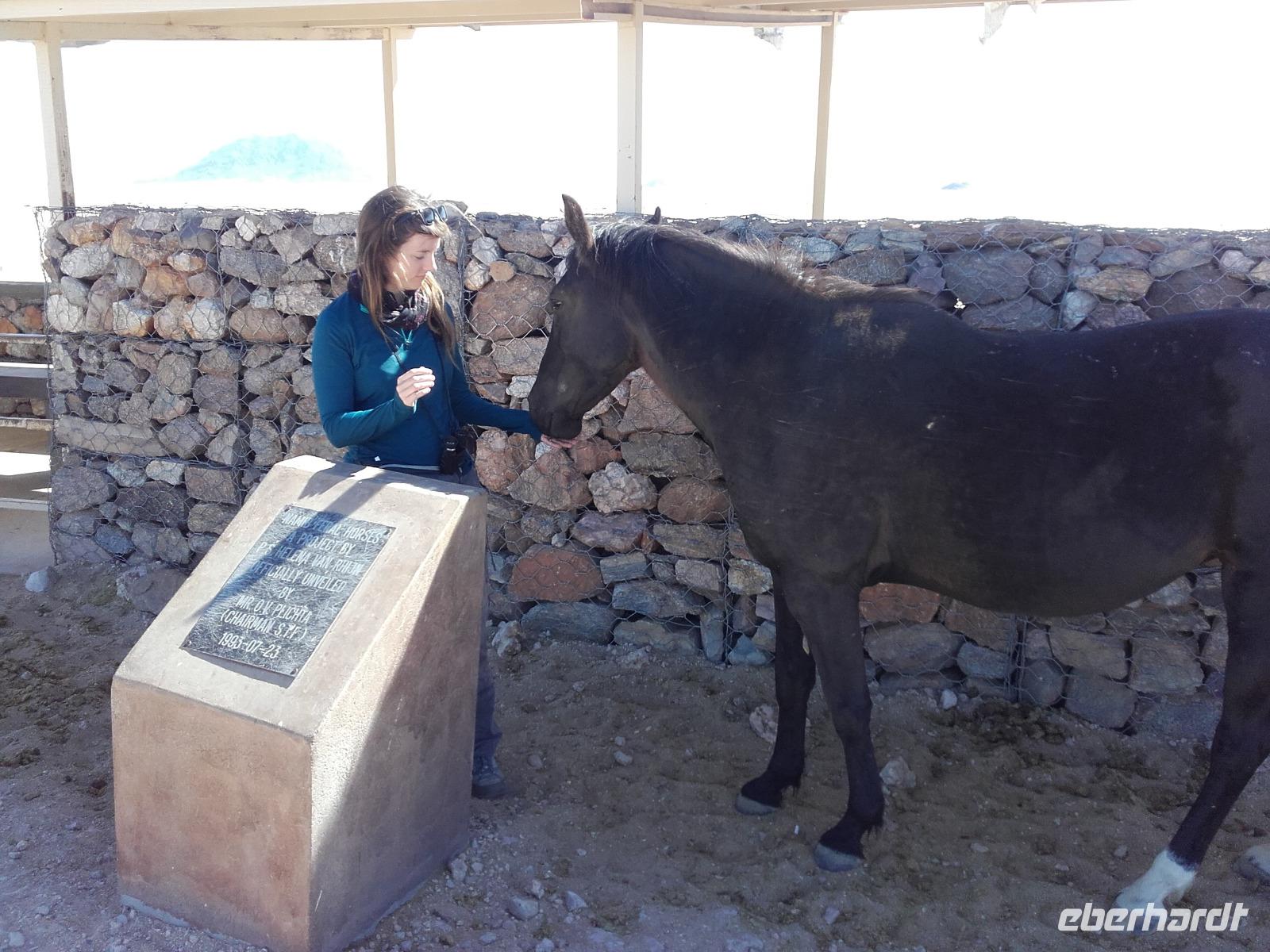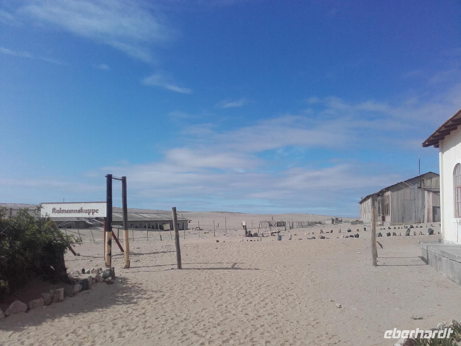 Es steht Geschichte auf dem Programm. In der heutigen Geisterstadt Kollmanskuppe schauen wir uns an, welche Technologien die Deutschen entwickelt haben, um der Wüste neben den heiß begehrten Diamanten auch ein möglichst bequemes Leben abzuringen. Ganz wichtig dabei: der Eisschrank, für den die Familien eine tägliche Ration aus der Eisfabrik geliefert bekamen. Auf die Suche nach bekannten Namen machen wir uns am britischen Friedhof bei Aus und probieren wilden Pfeffer, der am Wegesrand wächst. Schade, er ist noch nicht ganz reif, aber auf jeden Fall sehr hübsch!