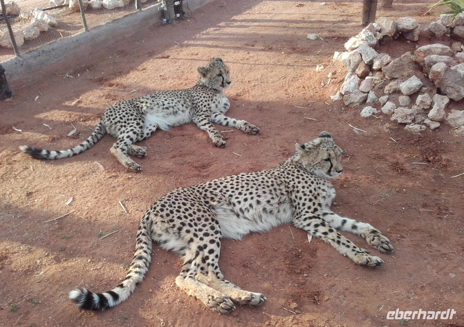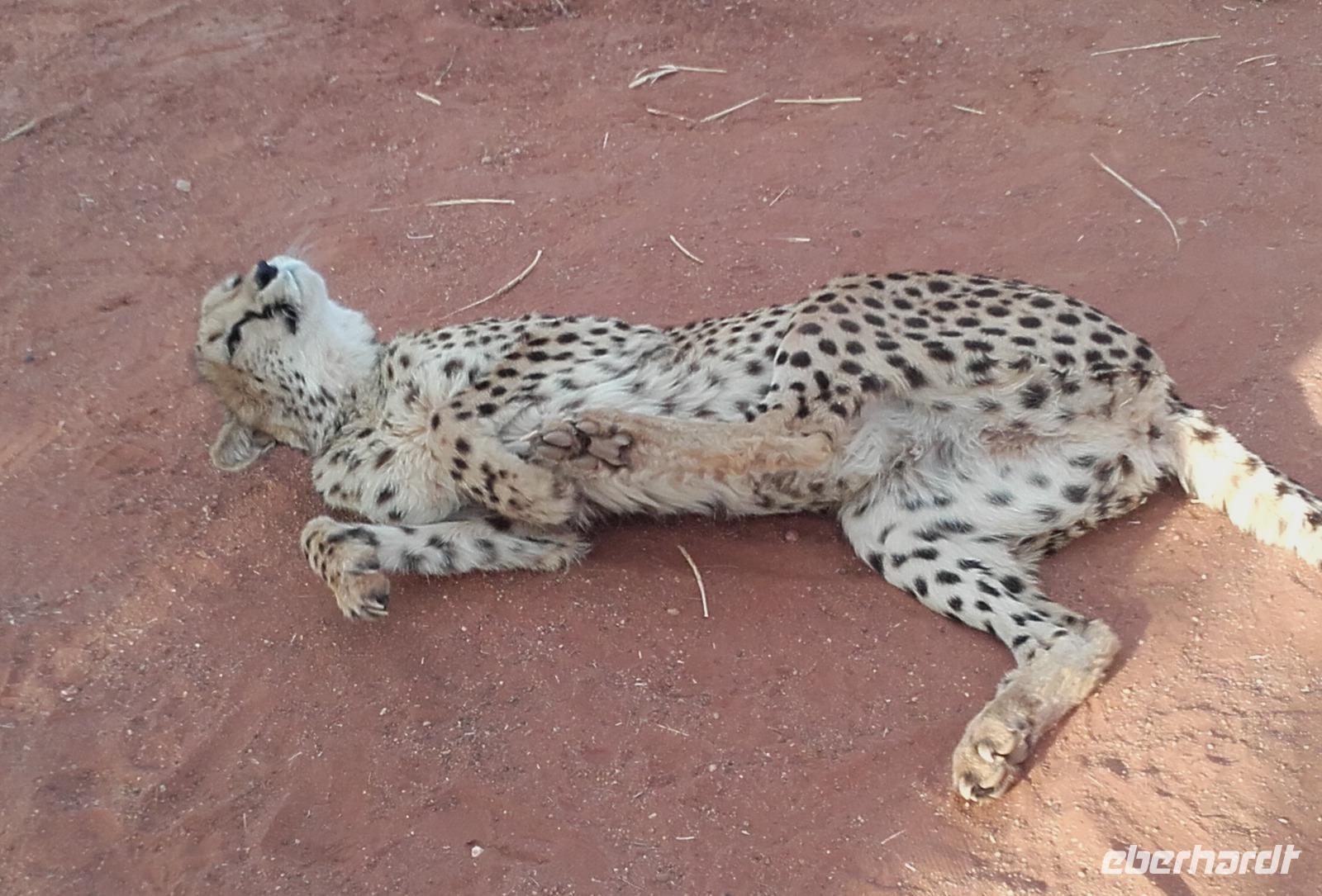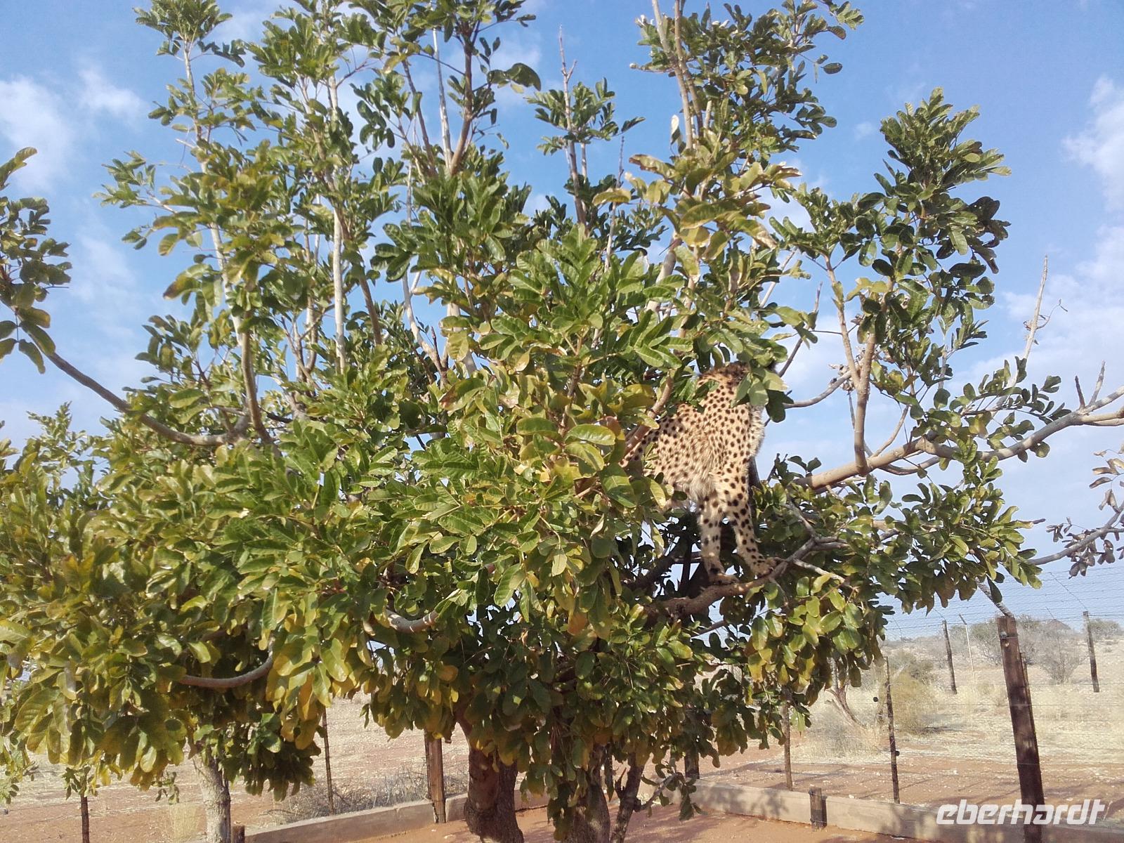 Es kann auf jeden Fall noch besser weitergehen, nach dem Frühstück schließen wir am nächsten Morgen Freundschaft mit großen Miezekatzen! Wer hätte gedacht, dass der schnellste Vierbeiner der Welt so ein freundlicher Kuschelpartner sein kann? Ein Mitarbeiter des Hotels zeigt uns das Gepardengehege, in dem zwei Weibchen und ein Männchen aus verschiedenen Gründen ein neues Zuhause gefunden haben. So faszinierende Geschöpfe! In einem Moment schnurren sie beim Nackenkraulen wie Hauskatzen und im nächsten Moment geht es in einem Satz einen ganzen Baum hinauf. Wir können uns gar nicht losreißen, aber haben ja noch so viel vor!