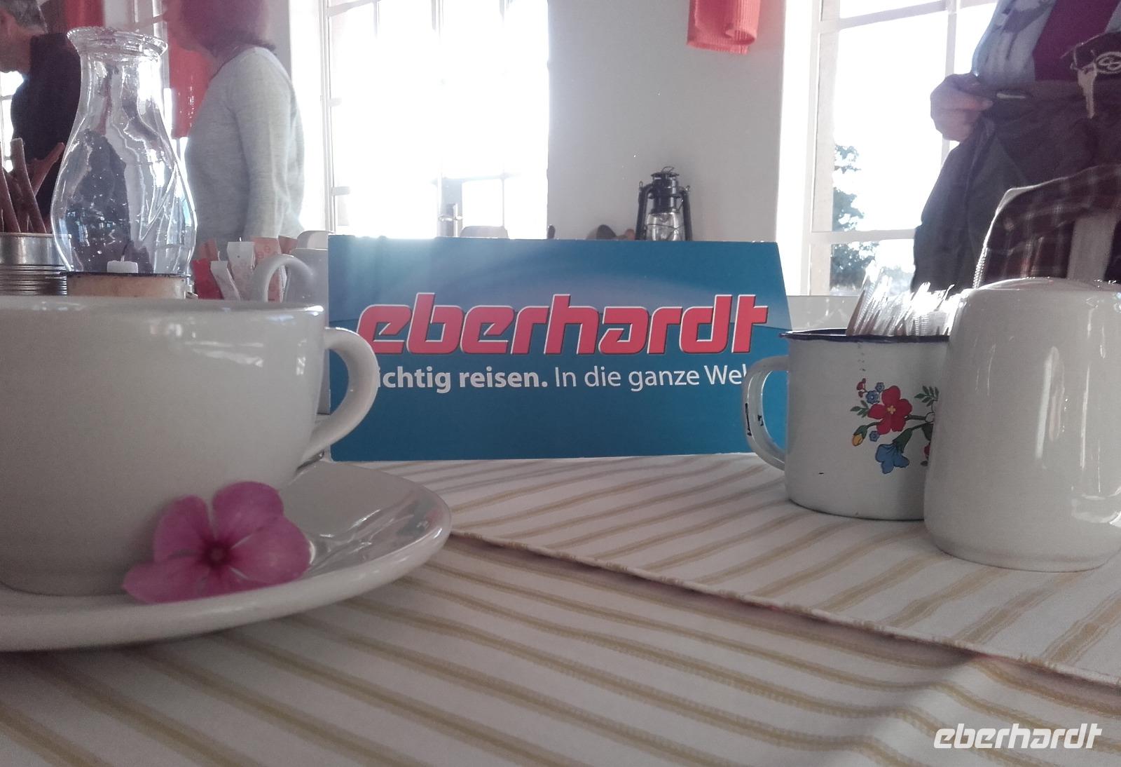 Da wir abends noch ein Date mit der Sonne haben (immer diese Anschlusstermine...), begeben wir uns „gemütlich aber flott" zur Mittagspause nach Helmeringhausen. Aber Zeit für leckere Bratwurst im Garten muss sein! Außerdem führen wir ja den national anerkannten Apfelkuchen-Contest durch, also gleich noch eine Kaffeepause mit dazu nehmen, wir sind ja nicht zum Spaß oder Urlaub hier, wir sind schließlich eine Reisegruppe. Dass Helmeringhausen Henners Lieblingsstadt in Namibia ist, verstehen wir sofort. Eine Straße, eine Tankstelle, ein Hotel, einen Tante-Emmaladen, eine Kneipe. Also alles, was man braucht, zum glücklich sein!