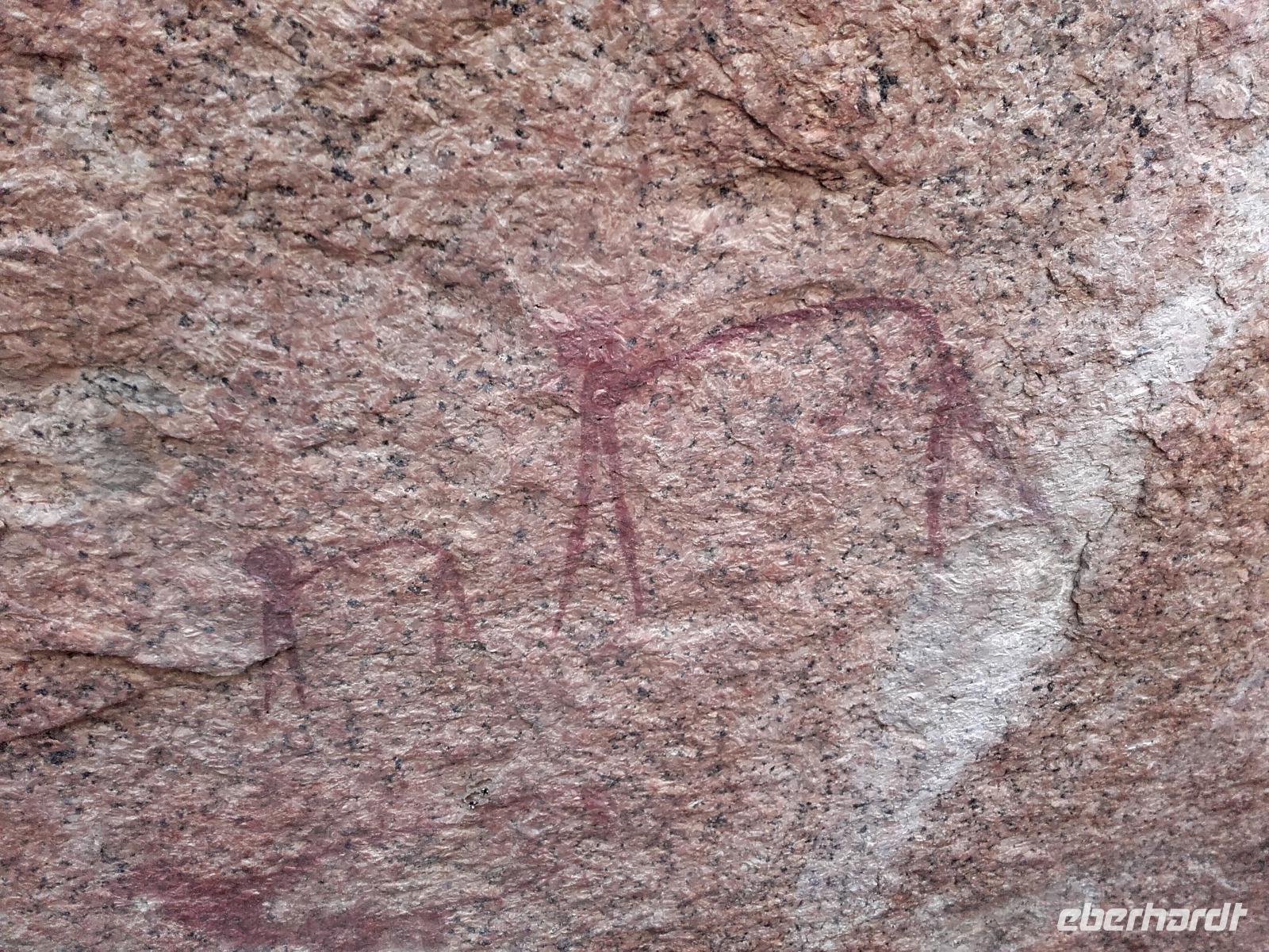 Bei unserem abendlichen Ausflug im Erongo-Gebirge erfüllt sich endlich unser Traum vom Bergzebra! Da könnten wir eigentlich gleich auch mit der Felsbemalung beginnen und Tierbeobachtungshinweise geben für die nächste Eberhardt-Reisegruppe :) Wie wir hier lernen, durfte es bei den Malereien auch spiritueller zugehen und so wurden immer wieder auch Träume dargestellt. Eines ist in jedem Fall mal wieder ganz klar: der Sonnenuntergang auf diesem Fleckchen Erde ist einfach traumhaft schön!