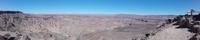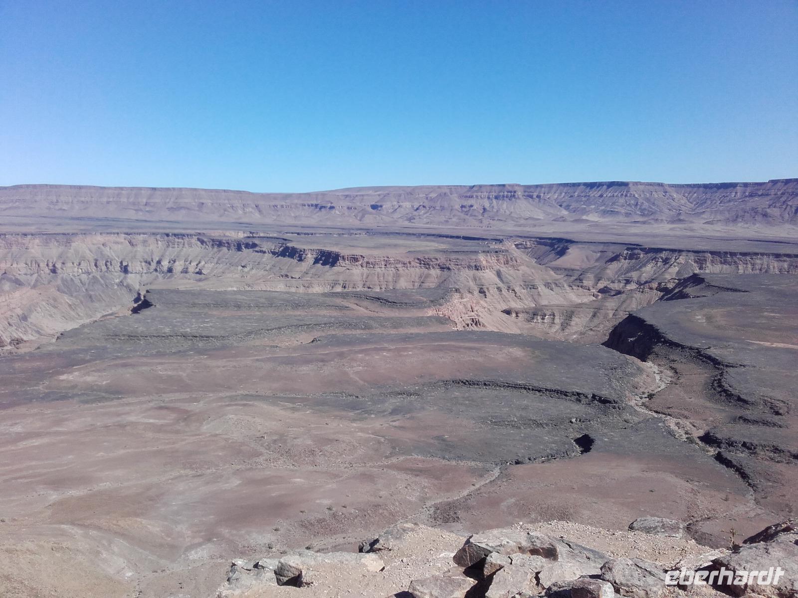 Heute werden wir aktiv! Wir gönnen uns eines der schönsten Ausflugsziele Namibias, den Fish River Canyon. Das Gebiet hat noch ein paar Superlative mehr zu bieten: Der Fischfluss ist der längste Fluss in Namibia und der von ihm ausgewaschene Canyon nicht nur der größte Afrikas, sondern sogar der zweitgrößte weltweit. Wir gucken uns das ganze Spektakel von oben aus an und spazieren einige Kilometer an der Kante entlang. Dabei neben sich senkrecht 550 Meter in die Tiefe zu blicken ist buchstäblich atemberaubend schön.