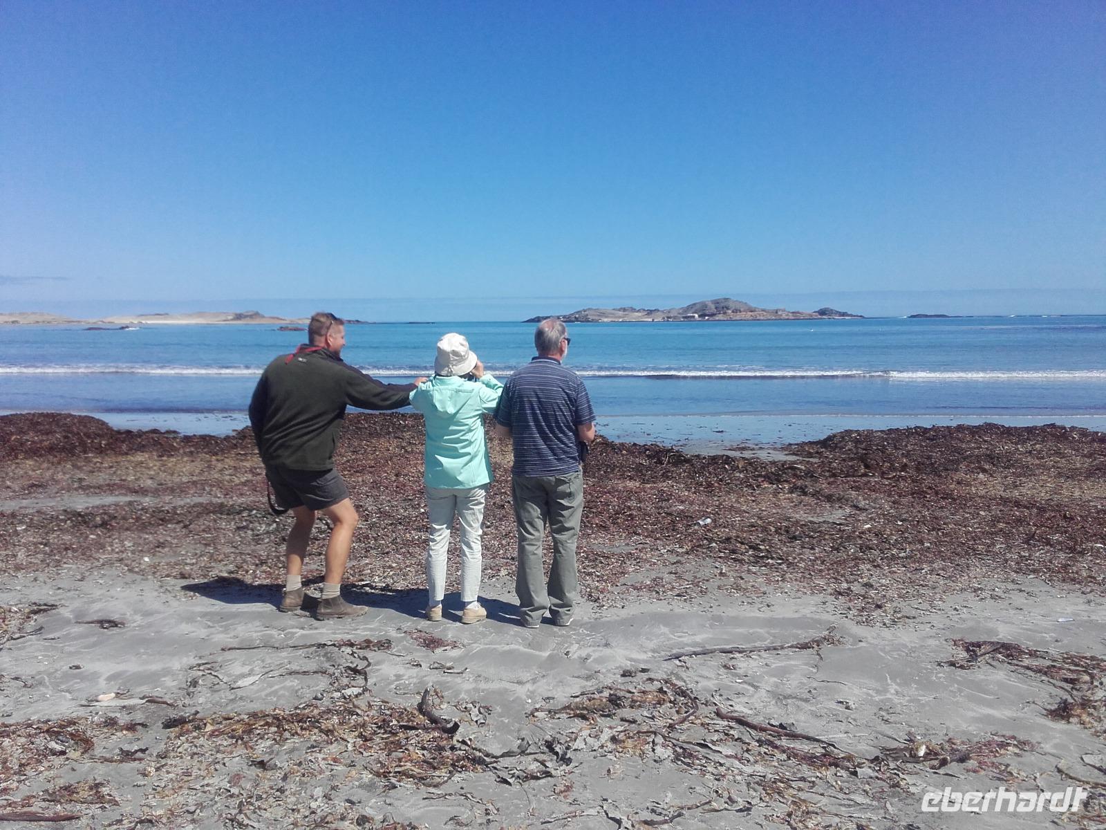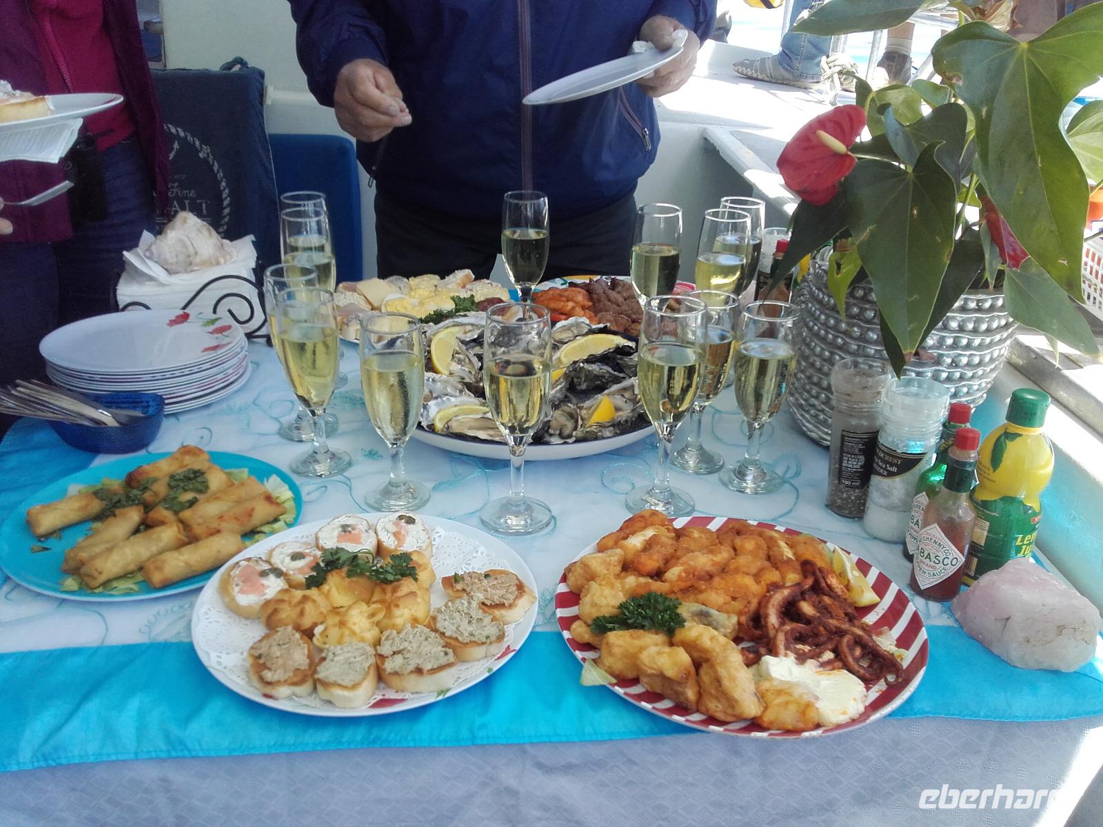 Und nachdem der Arm unserer Reisebegleitung samt Fisch im Pelikanrachen verschwunden ist, beschließen wir, es uns auch mal wieder kulinarisch gut gehen zu lassen. Die namibischen Austern sollen einzigartig sein. Mit viel Hingabe wird uns erklärt warum: Der Benguelastrom sorgt für Wassertemperaturen und Nahrung, die die Austern so gerne mögen, dass sie hier sogar schneller wachsen, als in ihrer eigentlichen Heimat im Pazifik. Und das schmeckt man!
