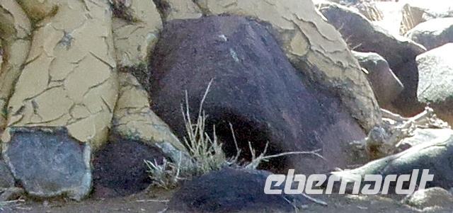 Wüste, Wüste, Wüste... damit man dabei nicht völlig durcheinanderkommt, hat der liebe Gott eine gerade Linie in die Landschaft gezogen: der Kuiseb-Fluss trennt die Sand- von der Geröllwüste. Im Kuiseb-Canyon begeben wir uns auf literarische Spurensuche. Wir tapsen einen Sand-Geröllpfad hinunter und schauen uns um auf einem der Originalschauplätze des tollen Buches „Wenn es Krieg gibt, gehen wir in die Wüste". Erneut beeindruckt uns, wie die beiden Geologen dieser unwirtlichen Gegend ihr Überleben abringen konnten.