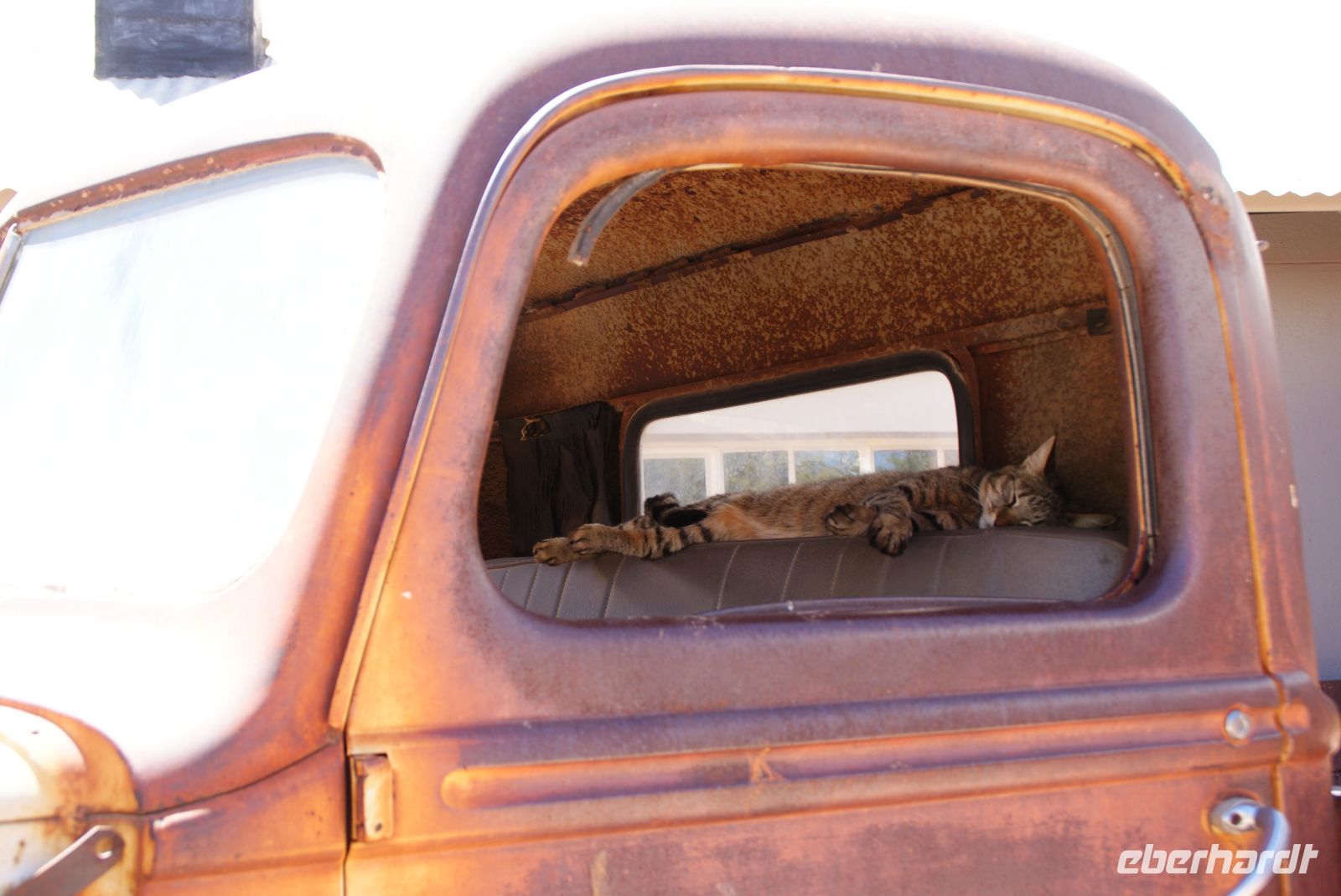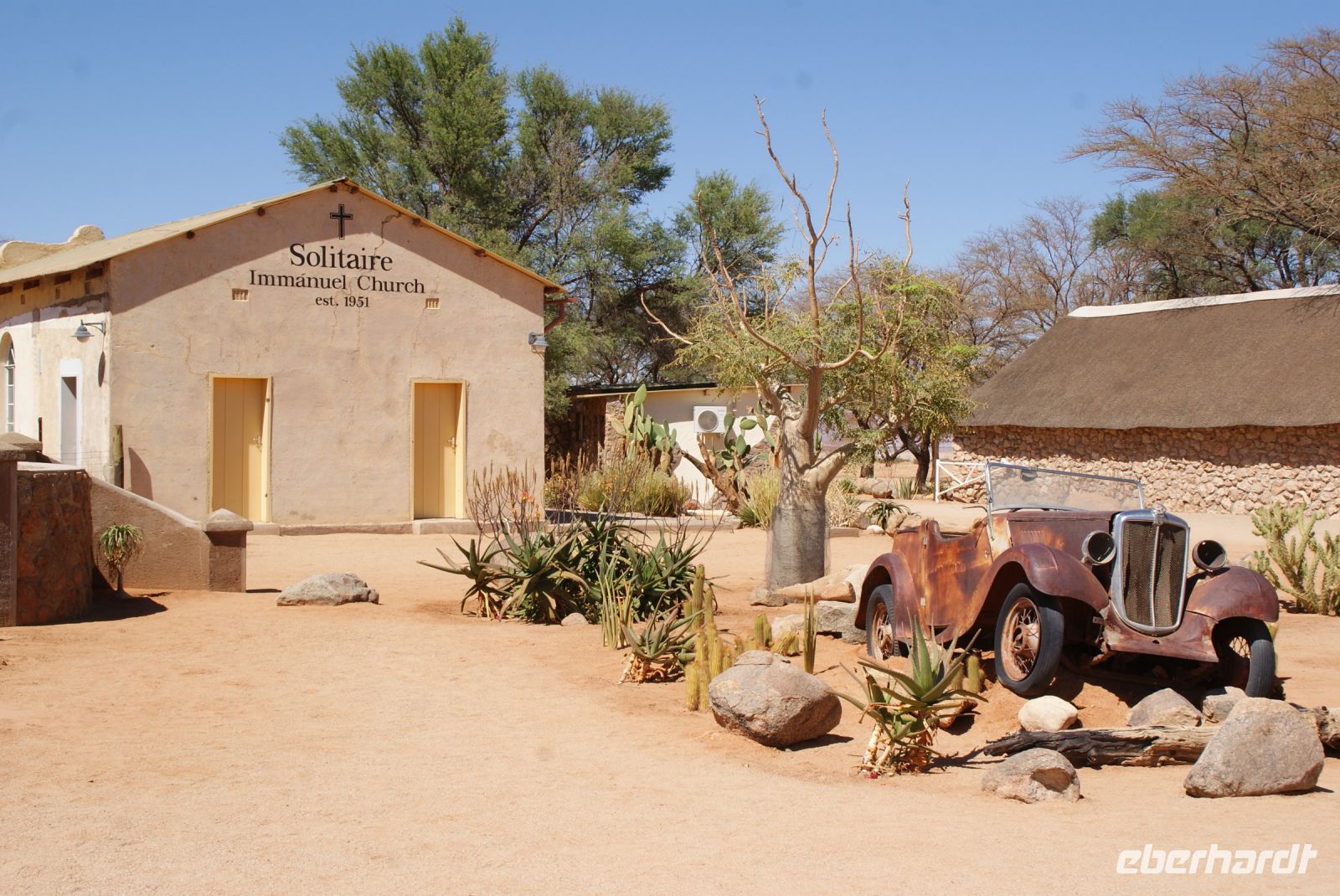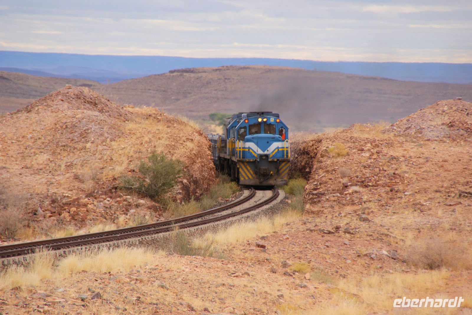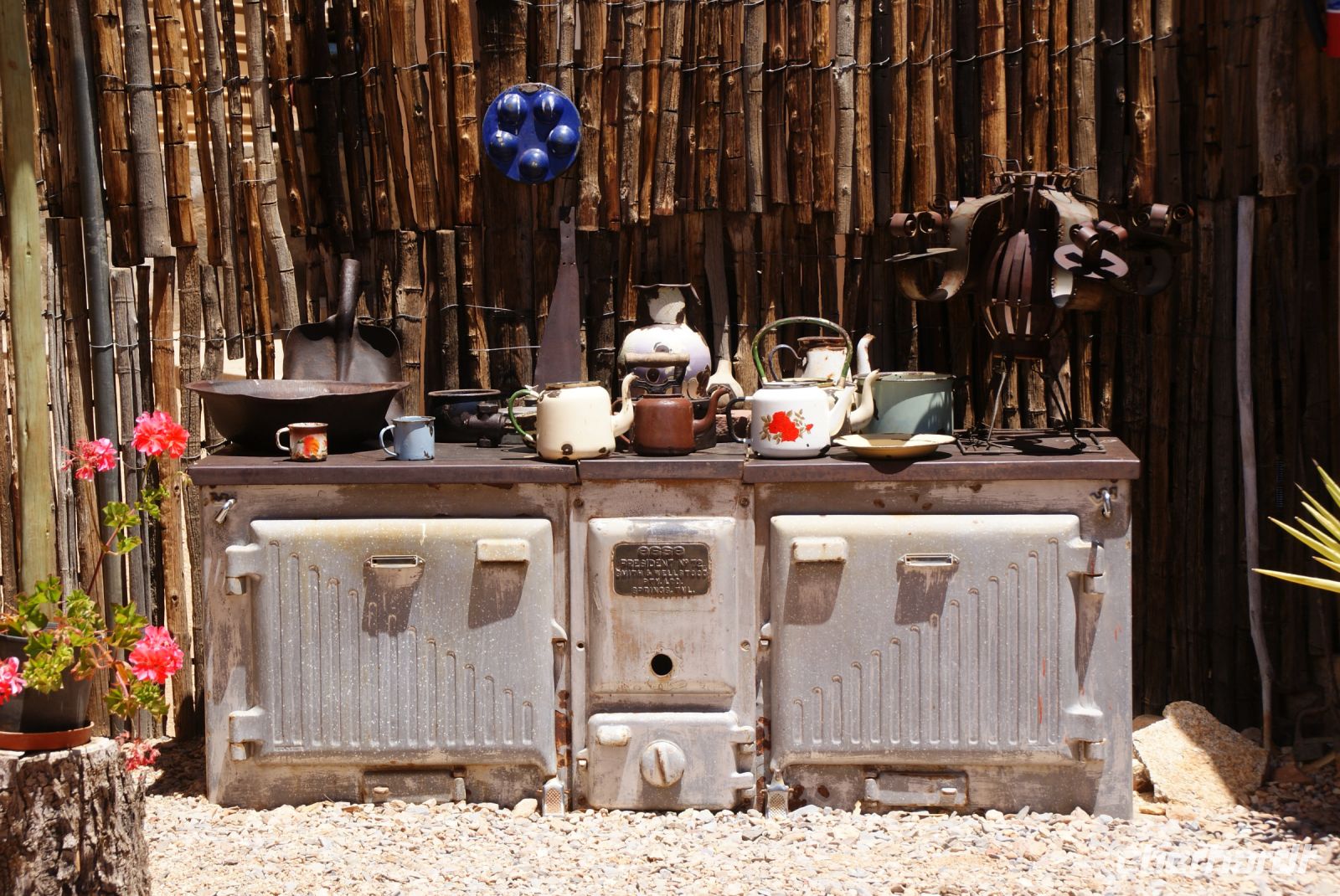 Nach dem ersten erlebnisreichen Tag haben wir alle geschlafen wie die Steine und treffen uns zu einem tollen Frühstück wieder….Gut gestärkt reisen wir weiter Richtung Süden und passieren Mariental, welches 1912 anlässlich des Eisenbahnbaus gegründet wurde. Da Tankstellen in Namibia sehr rar sind, muss man jede Gelegenheit nutzen und so tankt unser Guide das Fahrzeug während wir uns über das Billtong (Trockenfleisch) im Laden amüsieren, welches hier als „Wessies“ verkauft wird. So gibt es hier also die westdeutschen Bürger portionsweise und getrocknet…grins. Kurz vor Keetmanshoop biegen wir ab, um uns die Berühmtheiten dieser Region, den sogenannten „Köcherbaumwald“ (Quiver Tree Forest) und den „Spielplatz der Riesen“(Giants‘ Playground) anzusehen. Die Köcherbäume, eine Art Aloeen erhielten ihre Namen von den San (Buschmännern). Diese nutzen die innen weichen Äste, um hierin wie in einem Köcher Pfeile zu transportieren. Herrliche Fotomotive bieten sich uns mit diesen mitunter schon mehreren jahrhundertealten Bäumen, an denen wir entlang wandern. Die Reise führt uns zum ca. 130 Millionen Jahre alten Spielplatz der Riesen, eine bizarre Felslandschaft. Die aufgetürmten Dolerit-Felsen sehen aus, als seien sie das Werk von Riesen, jedoch sind sie durch Blockverwitterung entstanden. Die Gesteinsblöcke bestehen aus 170 Millionen Jahre altem Basalt vulkanischen Ursprungs, der durch Sandschliff poliert wurde. Wir spazieren durch dieses große Areal und sind mit unserer kleinen Gruppe völlig alleine unterwegs. So sehen wir auch die scheuen Klippschliefer, die vom Körperbau wie große Meerschweinchen aussehen, erstaunlicherweise jedoch zur Gattung der Elefanten gehören. Auf dem Weg zu unserer neuen Unterkunft, dem Canyon Road House, fahren wir entlang einer Eisenbahnstrecke und haben das große Glück, einen Zug zu beobachten. Wir eilen voraus und halten vor einem Bahnübergang. In freudiger Erwartung rauscht dieser heran und wir werden herzlich mit einem lauten Hupen und winkendem Lokführer begrüßt-so ist es hier in Namibia! Am späteren Nachmittag erreichen wir das Canyon Road House und nun ist die Fotosafari eröffnet. Unzählige Kuriositäten warten darauf, von uns aufgenommen zu werden. Zahlreiche Oldtimer eingebettet in die Anlage oder mit Köcherbäumen bieten tolle Motive. Das Haus von innen eine Art Museum mit etlichen Motiven. Am Abend speisen wir wieder gemeinsam, staunen über namibische Vorspeisen (riiiiesig) und lassen diesen gemütlich bei der ein oder anderen Spirituose ausklingen und werden zudem noch vom freundlichen Personal musikalisch unterhalten. Ach ja-hip hip-hurra: Susannes Koffer ist inzwischen endlich da…wurde 680 Km mit einem Transporter vom Flughafen Windhoek gebracht!