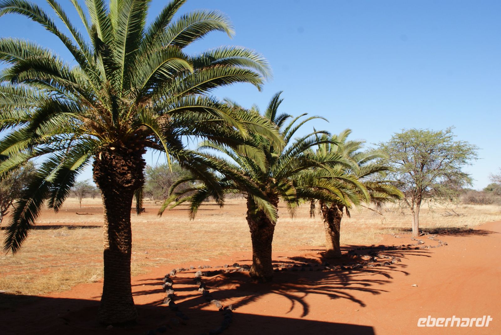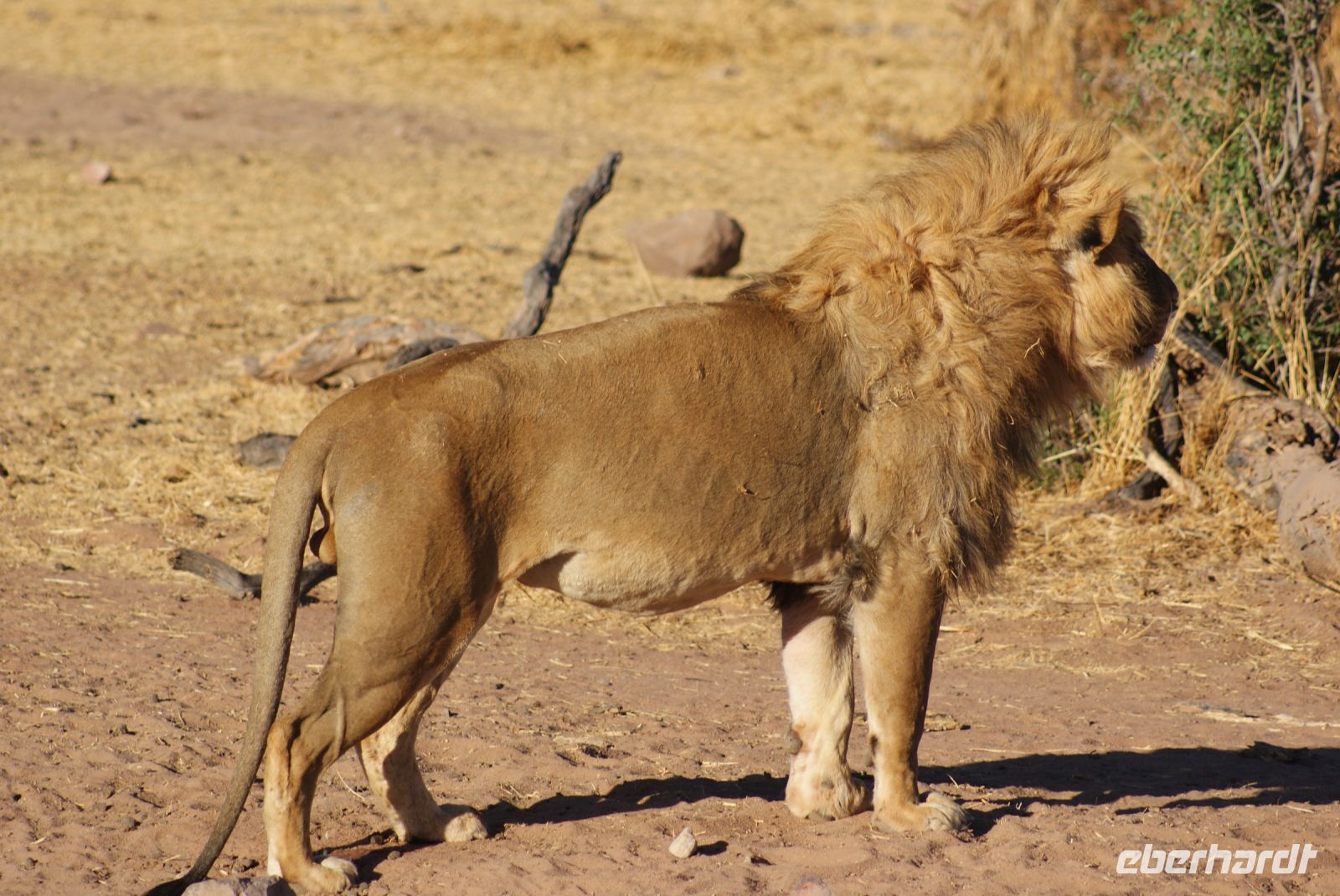 Heute heißt es zeitig aufstehen, die Tiere im Nationalpark warten bereits auf uns…So fährt uns Guide Herbert freundlicherweise mit unserem Reisebus bis zum Gate des Etosha Nationalparks, damit wir zu so früher Stunde im sonst offenen Fahrzeug nicht frieren müssen. Am Gate angekommen besteigen wir unseren Safari-Jeep mit Guide Heinrich, der uns die nächsten vier Stunden durch den Nationalpark führen und fahren wird. Zunächst ist alles noch etwas verhalten und wir sehen nicht allzu viele Tiere. Bedingt dadurch, dass es in den letzten Tagen und Wochen auch immer mal etwas in der Etosha geregnet hat, finden die Tiere an vielen Stellen Wasser und sind nicht unbedingt gezwungen zu den künstlich angelegten Wasserlöchern zu kommen. Aber wie wir wissen, befinden wir uns nicht im Zoo und müssen somit einfach geduldig sein. So genießen wir den herrlichen Morgen im offenen Fahrzeug und bester Sicht auf die Natur. Von Guide Heinrich erfahren wir, dass der Park 340 Vogelarten und 118 Tierarten beherbergt. Somit muss doch auch für uns etwas dabei sein… Wir sehen zunächst so einige Giraffen aus nächster Nähe, Schakale, Kudus, Gackeltrappen und einige Singhabichte. Springböcke, Gnus, Zebras an den Wasserlöchern und ein wunderbares Highlight sollte bald folgen. Zwei stattliche Löwen-Brüder, so wie wir erfahren, die sich vermutlich auf den Weg zur Jagd machen. Wir sehen wie einer von ihnen eine Herde Springböcke ansteuert, die ihn natürlich längst erschnuppert und auch gesehen haben. Somit zunächst keine Chance. Später naht auch der zweite Löwe und wird sicherlich im Laufe des Nachmittags sein Glück versuchen. Wir sind jedenfalls happy, einen von ihnen aus allernächster Nähe gesehen zu haben. Beinahe gegen Ende unserer Vormittagssafari haben wir das unfassbare Glück eine riesige Elefantenherde von an die 30 Tiere zu sehen. Welch ein Erlebnis! Wir beobachten die Tiere noch einige Zeit und machen uns anschließend auf den Rückweg zur Lodge. Zwar haben wir heute keine Tiermassen gesehen, jedoch war das Erlebte trotzdem wunderbar und voller schöner Momente. Am Nachmittag genießen wir die von uns frei gewählte freie Zeit mit Massagen, Sonnenbaden, Schwimmen und Co. und ein besonders großer Tierfan von uns bucht nochmals eine exklusive Safari Tour und kehrt zurück in den Etosha Nationalpark und wird später außer Löwen noch einer 40-50 köpfigen Elefantenherde begegnen. Wir treffen uns nochmals in gemütlicher Runde zum wunderbaren Abendessen und ein anschließender grandioser Sternenhimmel leuchtet uns zurück zu unseren Unterkünften.