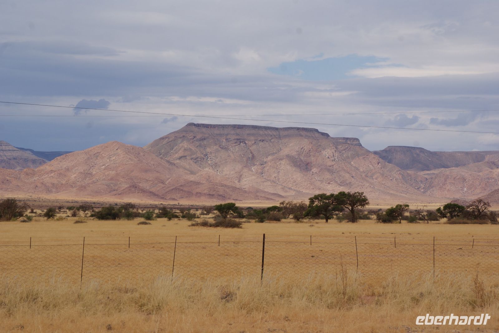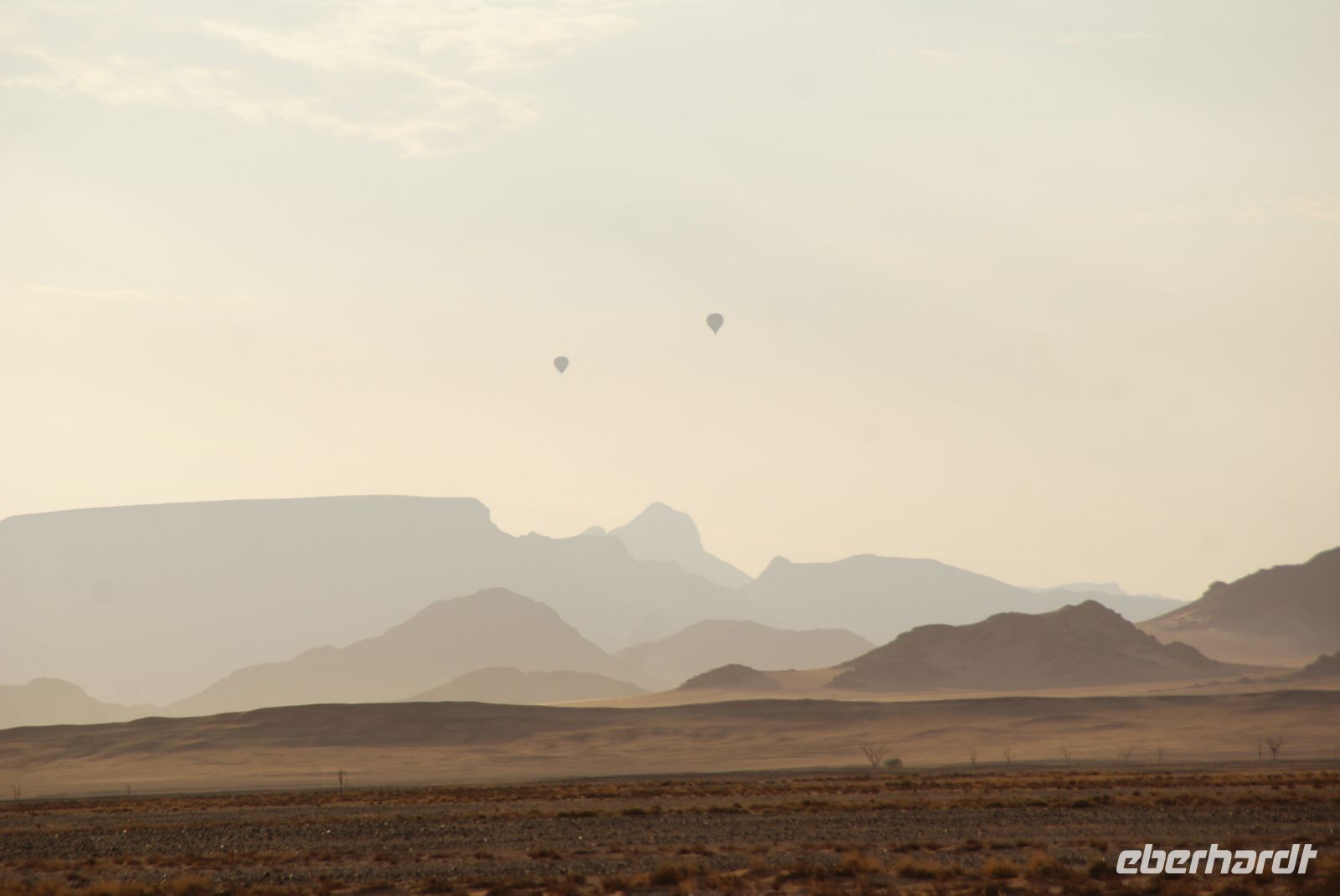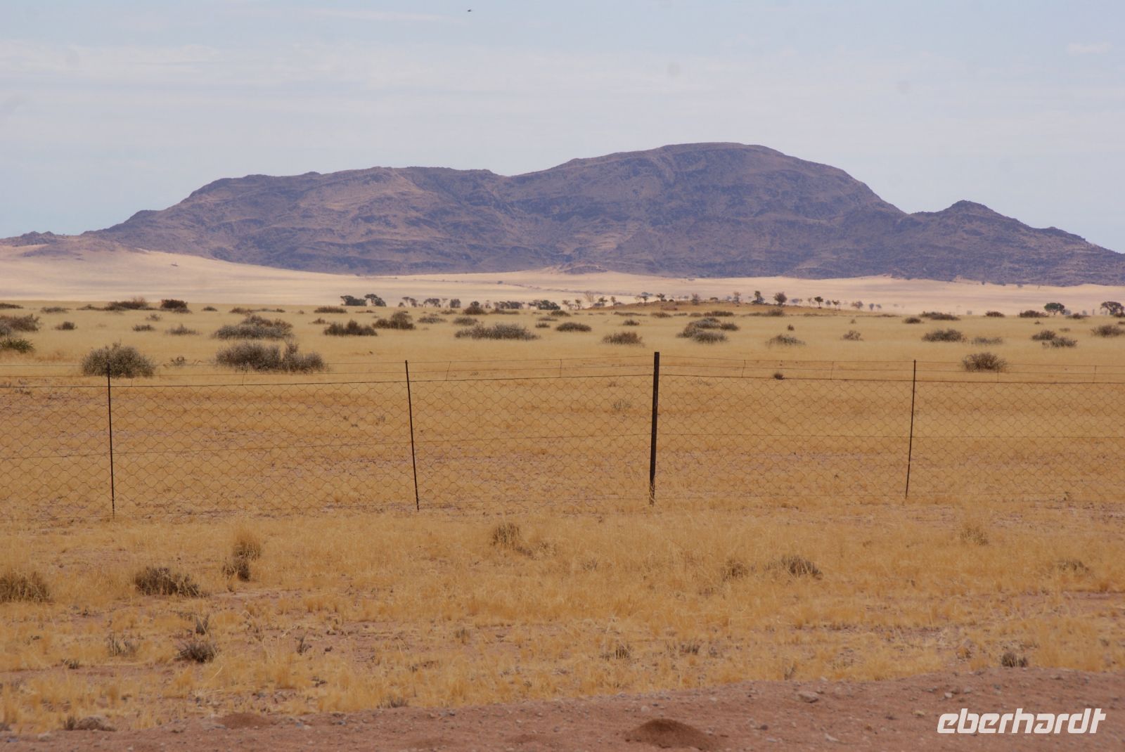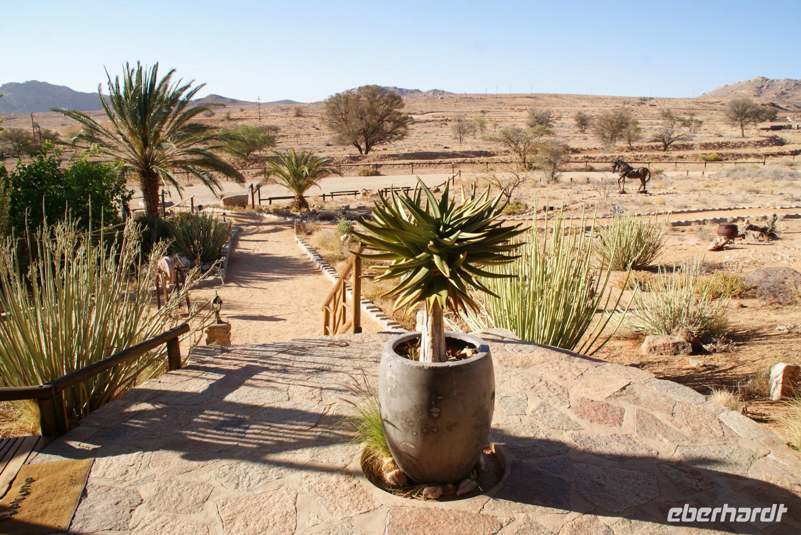 Nochmals herrlich gefrühstückt verlassen wir unsere schöne Lodge und begeben uns auf den Weg zum Namib Naukluft Nationalpark. Die Strecke führt uns nun über eine sogenannte „Pad“ also eine Schotterpiste, die hier als eine „C“ Straße geführt wird. Darunter versteht man eine ungeteerte breitere Landstraße. Wir „genießen“ heute eine afrikanische Massage, die unser Fahrzeug und natürlich unser Fahrer und Guide mit Bravour meistern. Diverse Tafelberge ziehen an uns vorbei und sogar begegnen wir dem ein oder anderen Fahrzeug, welches uns gerne ein wenig einstaubt. Da der Spuk jedoch schnell vorbei ist, ist auch dies ein nur kleineres Übel. Unseren Mittagstopp verbringen wir in Betta, einem eher verschlafenen Plätzchen auf der Strecke, welches uns jedoch eine durchaus sehr schmackhafte Bratwurst mit Kartoffelsalat und Rote Beete serviert. Wir staunen nicht schlecht über diesen so ziemlich einheimisch, deutschen Geschmack. Am frühen Nachmittag erreichen wir die Elegant Desert Lodge, unsere Unterkunft für die nächsten beiden Nächte. Von den Zimmern aus haben wir einen herrlichen Blick in die Weite der Namib Wüste und haben Zeit das bisher Erlebte ein wenig Revue passieren zu lassen. Nach gestrigem eher kühlem Tag an der Lüderitzbucht ist es hier nun schon recht warm und wir genießen den Nachmittag am Pool oder in gemütlicher Runde bei vom Haus kredenzten Kaffee und Kuchen. Das schmackhafte Abendessen erfolgt für uns heute exklusiv im Restaurant des Hauses.