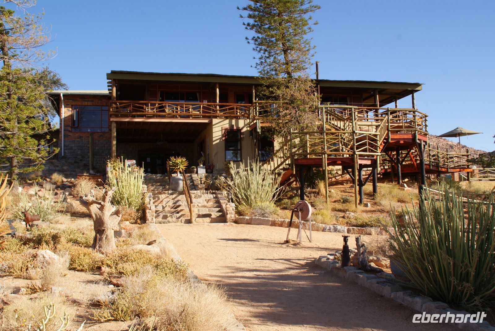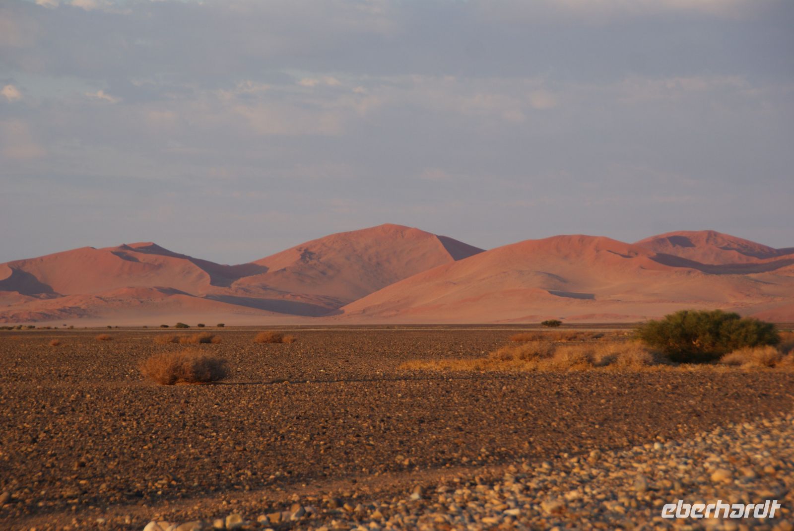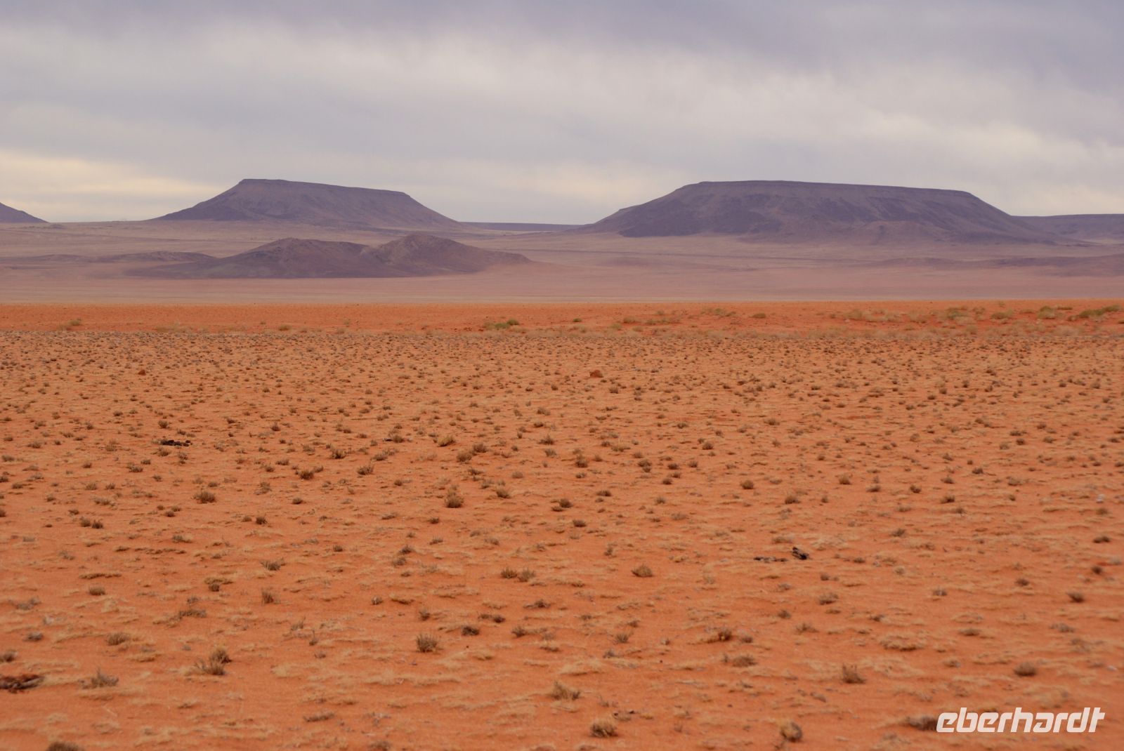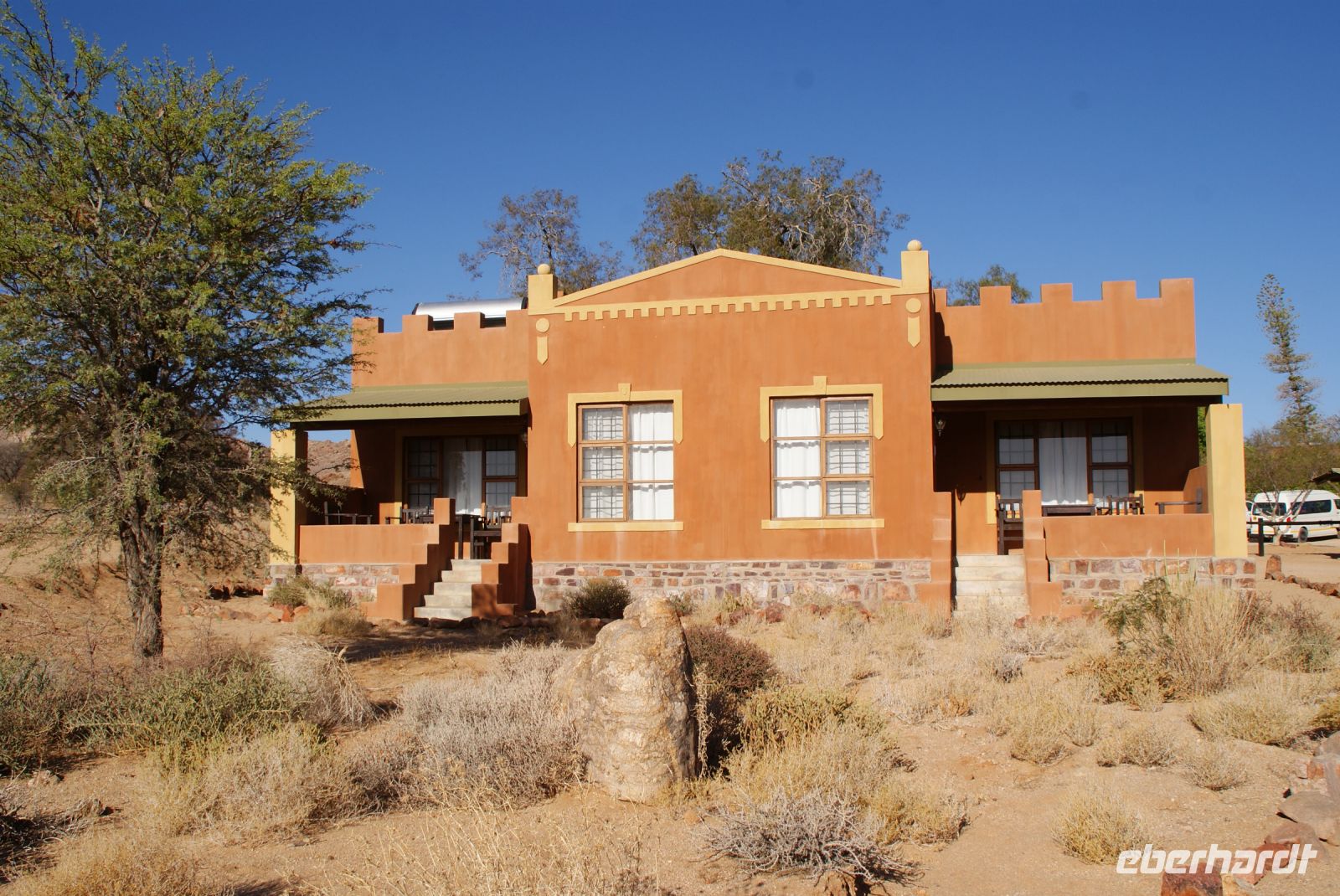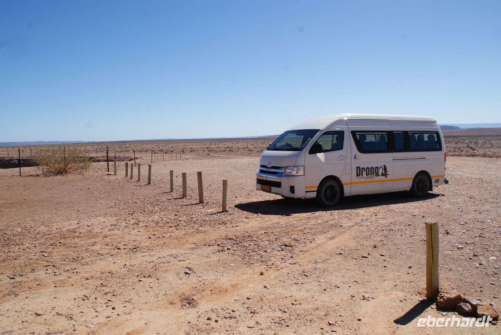 Nochmals herrlich gefrühstückt verlassen wir unsere schöne Lodge und begeben uns auf den Weg zum Namib Naukluft Nationalpark. Die Strecke führt uns nun über eine sogenannte „Pad“ also eine Schotterpiste, die hier als eine „C“ Straße geführt wird. Darunter versteht man eine ungeteerte breitere Landstraße. Wir „genießen“ heute eine afrikanische Massage, die unser Fahrzeug und natürlich unser Fahrer und Guide mit Bravour meistern. Diverse Tafelberge ziehen an uns vorbei und sogar begegnen wir dem ein oder anderen Fahrzeug, welches uns gerne ein wenig einstaubt. Da der Spuk jedoch schnell vorbei ist, ist auch dies ein nur kleineres Übel. Unseren Mittagstopp verbringen wir in Betta, einem eher verschlafenen Plätzchen auf der Strecke, welches uns jedoch eine durchaus sehr schmackhafte Bratwurst mit Kartoffelsalat und Rote Beete serviert. Wir staunen nicht schlecht über diesen so ziemlich einheimisch, deutschen Geschmack. Am frühen Nachmittag erreichen wir die Elegant Desert Lodge, unsere Unterkunft für die nächsten beiden Nächte. Von den Zimmern aus haben wir einen herrlichen Blick in die Weite der Namib Wüste und haben Zeit das bisher Erlebte ein wenig Revue passieren zu lassen. Nach gestrigem eher kühlem Tag an der Lüderitzbucht ist es hier nun schon recht warm und wir genießen den Nachmittag am Pool oder in gemütlicher Runde bei vom Haus kredenzten Kaffee und Kuchen. Das schmackhafte Abendessen erfolgt für uns heute exklusiv im Restaurant des Hauses.