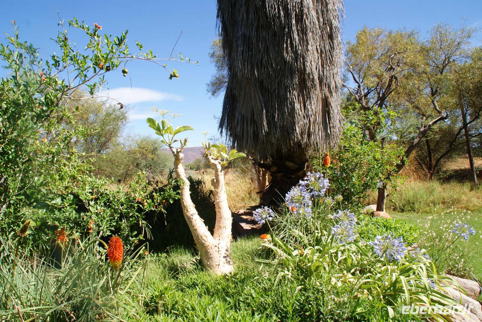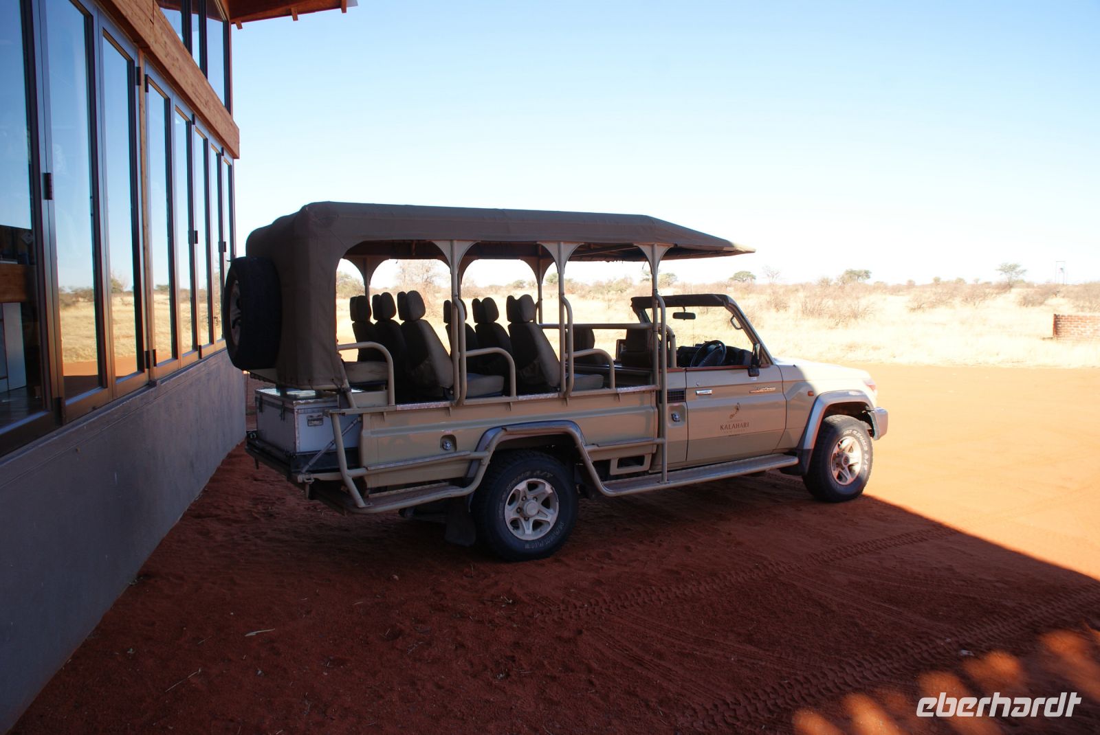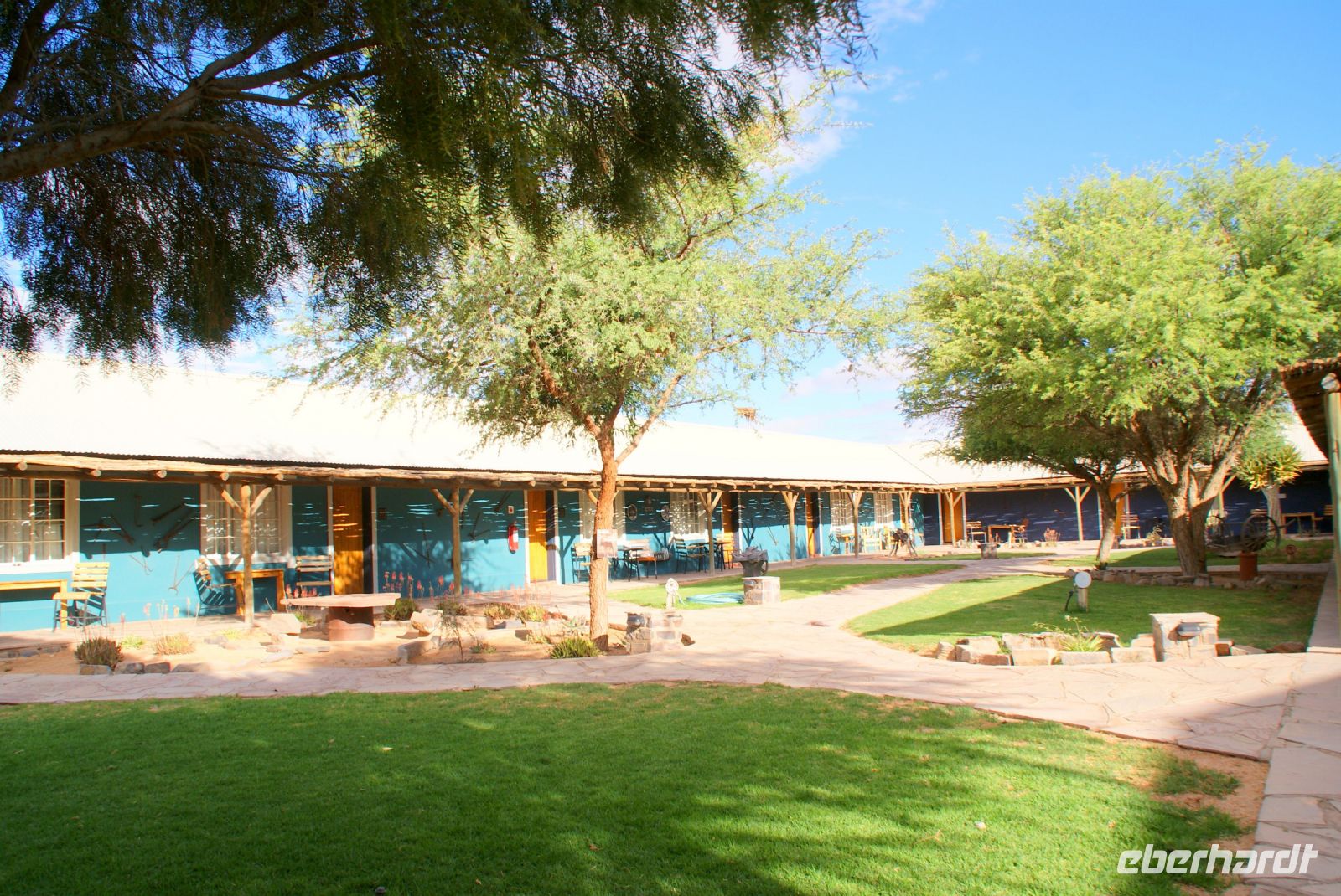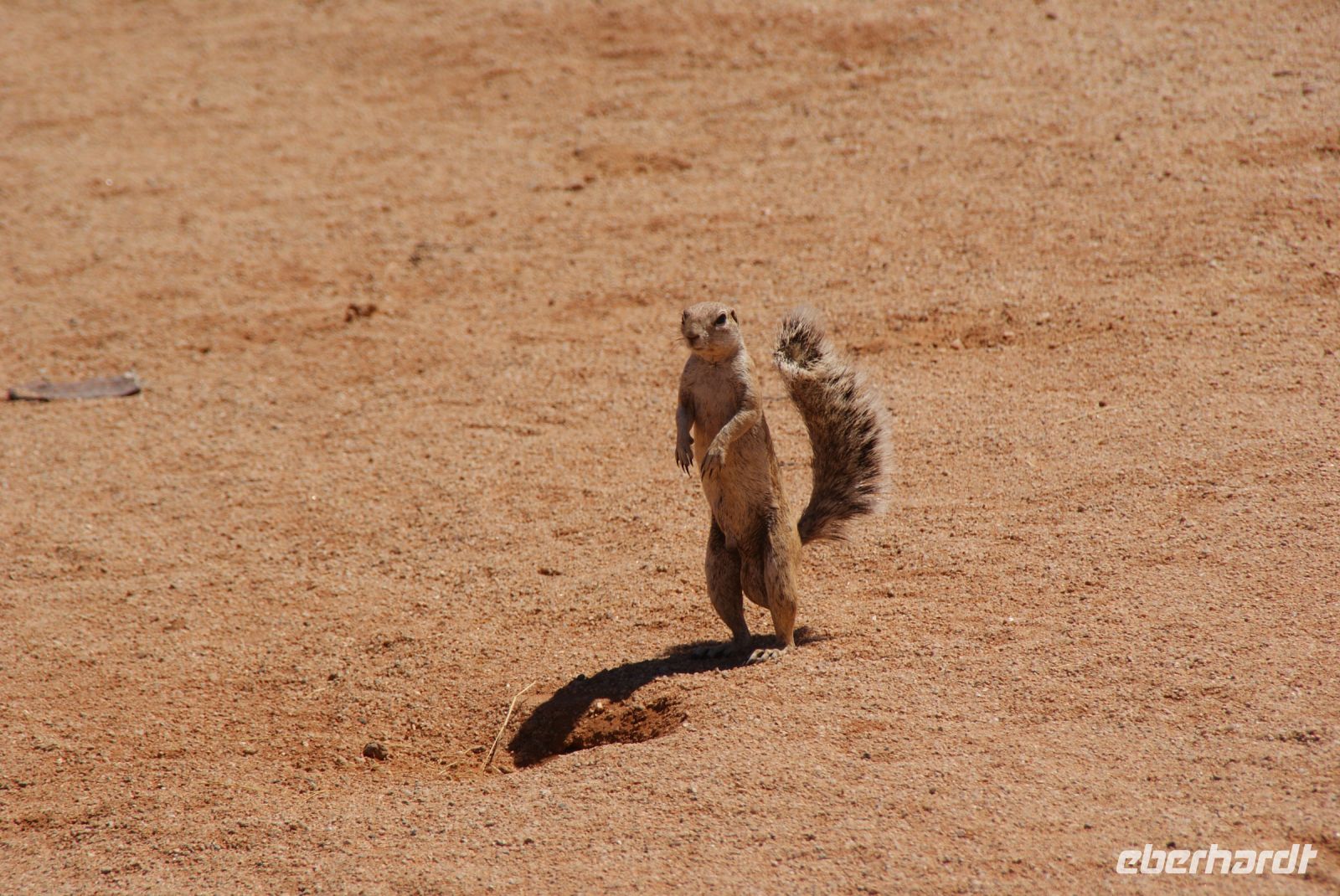 Nochmals herrlich gefrühstückt verlassen wir unsere schöne Lodge und begeben uns auf den Weg zum Namib Naukluft Nationalpark. Die Strecke führt uns nun über eine sogenannte „Pad“ also eine Schotterpiste, die hier als eine „C“ Straße geführt wird. Darunter versteht man eine ungeteerte breitere Landstraße. Wir „genießen“ heute eine afrikanische Massage, die unser Fahrzeug und natürlich unser Fahrer und Guide mit Bravour meistern. Diverse Tafelberge ziehen an uns vorbei und sogar begegnen wir dem ein oder anderen Fahrzeug, welches uns gerne ein wenig einstaubt. Da der Spuk jedoch schnell vorbei ist, ist auch dies ein nur kleineres Übel. Unseren Mittagstopp verbringen wir in Betta, einem eher verschlafenen Plätzchen auf der Strecke, welches uns jedoch eine durchaus sehr schmackhafte Bratwurst mit Kartoffelsalat und Rote Beete serviert. Wir staunen nicht schlecht über diesen so ziemlich einheimisch, deutschen Geschmack. Am frühen Nachmittag erreichen wir die Elegant Desert Lodge, unsere Unterkunft für die nächsten beiden Nächte. Von den Zimmern aus haben wir einen herrlichen Blick in die Weite der Namib Wüste und haben Zeit das bisher Erlebte ein wenig Revue passieren zu lassen. Nach gestrigem eher kühlem Tag an der Lüderitzbucht ist es hier nun schon recht warm und wir genießen den Nachmittag am Pool oder in gemütlicher Runde bei vom Haus kredenzten Kaffee und Kuchen. Das schmackhafte Abendessen erfolgt für uns heute exklusiv im Restaurant des Hauses.