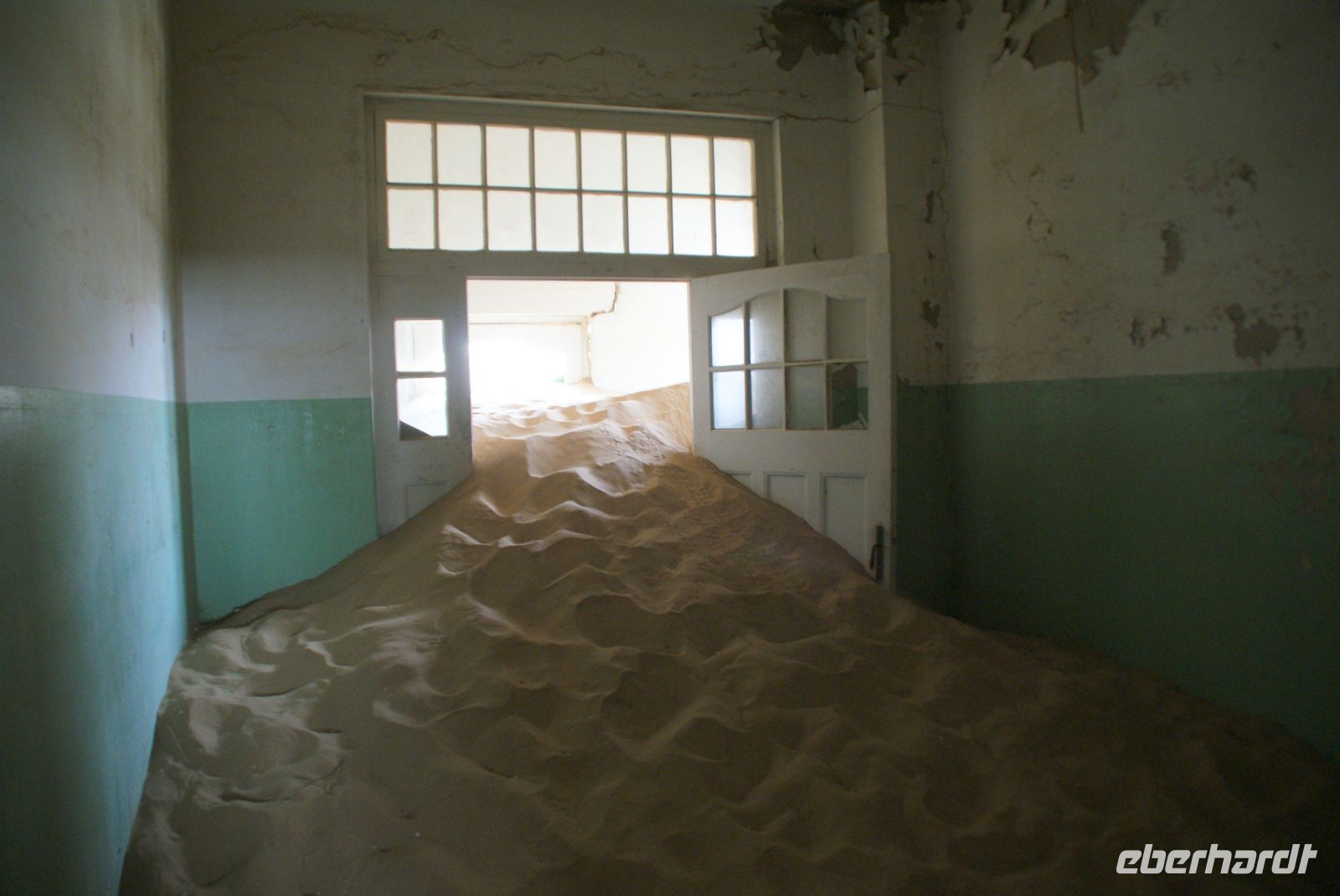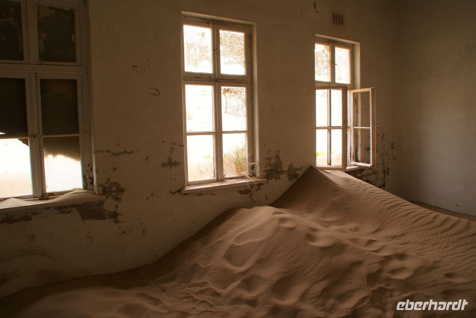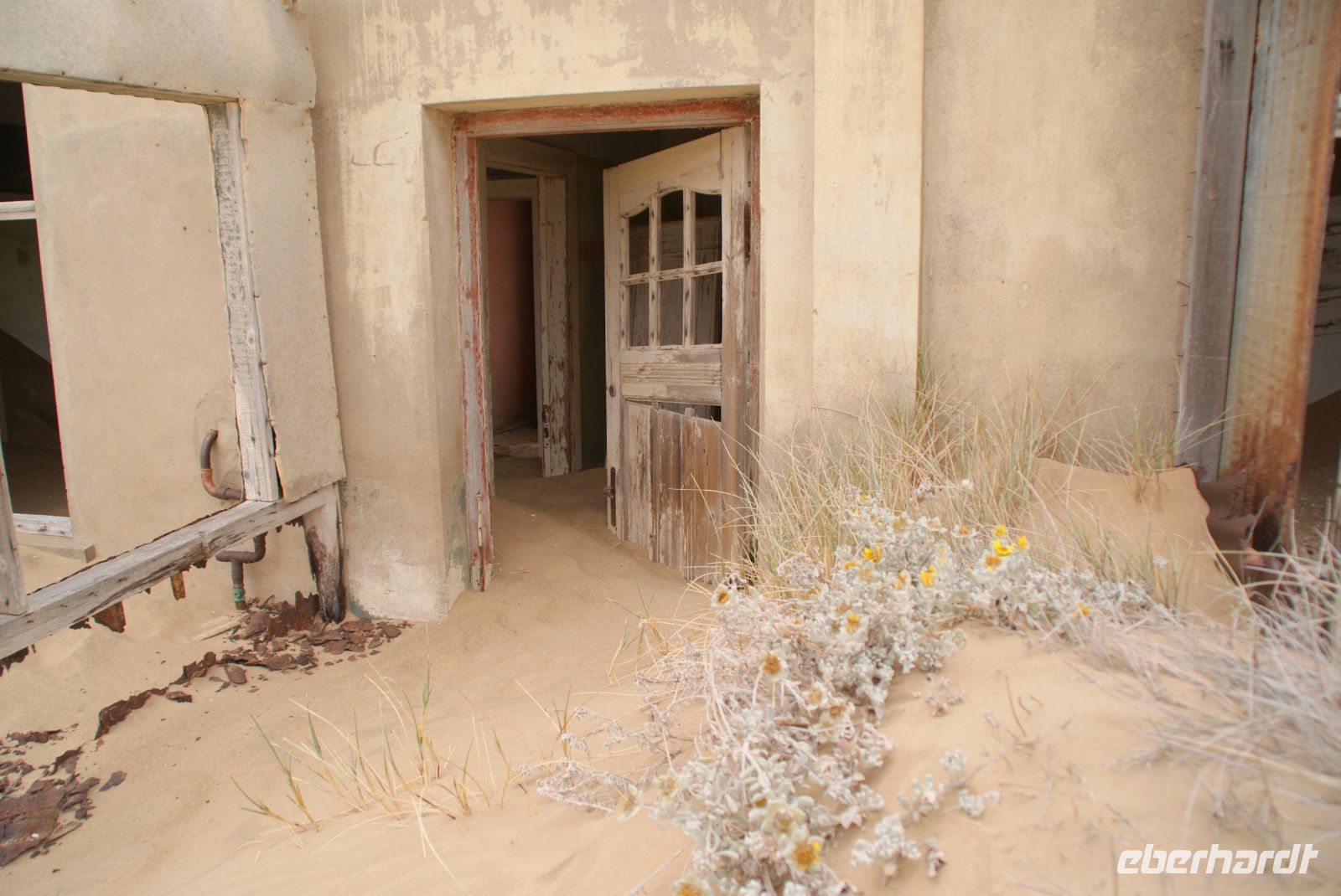 Nach einer herrlichen Nacht mit viel frischer Luft treffen wir uns zum tollen Frühstück mit frisch gebackenem Brot und vielen Köstlichkeiten wieder. Unser heutiger Tagesausflug führt uns zunächst in die Diamantenstadt Kolmanskuppe, bei der wir eine deutsche Führung erhalten. Dieser Ort mit damals ca. 350 Bewohnern existierte von 1908 bis 1958 und hier lebten die Menschen, die vom einstigen Diamantenrausch profitierten. Die Diamanten wurden einst von Südafrika über den Atlantik an Land gespült und sorgten hier für einen wahrlichen Boom. Bereits von 1908 bis 1914 fand man hier 20 % des weltweit existierenden Diamantenvorkommens. Das gesamte Sperrgebiet, auf dem sich die Siedlung befand, ist 115 Km breit und 150 Km lang. Unsere Führerin Fabienne, die als Namibierin fließend Deutsch spricht, zeigt uns diverse Gebäude. Wir starten in der Turnhalle, gefolgt von dem Haus des Ladenbesitzers, welches im Originalstil wieder renoviert wurde. Weiter geht die Führung zur Eisfabrik, wo für so manche Kühlung produziert wurde, zur Räucherei, sie zeigt uns das Haus des Minendirektors, des Ingenieurs, des Quartiermeisters, des Lehrers, des Architekten und des Buchhalters. All diese sind namentlich beschriftet und man kann in die verlassenen Häuser einen Blick hineinwerfen. Es ist sehr imposant, wie sich hier die Natur breit macht und ihr Territorium zurückerobert. Im ehemaligen Speisesaal befindet sich heute ein kleines Museum mit vielen Bildern und sehr interessanten Exponaten. Wir gehen selbst lieber hier nicht auf Diamantensuche, denn wer illegal etwas einsteckt, wird mit 10 Jahren Gefängnis und 1 Million NAD bestraft. Somit lassen wir es… Unseren Mittagsstopp machen wir heute in der Küstenstadt Lüderitz, welche 1886 nach Adolph Lüderitz, dem Gründer, benannt wurde. Zunächst steuern wir jedoch das ca. 17 Km außerhalb liegende Dias-Kreuz an. Dieses stellte im Jahre 1487 Bartholomae Dias, portugiesischer Seefahrer und Entdecker, auf, als er mit seiner Besatzung als erster Europäer an Land ging, um nach Frischwasser zu suchen. Hier weht ein kühles Lüftchen, so ganz anders als im Inland und wir sind froh uns für den Tag warm angezogen zu haben! So erklimmen wir das Dias-Kreuz und lassen die stürmische Küste auf uns wirken. In der unter uns liegenden Bucht tummeln sich Robben und auch so mancher Flamingo ist hier auf Futtersuche. Nochmals halten wir an der großen Bucht zu einem Fotostopp und begeben uns dann in das verschlafene Städtchen Lüderitz. Dieses liegt beschaulich am Atlantik und es finden sich noch so einige wunderschöne Häuser aus vergangener Zeit. So sehen wir das stattliche Haus Goerke aus dem Jahre 1905, welches Leutnant Hans Goerke errichten ließ, das Woermanns Haus, welches einst eine Reederei war und natürlich das Wahrzeichen der Stadt- die 1912 erbaute Felsenkirche. Mittags kosten so manche von uns die hiesigen Fischspezialitäten und bei Austern und Co. genießen wir diesen so anderen Tag hier in Namibia. Auf dem Rückweg nach Aus halten wir nochmals Ausschau nach den Wildpferden, die sich heute jedoch auch nicht blicken lassen. Dafür werden wir mit einer Oryx Familie in unserer Anlage entschädigt, die hier völlig zahm auf einer Weide stehen und wir herrlich nah fotografieren können.