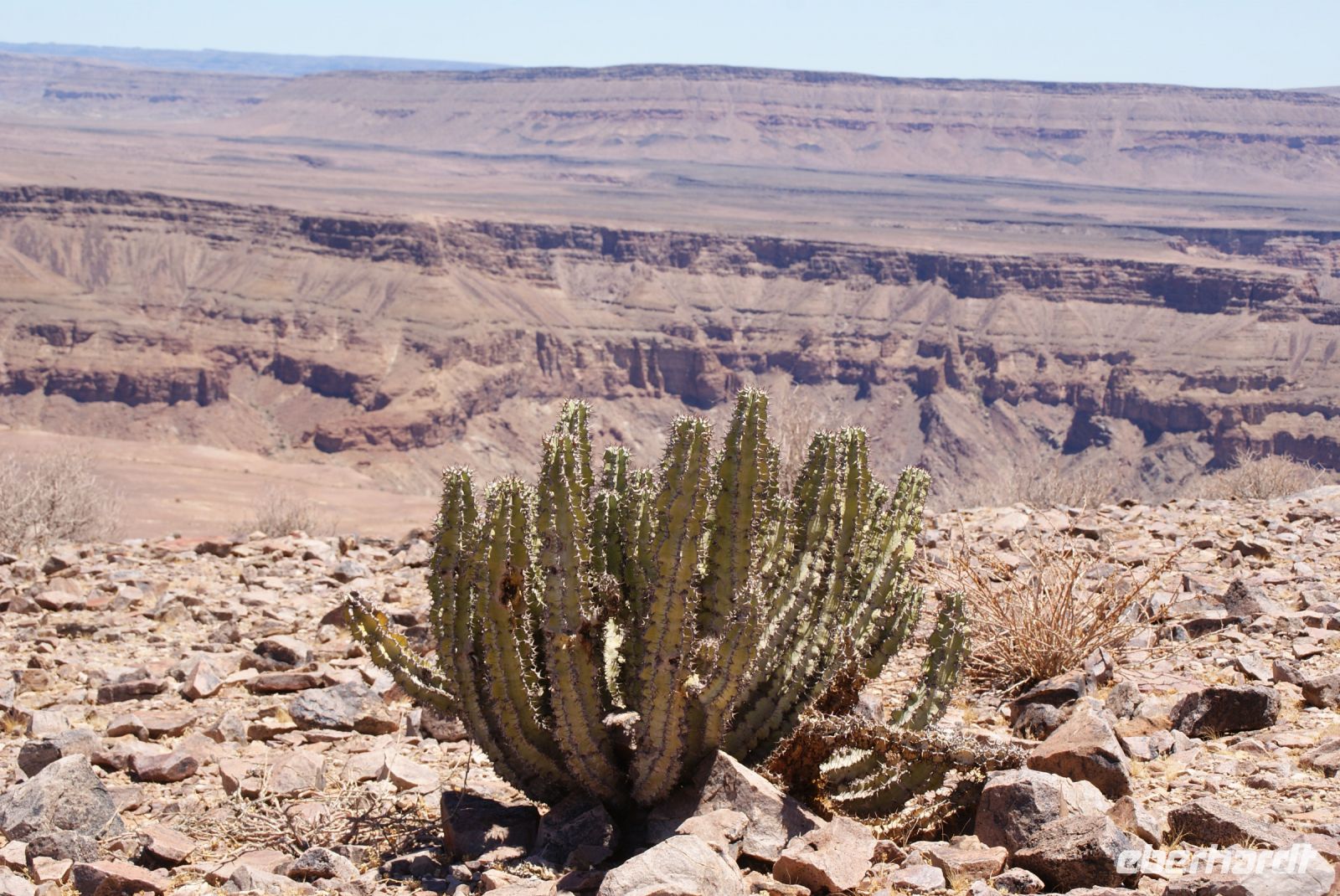 Nach einer geruhsamen Nacht treffen wir uns zum Frühstück und freuen uns darüber, wie liebevoll dieses hergerichtet ist. Anschließend geht die Fahrt zum Fish River Canyon. Dieser gilt als einer der größten der Welt, ist 160 Km lang, misst an der breitesten Stelle 27 Km und ist mit bis zu 550 m tief. Sein Alter wird auf 360 Millionen geschätzt, der größte Canyon Afrikas und gilt nach dem Grand Canyon als zweitgrößter Canyon der Erde. Durch ihn fließt der Fisch-Fluss, welcher 650 Km lang ist und in den Oranje Fluss mündet. Die kommenden zwei Stunden verbringen wir mit einer schönen, ca. 4 Km langen, gemütliche Wanderung entlang der oberen Kante und haben wieder etliche tolle Fotomotive. Umso besonderer ist, dass wir den Canyon und die Wanderung für uns alleine haben. Es sind kaum weiteren Touristen unterwegs. Die wenigen, können wir an einer Hand abzählen. Einfach herrlich. Auf dem Rückweg bestaunen wir noch eine Straußenfamilie mit vielen Jungtieren und erfahren von Guide Herbert, dass die Straußendamen tagsüber und die Herren nachts auf dem Gelege sitzen und brüten. Hintergrund ist deren verschiedene Gefiederfärbung, die auch als Tarnfarbe dient. Zurück im Canyon Road House nehmen wir einen Mittagssnack ein und haben Freizeit bis wir uns am späteren Nachmittag zu einer weiteren kleinen Wanderung zum Hausberg, hinter der Lodge gelegen, wiedersehen. Nochmals genießen wir eine schöne Runde auf den hinter uns gelegenen Hügel, von dem aus wir eine wunderbare Aussicht auf das riesige Gelände des Gondwana Parks haben. Viel Spaß haben wir beim „Springbock-Köttel“ weit spuken, den sich ein Gast mit Reiseleiter Herbert liefert… Abends lassen wir uns das Dinner im Canyon Road House nochmals so richtig schmecken und eine erholsame Nacht unter dem Sternenhimmel Namibias erfolgt.