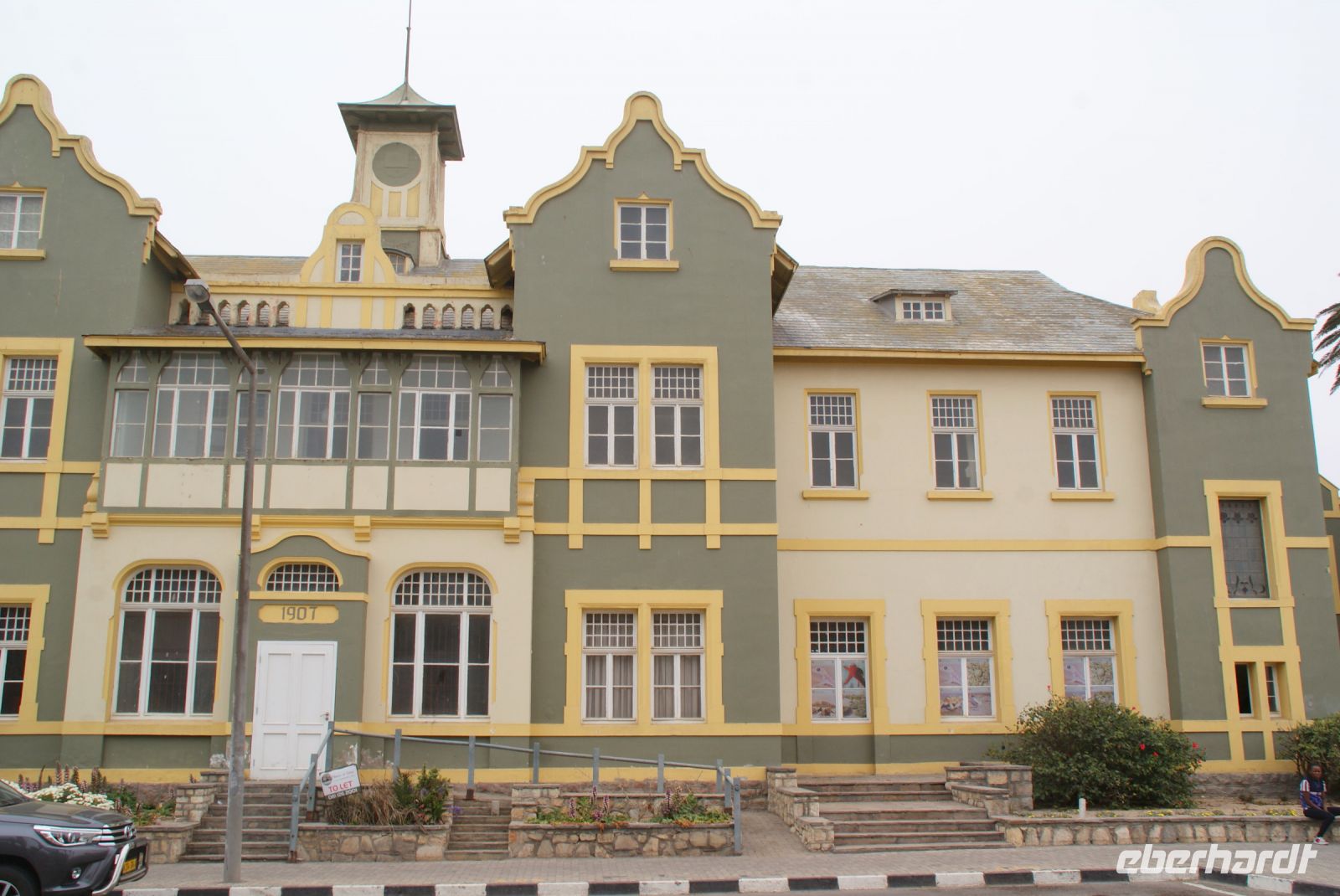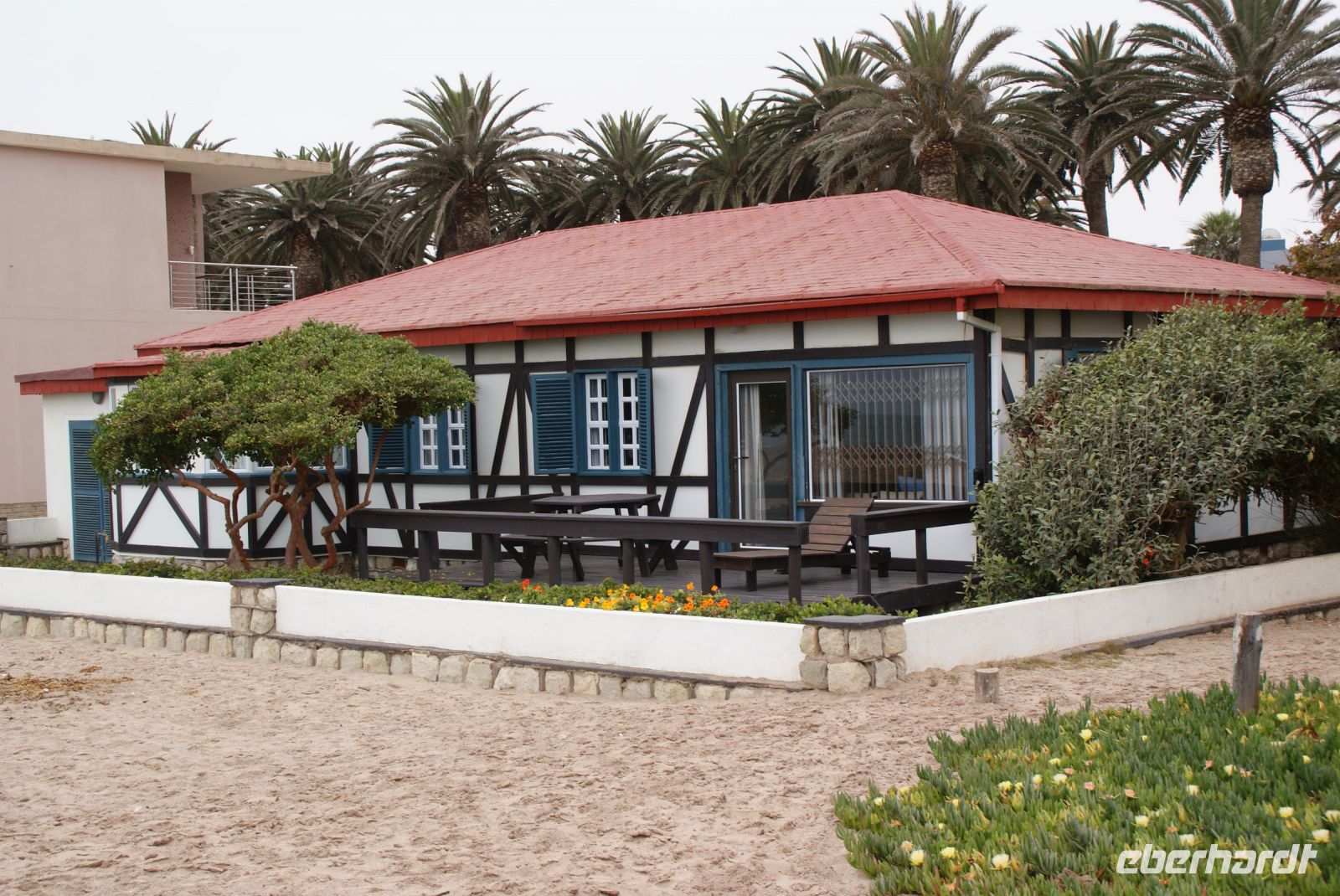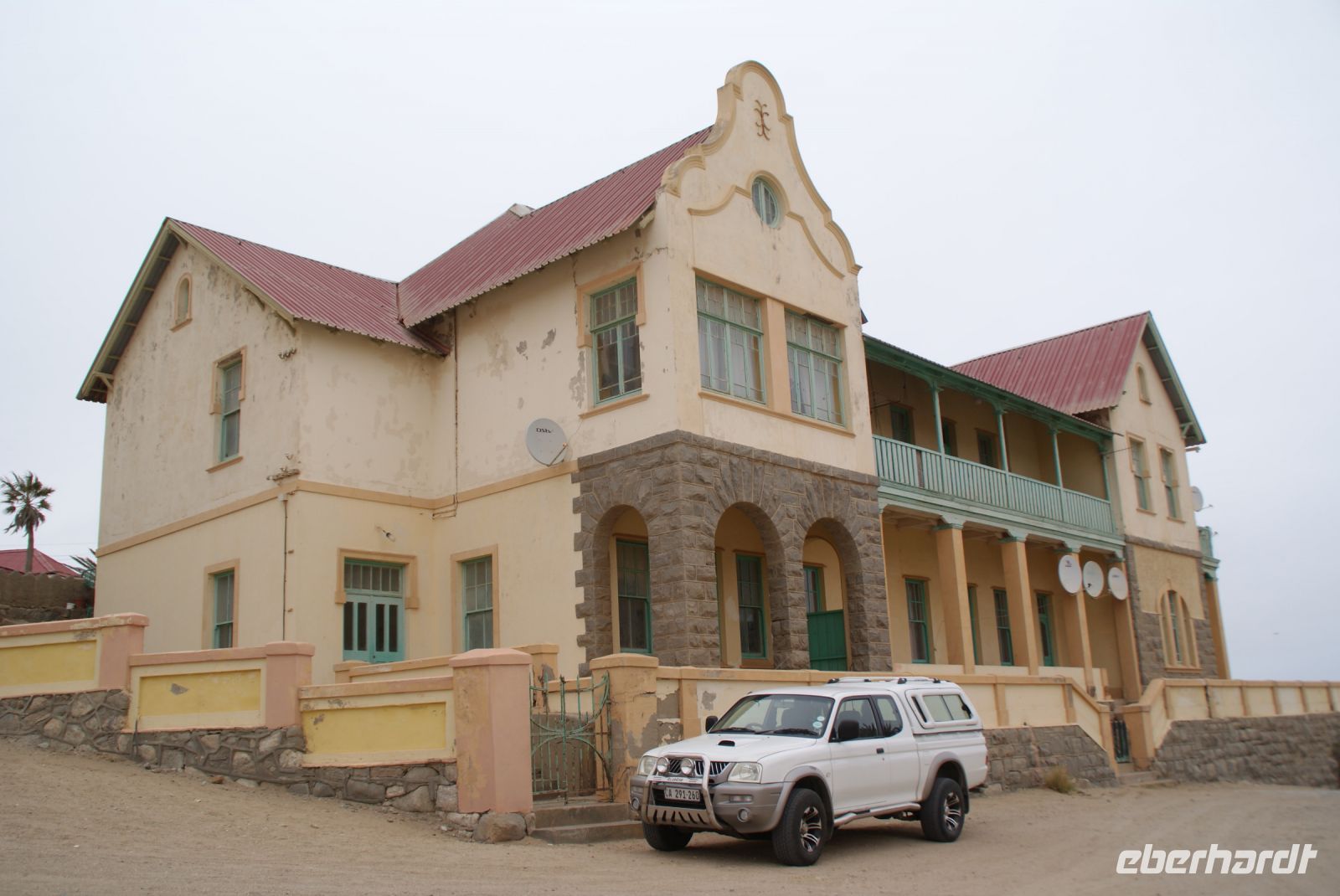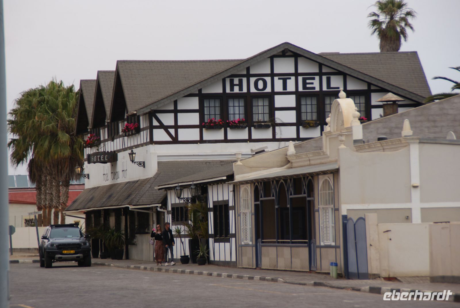Nach einem tollen Frühstück vom Buffet verlassen wir unsere Lodge und begeben uns Richtung Tagesziel Swakopmund. Heute ist afrikanische Massage Programm und à la Herbert „Hoppi-Hoppi“ quält sich unser Gefährt über die Schotterpisten. Nichtsdestotrotz erfreuen uns Paviane, Perlhühner, Warzenschweine, eine edle Rappenantilope und später Erdhörnchen, mit besonderem etwas, auf unserer Strecke. In Solitaire angekommen, versorgen wir uns mit dem über das Land hinaus bekannten Apfelkuchen und verspeisen diesen später am Gaubpass, wo wir ein herrliches Picknickplätzchen im Schatten ergattert haben. Vorbei am Gambs Berg, der auf beachtlichen 220 m liegt, hören wir, dass dieser für die Astronomen von besonderer Bedeutung aufgrund seiner Form eines Tafelberges ist. Wir passieren den Kuiseb Canyon, in dem sich einst zwei Forscher während des Krieges über Jahre hinweg versteckten…eine unwirkliche Gegend und es ist uns schleierhaft, wie beide dies so lange durchgehalten haben. Am Nachmittag erreichen wir die Hafenstadt Walvis Bay mit 67.000 Einwohnern und dem größten Tiefseehafen Namibias. An der Küste entlang steuern wir auf unseren heutigen Endpunkt Swakopmund zu. Diese beschauliche und wohl deutscheste Stadt Namibias wurde 1892 gegründet und hat heute ca. 44.000 Einwohner. Vieles erinnert noch an vergangene Tage. So gibt es beispielsweise die „Kaiser-Wilhelm-Str.“ und etliche Häuser aus der Gründerzeit, die auch noch deutsche Namen tragen. Nach dem Check-in in unserem sehr modernen und zentral gelegenen Hotel „The Delight Hotel“, spazieren wir bereits zu Fuß durch die Kleinstadt und lassen die besondere Kulisse auf uns wirken. Abends speisen wir im Ocean Celler Fischrestaurant mit Meerblick und lassen es uns mit fangfrischem Fisch so richtig gut gehen.