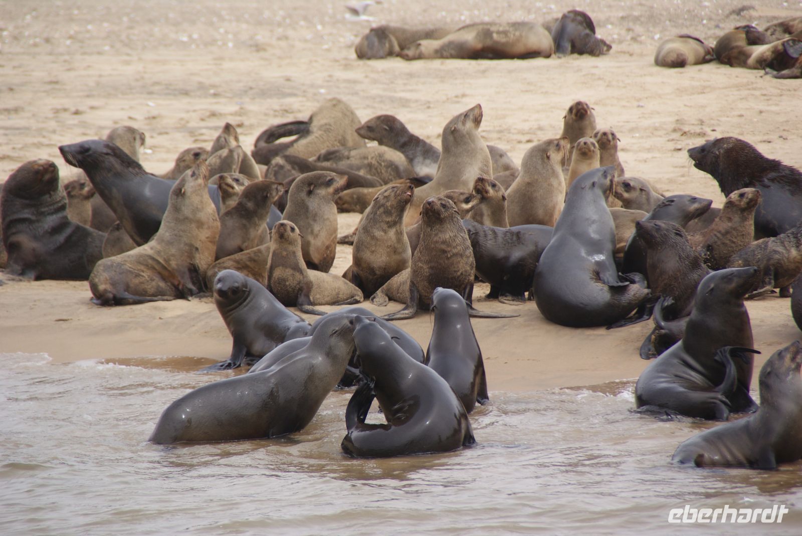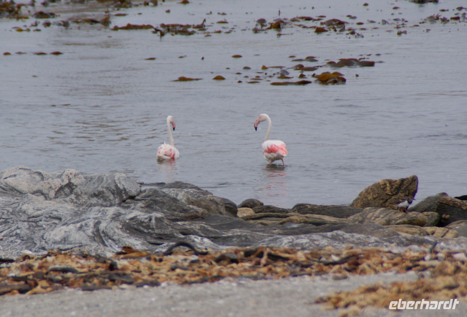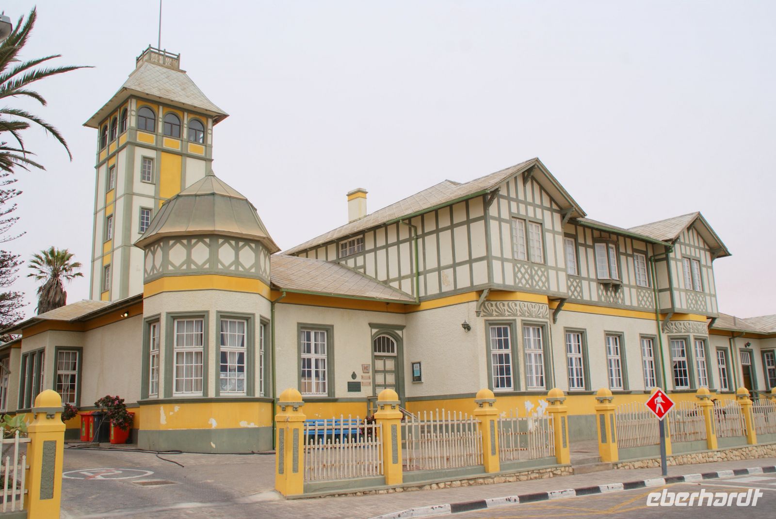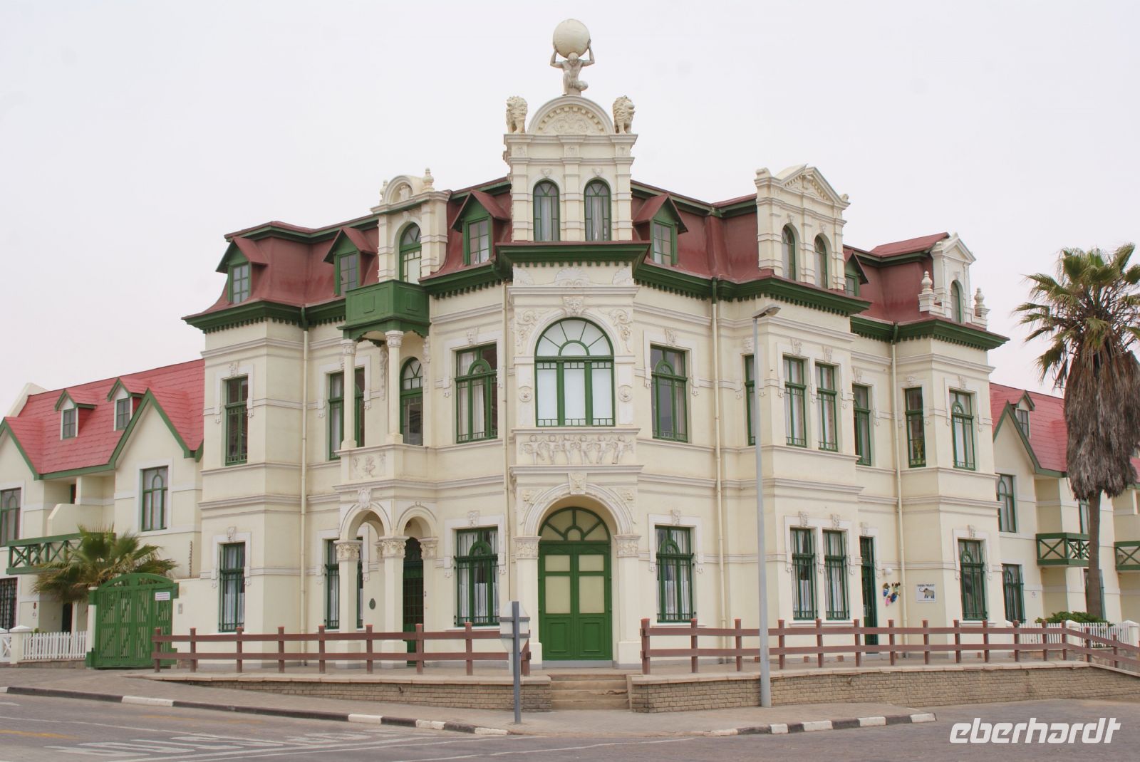 Nach einem tollen Frühstück vom Buffet verlassen wir unsere Lodge und begeben uns Richtung Tagesziel Swakopmund. Heute ist afrikanische Massage Programm und à la Herbert „Hoppi-Hoppi“ quält sich unser Gefährt über die Schotterpisten. Nichtsdestotrotz erfreuen uns Paviane, Perlhühner, Warzenschweine, eine edle Rappenantilope und später Erdhörnchen, mit besonderem etwas, auf unserer Strecke. In Solitaire angekommen, versorgen wir uns mit dem über das Land hinaus bekannten Apfelkuchen und verspeisen diesen später am Gaubpass, wo wir ein herrliches Picknickplätzchen im Schatten ergattert haben. Vorbei am Gambs Berg, der auf beachtlichen 220 m liegt, hören wir, dass dieser für die Astronomen von besonderer Bedeutung aufgrund seiner Form eines Tafelberges ist. Wir passieren den Kuiseb Canyon, in dem sich einst zwei Forscher während des Krieges über Jahre hinweg versteckten…eine unwirkliche Gegend und es ist uns schleierhaft, wie beide dies so lange durchgehalten haben. Am Nachmittag erreichen wir die Hafenstadt Walvis Bay mit 67.000 Einwohnern und dem größten Tiefseehafen Namibias. An der Küste entlang steuern wir auf unseren heutigen Endpunkt Swakopmund zu. Diese beschauliche und wohl deutscheste Stadt Namibias wurde 1892 gegründet und hat heute ca. 44.000 Einwohner. Vieles erinnert noch an vergangene Tage. So gibt es beispielsweise die „Kaiser-Wilhelm-Str.“ und etliche Häuser aus der Gründerzeit, die auch noch deutsche Namen tragen. Nach dem Check-in in unserem sehr modernen und zentral gelegenen Hotel „The Delight Hotel“, spazieren wir bereits zu Fuß durch die Kleinstadt und lassen die besondere Kulisse auf uns wirken. Abends speisen wir im Ocean Celler Fischrestaurant mit Meerblick und lassen es uns mit fangfrischem Fisch so richtig gut gehen.