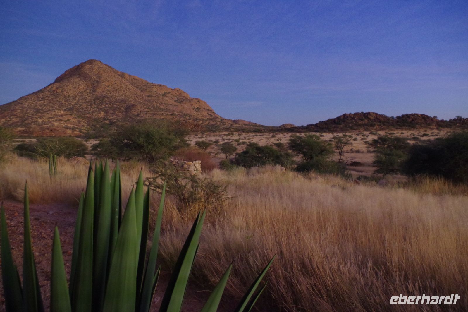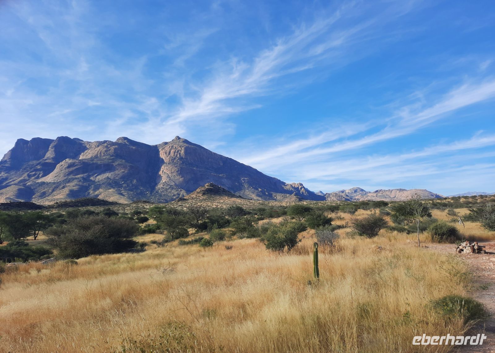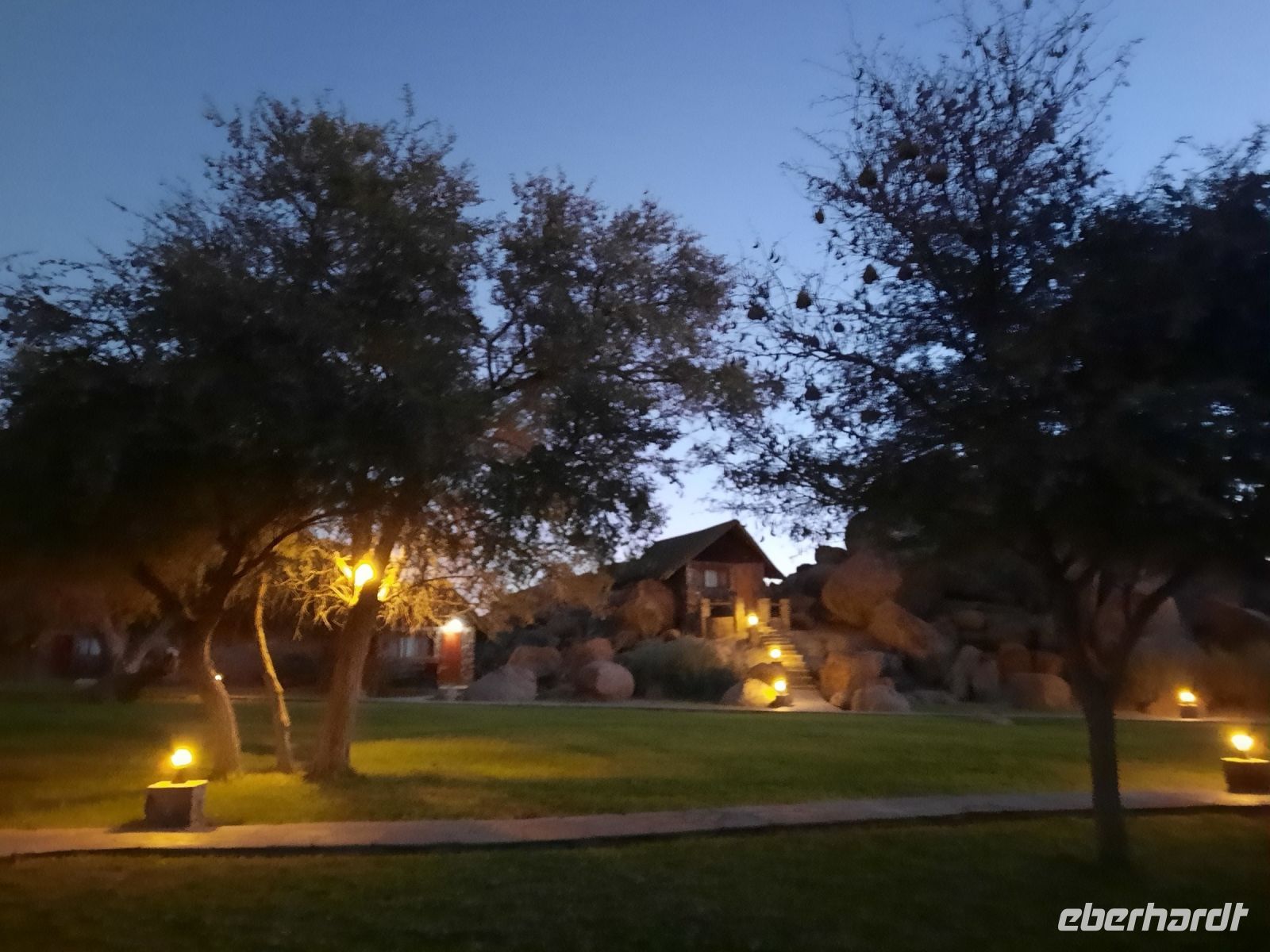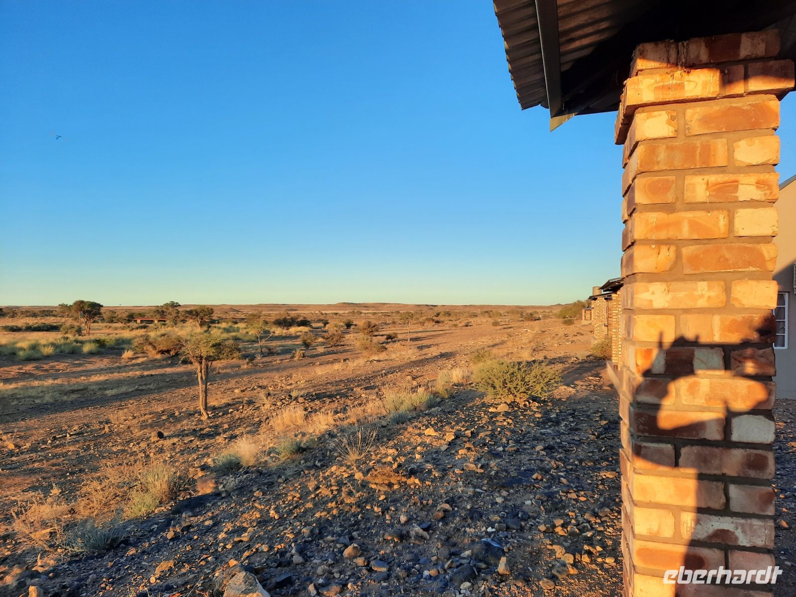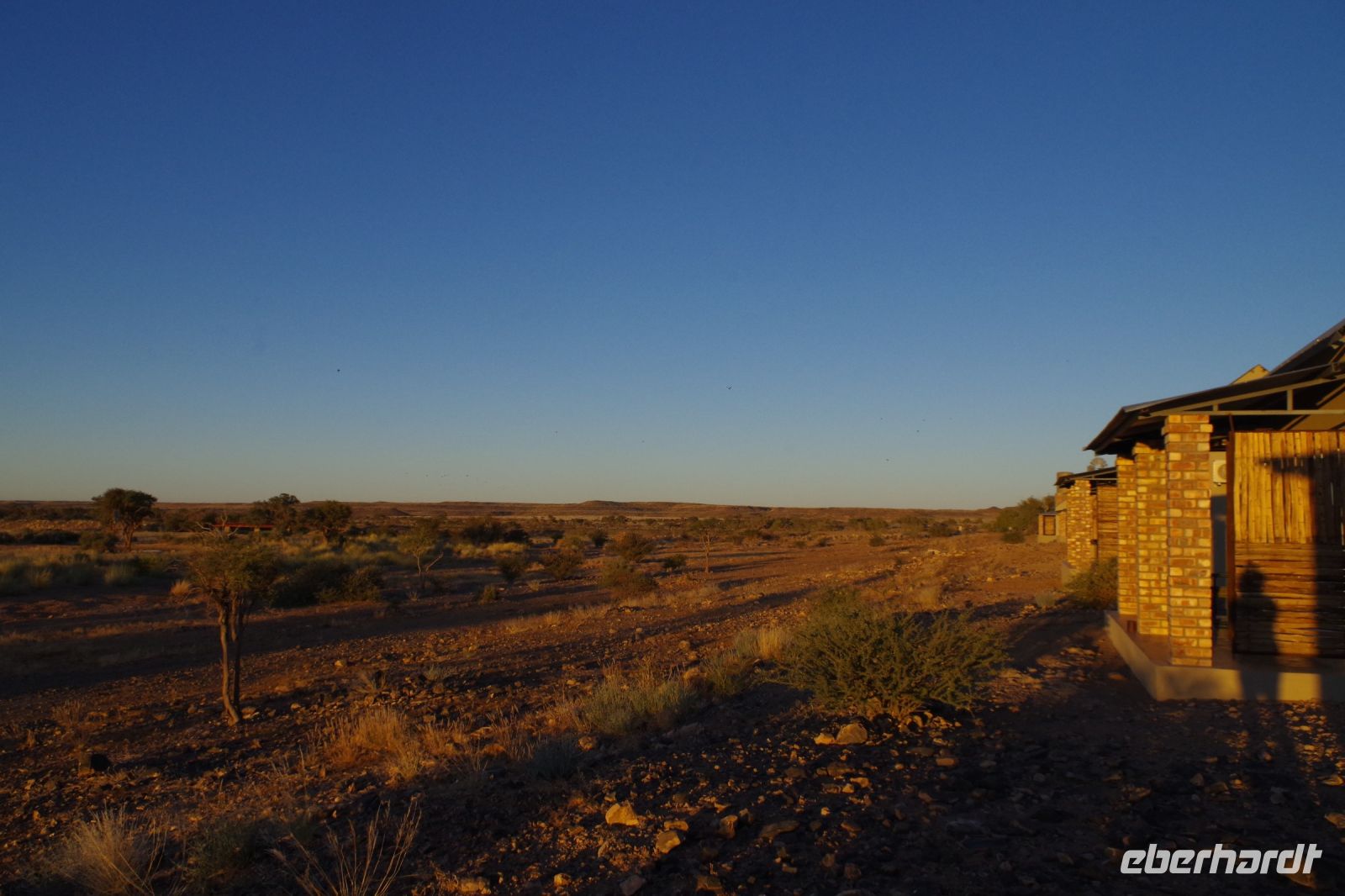 Reisebegleitung Annett und die 6 weiteren Gäste landeten am frühen Morgen in Windhoek. Am Flughafen wartete schon Cleophas, unser Chauffeur, der uns a la Speedy Gonzales zur Canon Lodge fuhr. Von Windhoek trennten uns noch ca. 700 km, am frühen Abend war dann die Eberhardt-Gruppe wieder vereint. Beim gemeinsamen, leckeren Abendessen hatten wir viel zu erzählen.