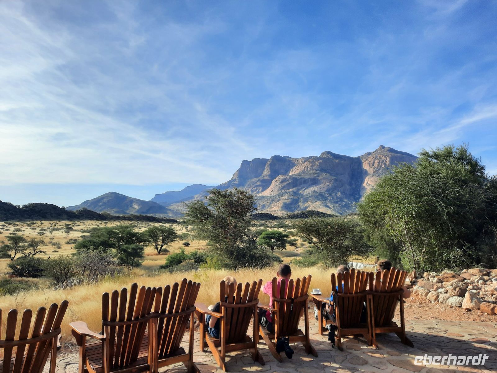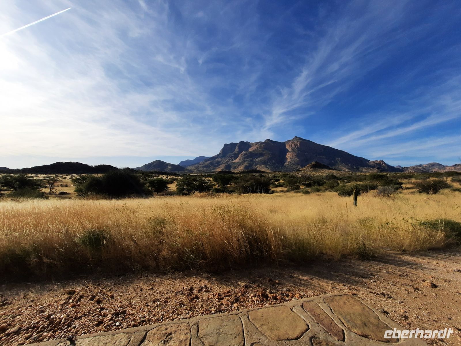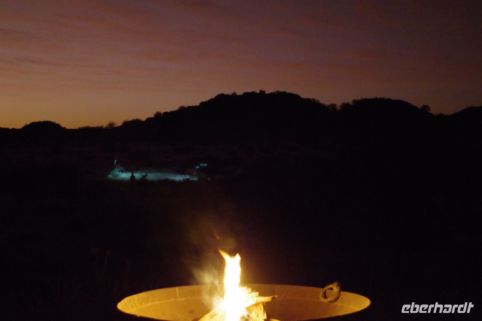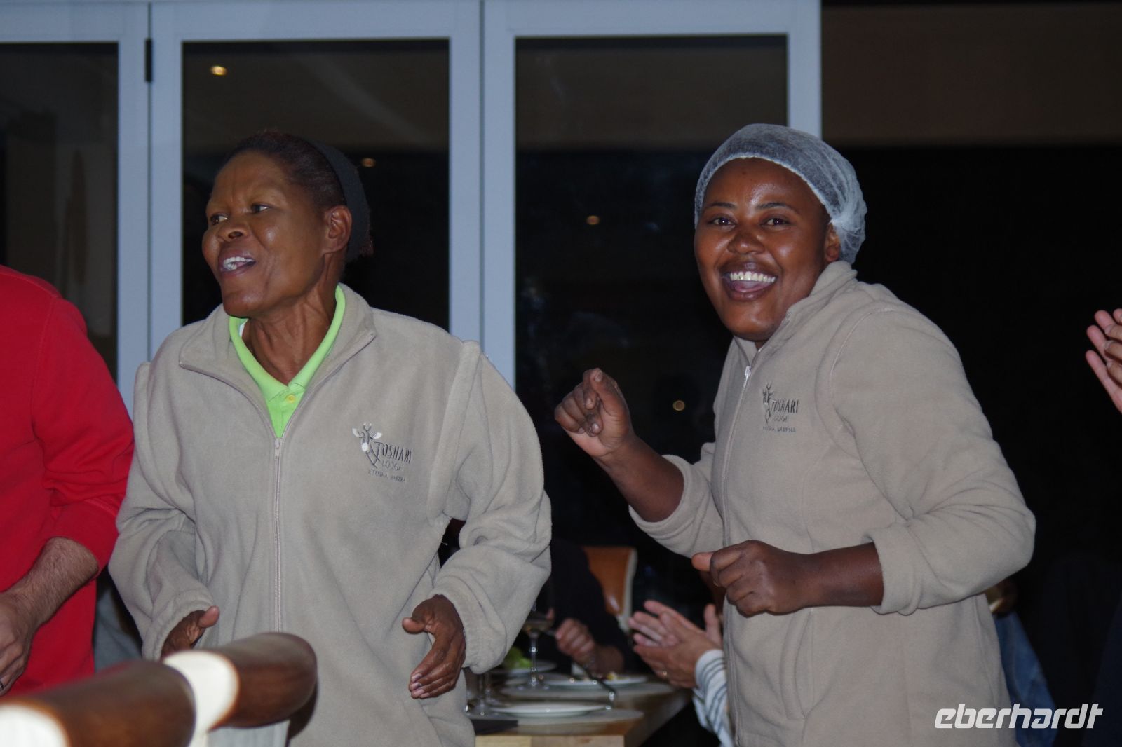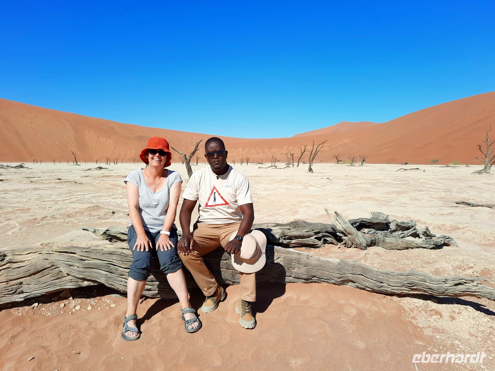 Reisebegleitung Annett und die 6 weiteren Gäste landeten am frühen Morgen in Windhoek. Am Flughafen wartete schon Cleophas, unser Chauffeur, der uns a la Speedy Gonzales zur Canon Lodge fuhr. Von Windhoek trennten uns noch ca. 700 km, am frühen Abend war dann die Eberhardt-Gruppe wieder vereint. Beim gemeinsamen, leckeren Abendessen hatten wir viel zu erzählen.