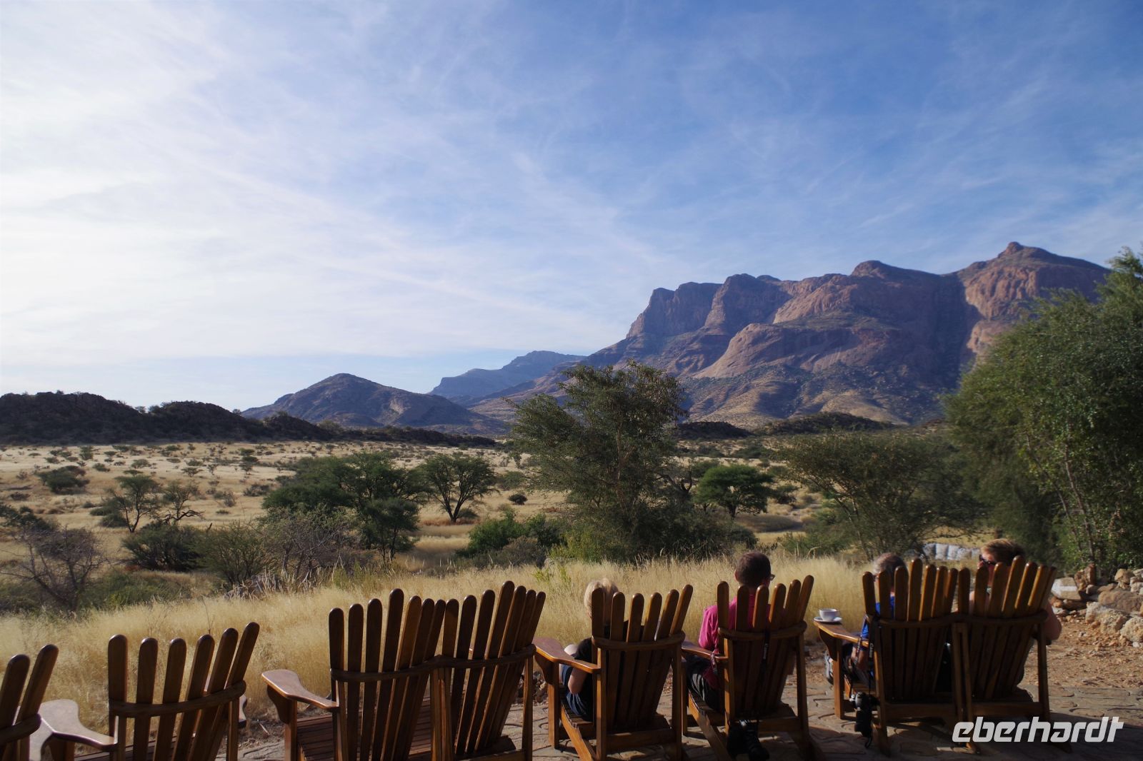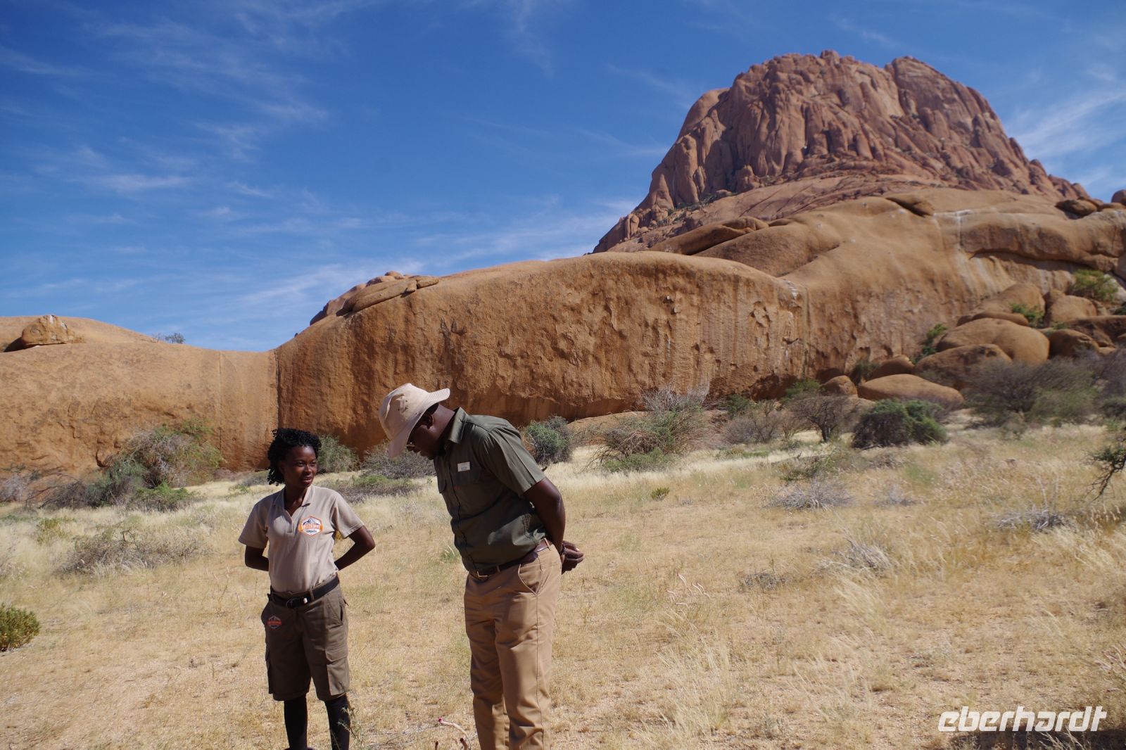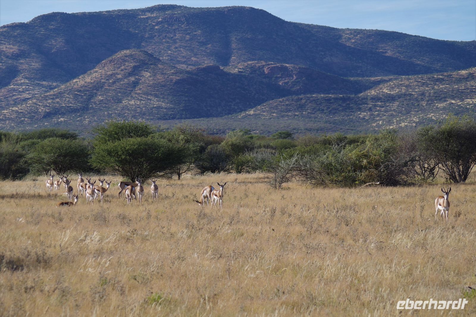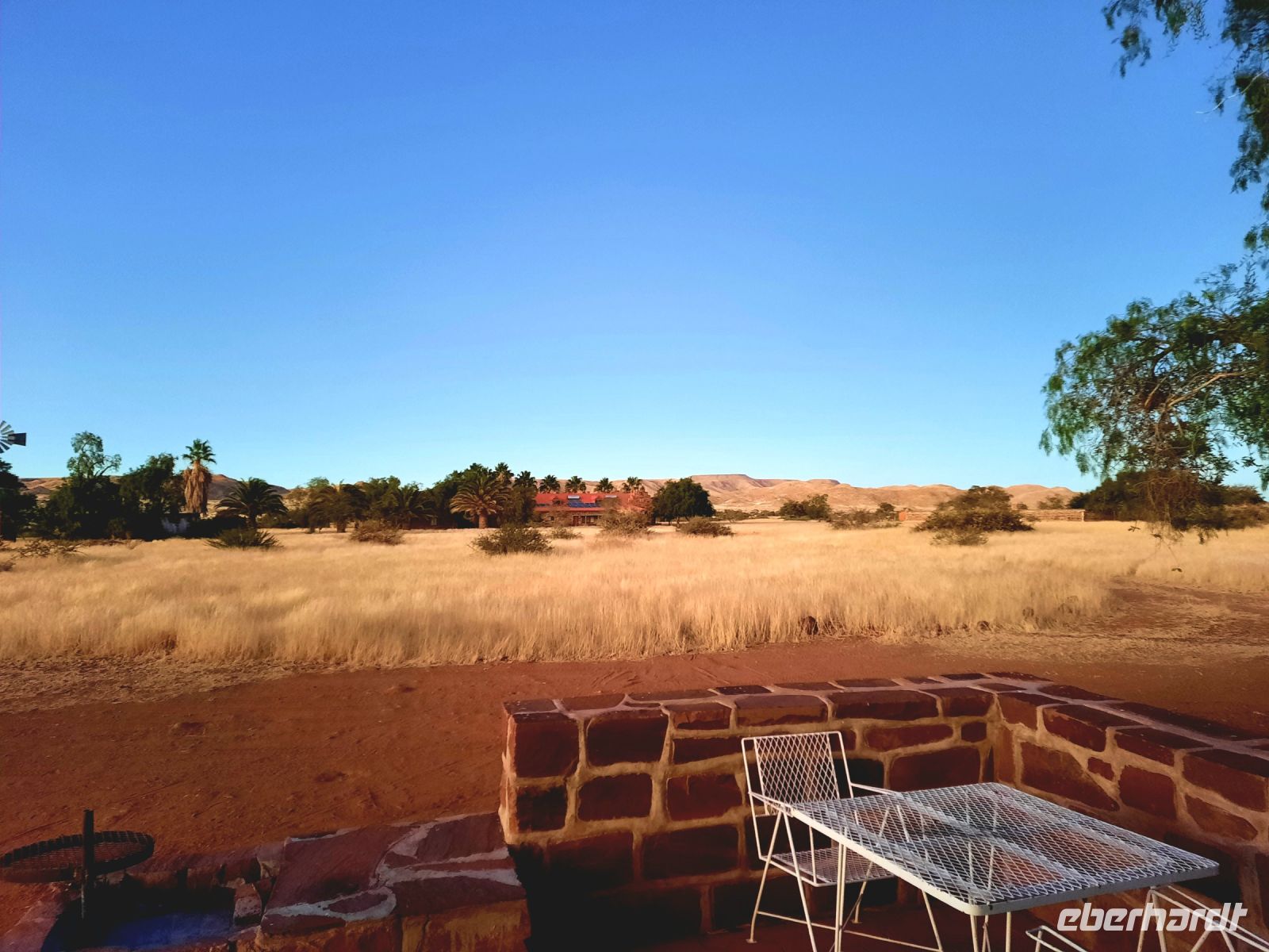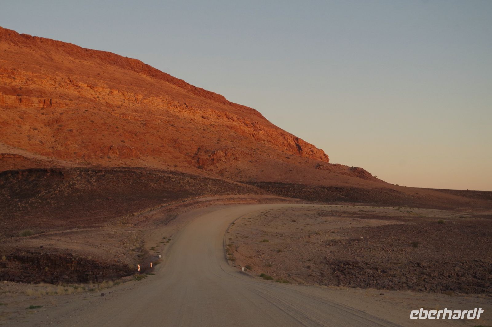 Reisebegleitung Annett und die 6 weiteren Gäste landeten am frühen Morgen in Windhoek. Am Flughafen wartete schon Cleophas, unser Chauffeur, der uns a la Speedy Gonzales zur Canon Lodge fuhr. Von Windhoek trennten uns noch ca. 700 km, am frühen Abend war dann die Eberhardt-Gruppe wieder vereint. Beim gemeinsamen, leckeren Abendessen hatten wir viel zu erzählen.
