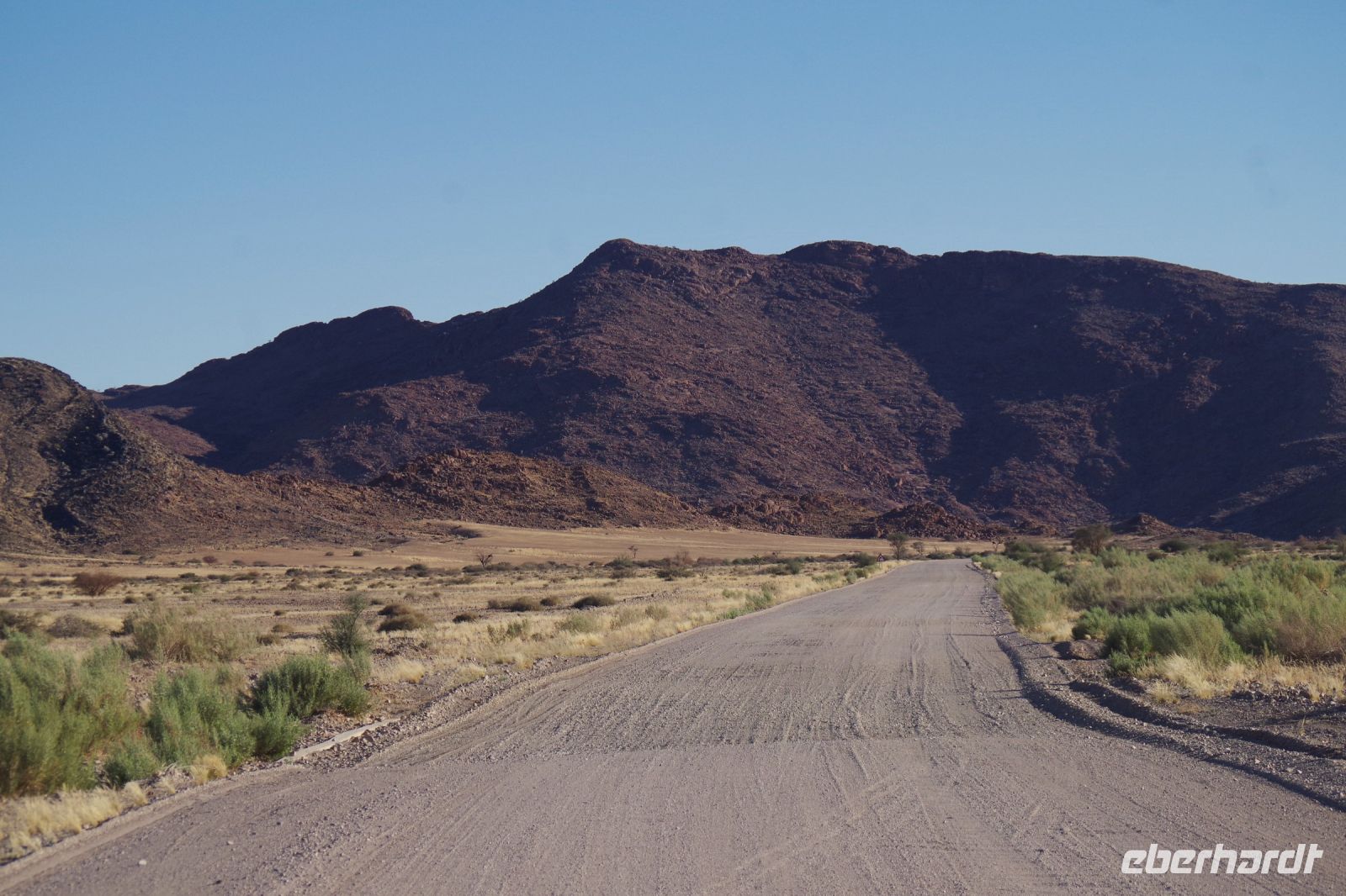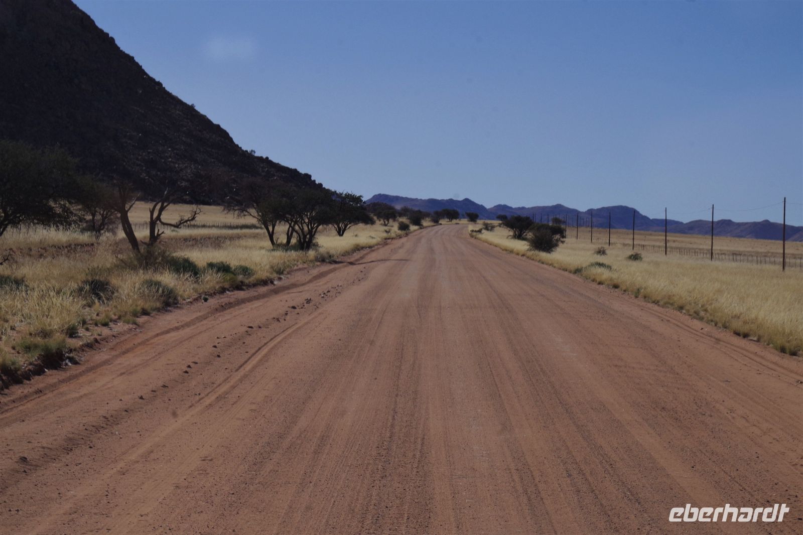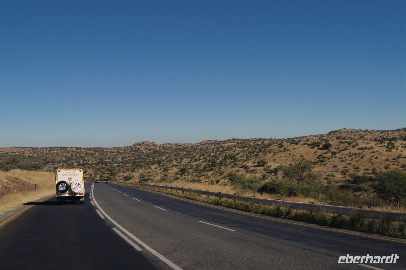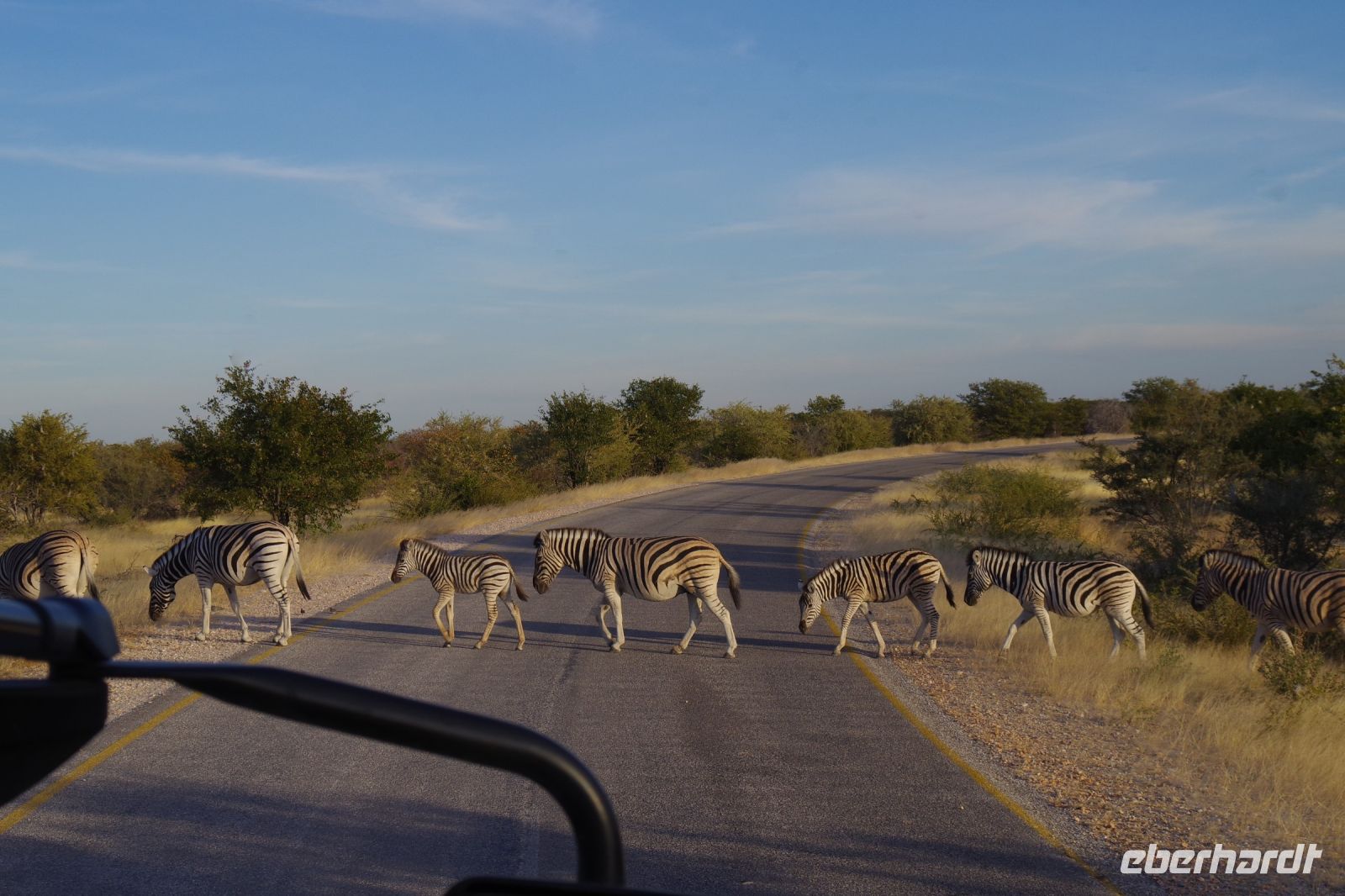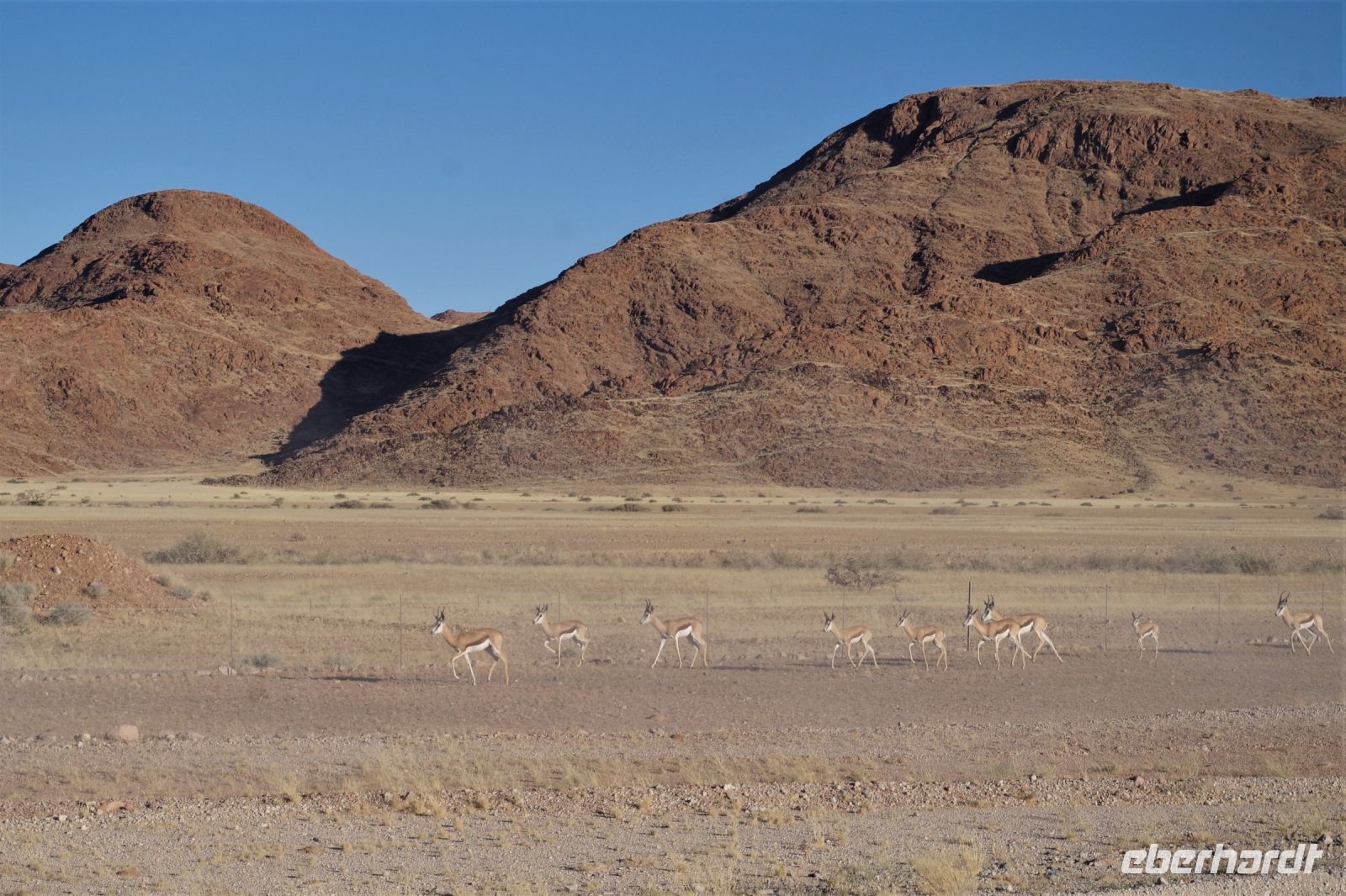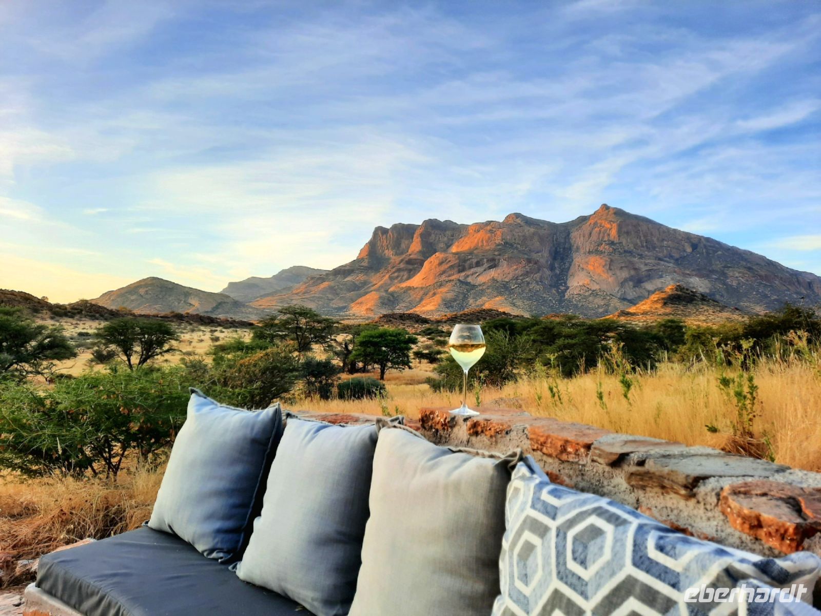 Reisebegleitung Annett und die 6 weiteren Gäste landeten am frühen Morgen in Windhoek. Am Flughafen wartete schon Cleophas, unser Chauffeur, der uns a la Speedy Gonzales zur Canon Lodge fuhr. Von Windhoek trennten uns noch ca. 700 km, am frühen Abend war dann die Eberhardt-Gruppe wieder vereint. Beim gemeinsamen, leckeren Abendessen hatten wir viel zu erzählen.