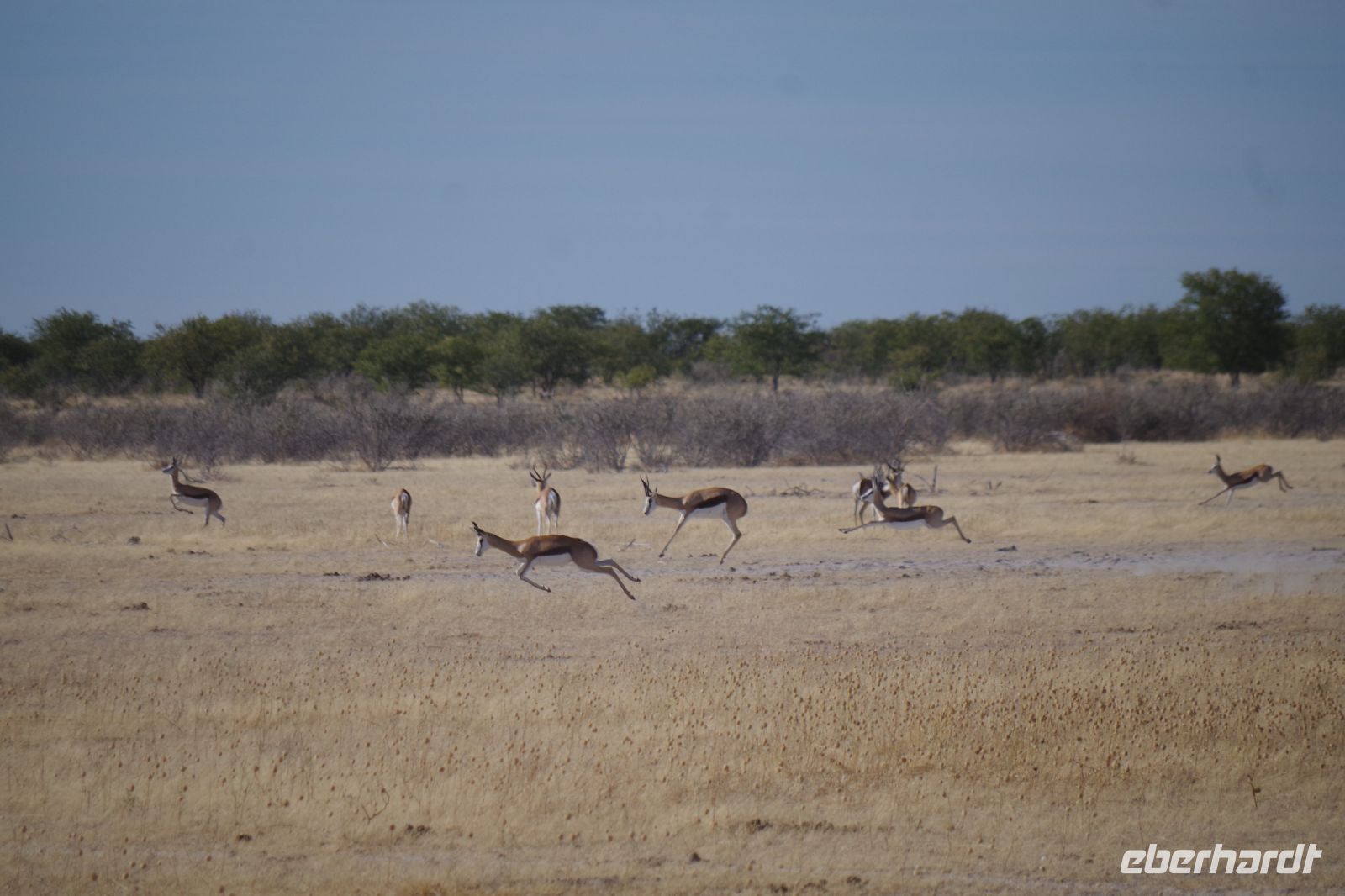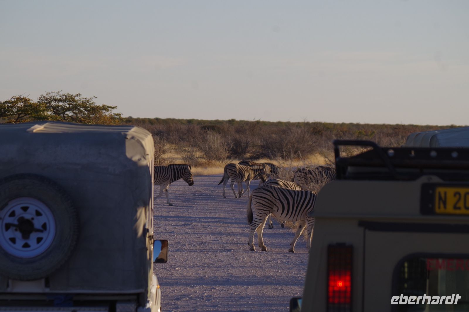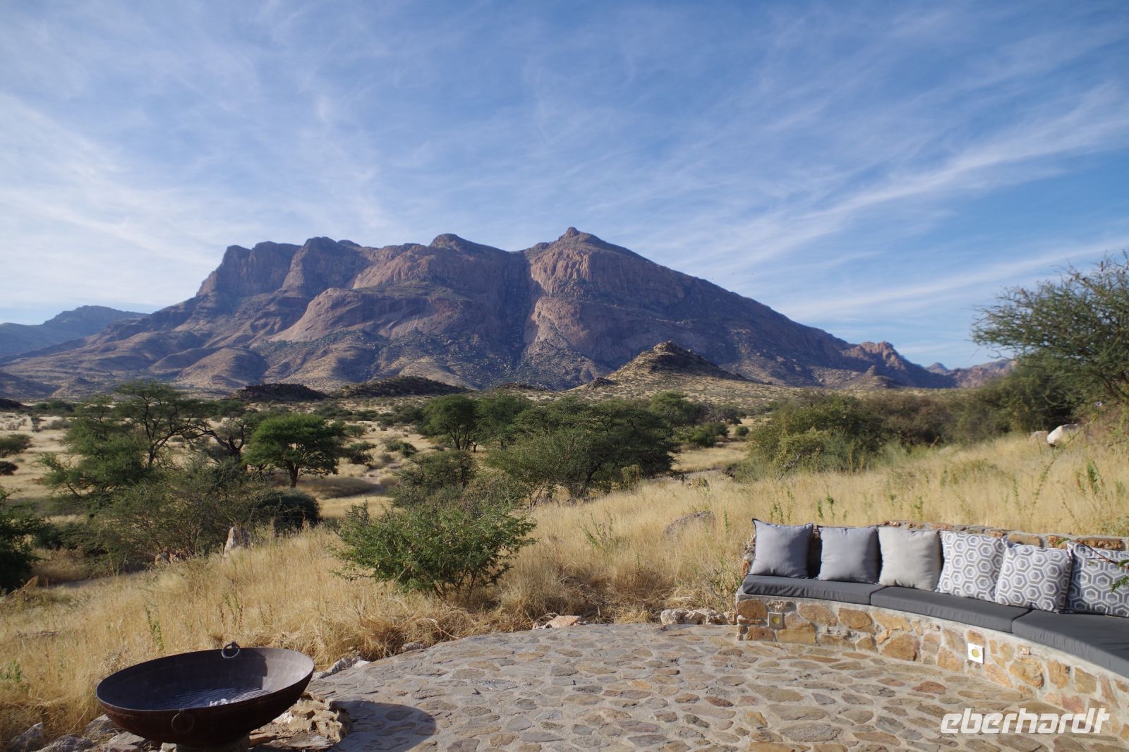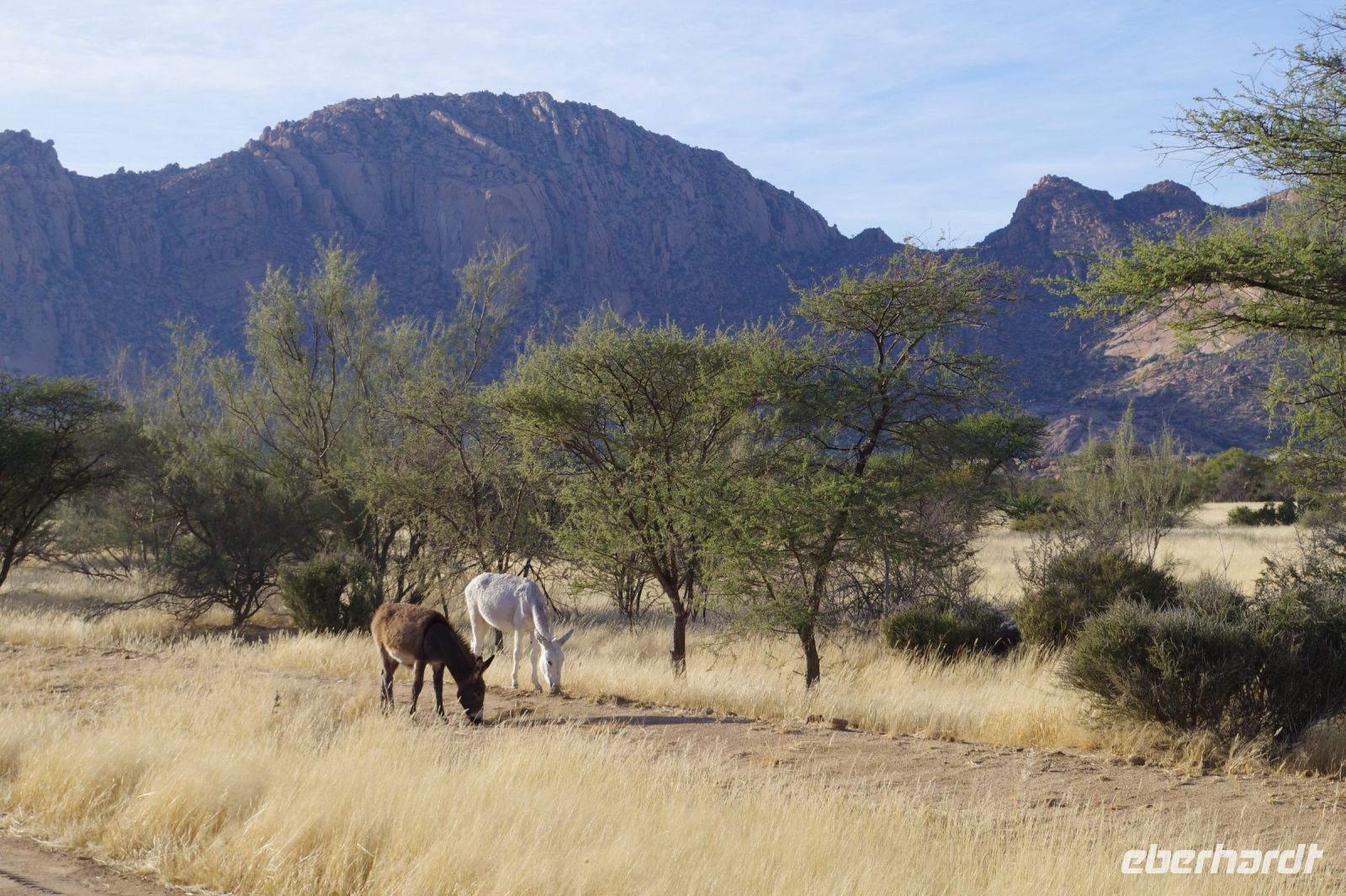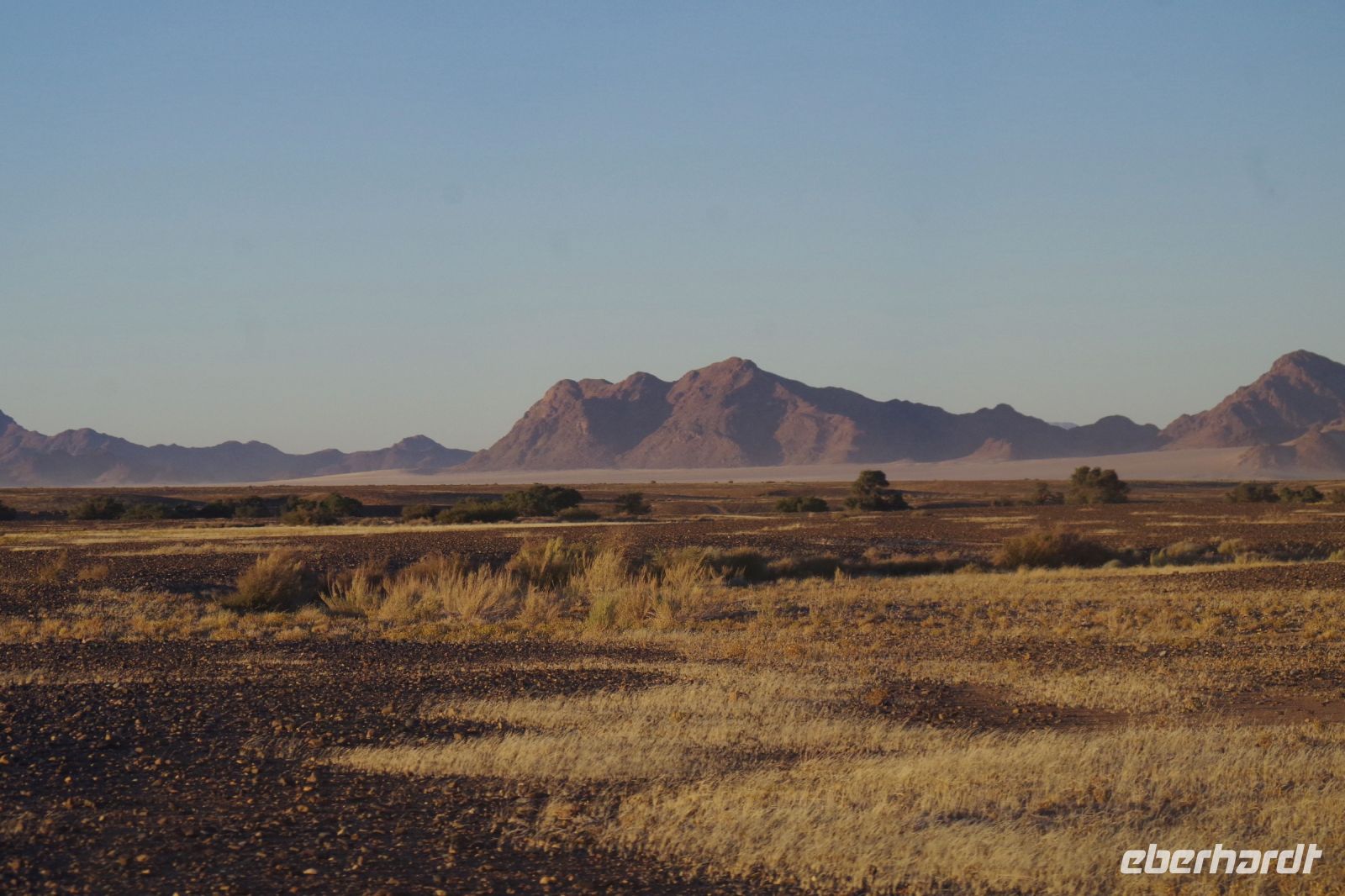 Reisebegleitung Annett und die 6 weiteren Gäste landeten am frühen Morgen in Windhoek. Am Flughafen wartete schon Cleophas, unser Chauffeur, der uns a la Speedy Gonzales zur Canon Lodge fuhr. Von Windhoek trennten uns noch ca. 700 km, am frühen Abend war dann die Eberhardt-Gruppe wieder vereint. Beim gemeinsamen, leckeren Abendessen hatten wir viel zu erzählen.