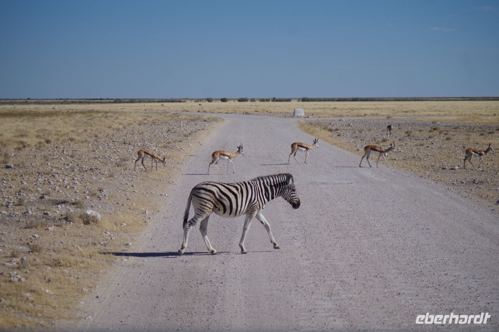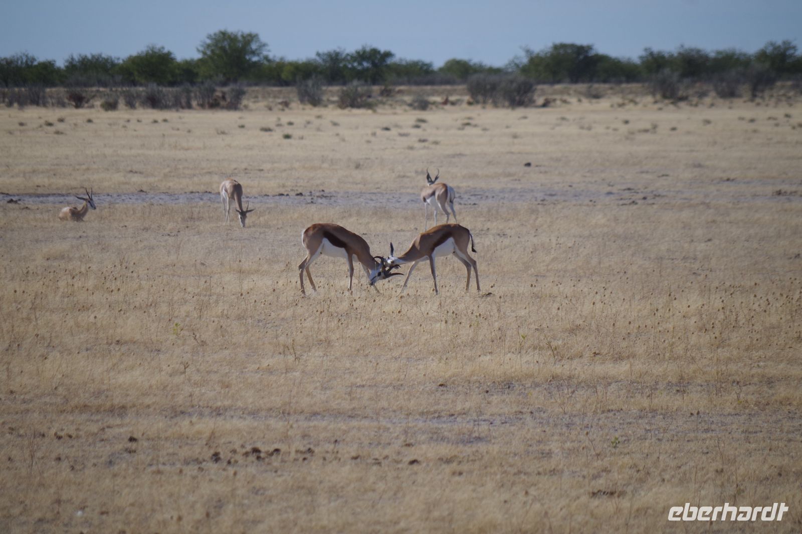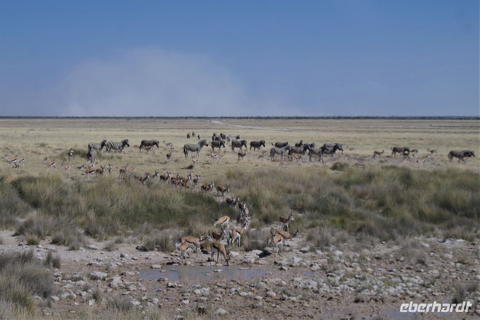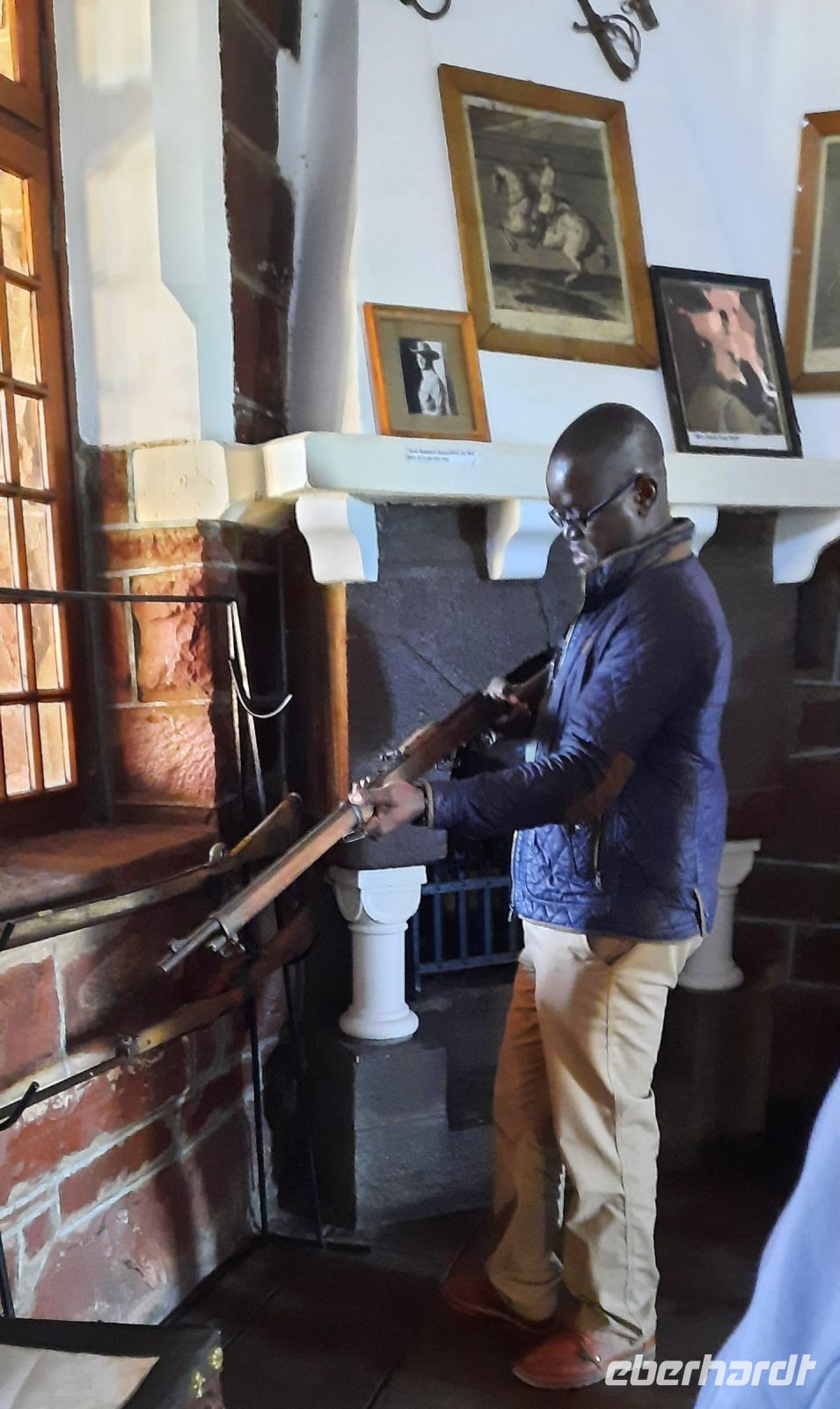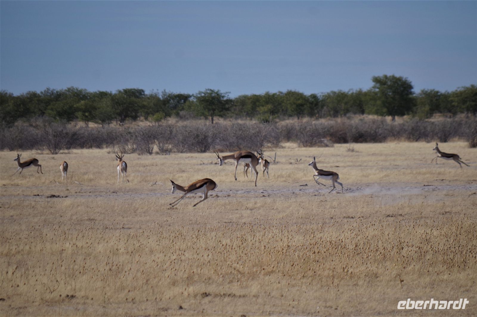 Reisebegleitung Annett und die 6 weiteren Gäste landeten am frühen Morgen in Windhoek. Am Flughafen wartete schon Cleophas, unser Chauffeur, der uns a la Speedy Gonzales zur Canon Lodge fuhr. Von Windhoek trennten uns noch ca. 700 km, am frühen Abend war dann die Eberhardt-Gruppe wieder vereint. Beim gemeinsamen, leckeren Abendessen hatten wir viel zu erzählen.