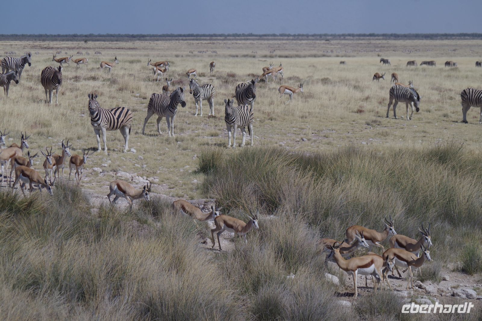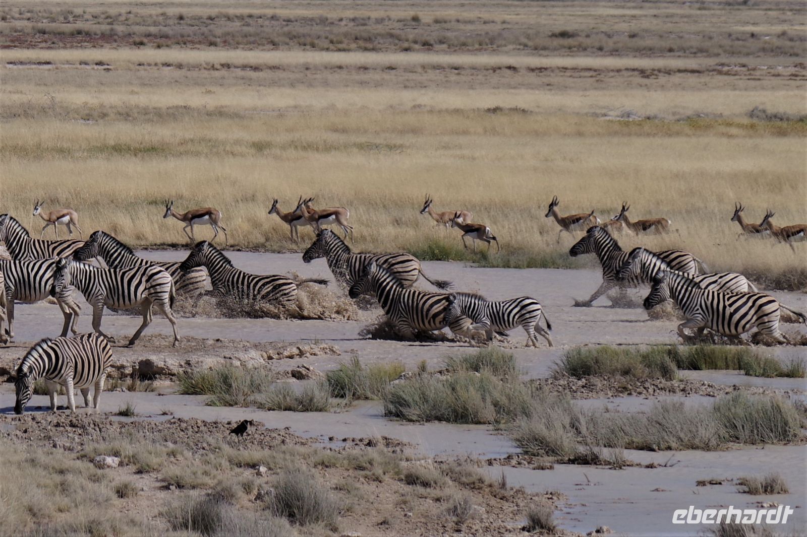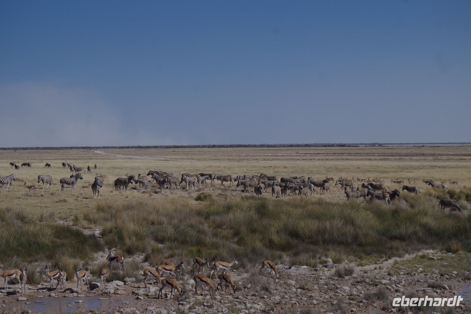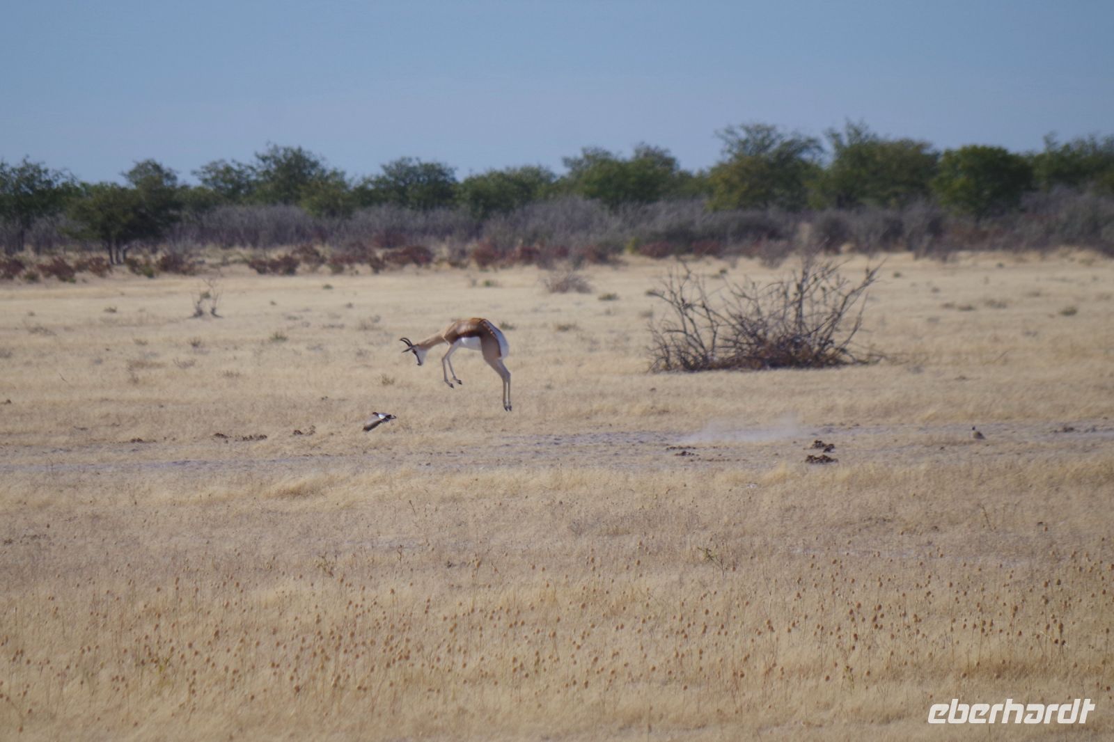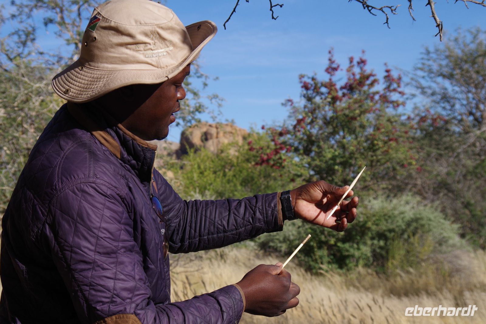 Reisebegleitung Annett und die 6 weiteren Gäste landeten am frühen Morgen in Windhoek. Am Flughafen wartete schon Cleophas, unser Chauffeur, der uns a la Speedy Gonzales zur Canon Lodge fuhr. Von Windhoek trennten uns noch ca. 700 km, am frühen Abend war dann die Eberhardt-Gruppe wieder vereint. Beim gemeinsamen, leckeren Abendessen hatten wir viel zu erzählen.