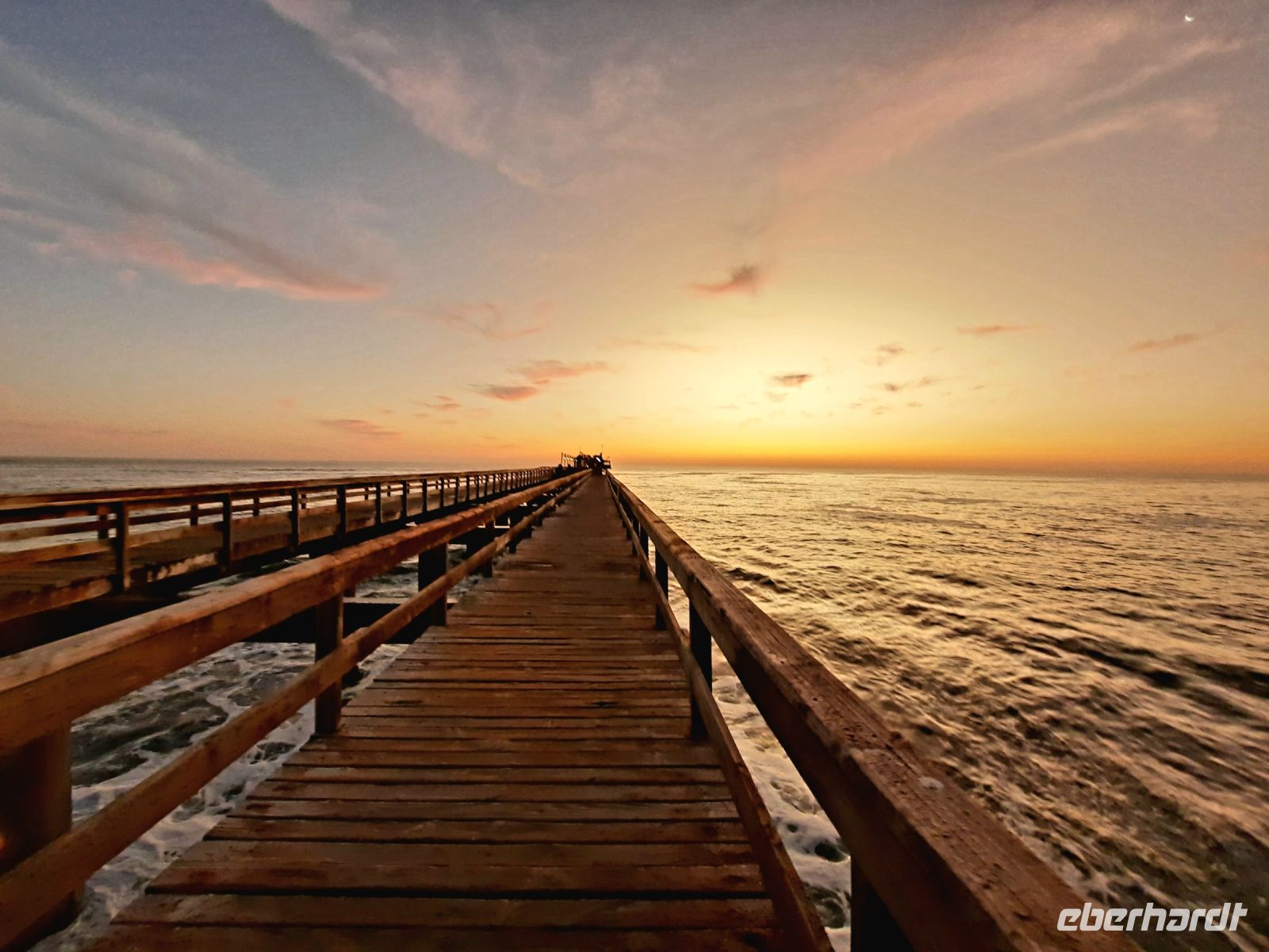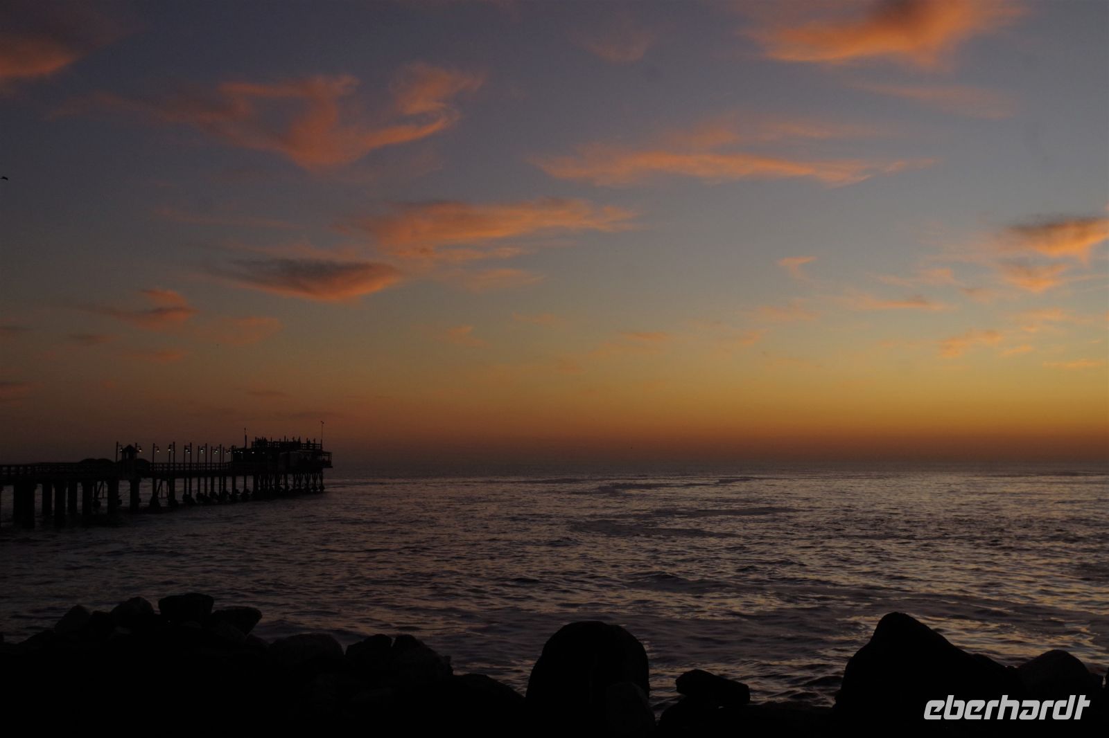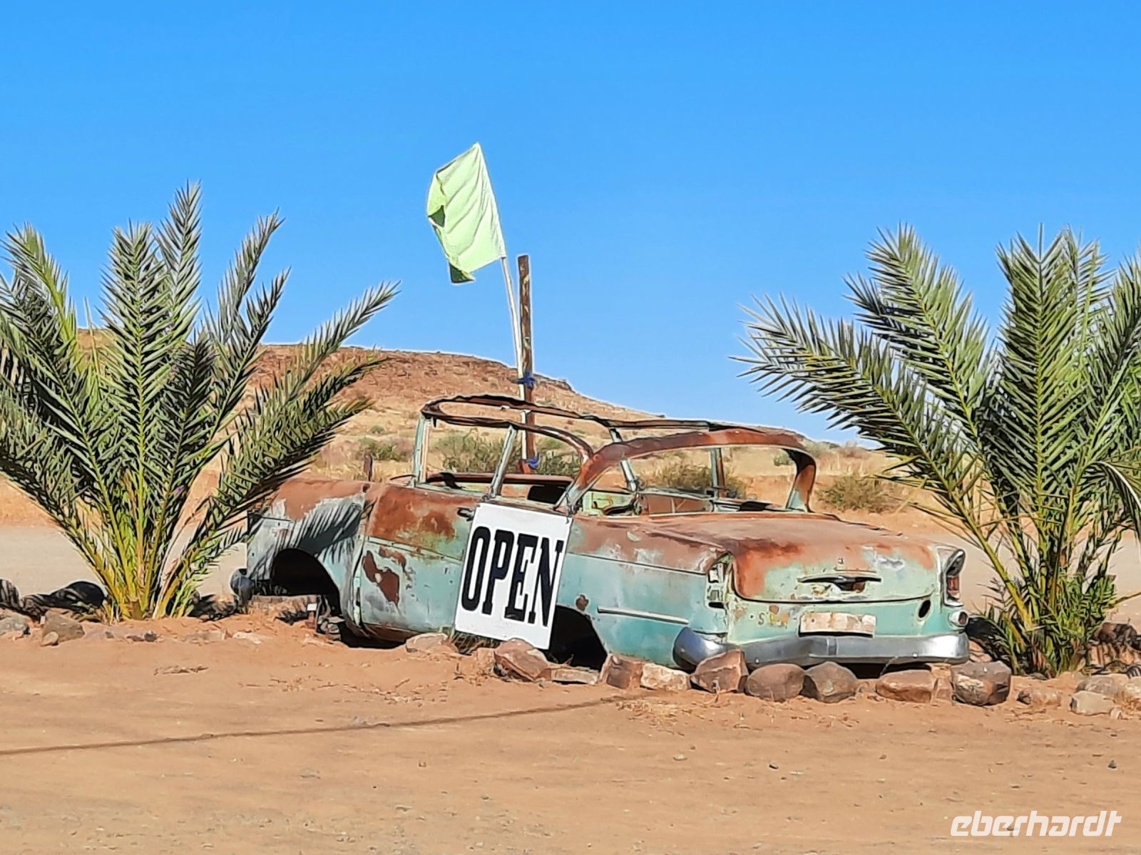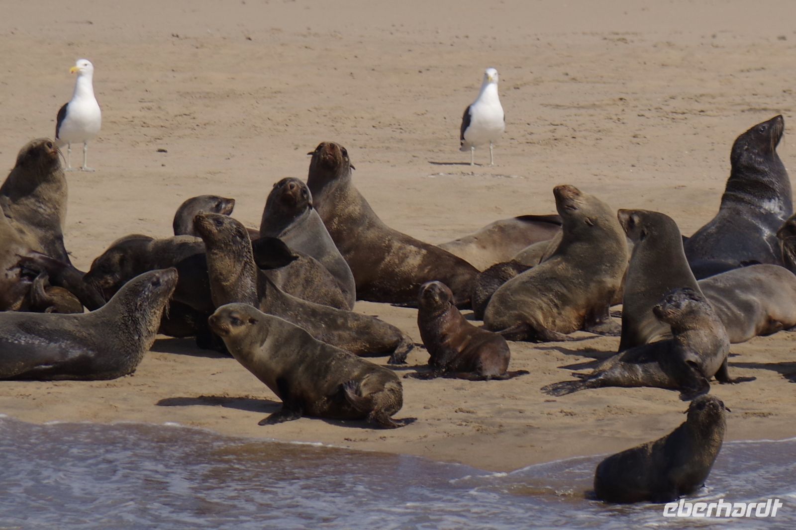Wir verließen die Wüste und fuhren weiter durch das karge Naukluft Gebirge (über 1.000 m hoch). In Solitaire, einem weiteren wichtigen und bekannten Verkehrsknotenpunkt, machten wir noch einen Tankstopp. Dort befindet sich die bekannte Bäckerei von Moose Mc Gregor, der vor einigen Jahren verstarb. Doch die Tradition der Bäckerei wird fortgeführt. Hier gibt es neben dem über die Landesgrenzen hinaus bekannten Apfelkuchen, auch Schweinsohren und andere, süße Leckereien, den wir als Proviant für unser Picknick mitnahmen. Über den Gaub Pass (ca. 800 m hoch) passierten wir abermals den südlichen Wendekreis des Steinbocks (Tropic of capricorn). Landschaftlich rauh, aber wunderschön empfanden wir diese Strecke, die wir mit verschiedenen Fotostopps auflockerten. Später passierten wir Kuiseb Canyon und fuhren über die kleine Brücke über den ausgetrockneten Kuiseb. Hier in dieser Region hielt sich Prof. Dr. Henno Martin (Geologe und Autor des Bestsellers "Wenn es Krieg gibt, gehen wir in die Wüste") mit seinem Freund während des 2. Weltkriegs versteckt. Unterwegs picknickten wir, bevor wir am frühen Nachmittag die Teerstraße in Walvis Bay erreichten. Nach der Hitze der Wüste freuten wir uns nun auf etwas Frische.