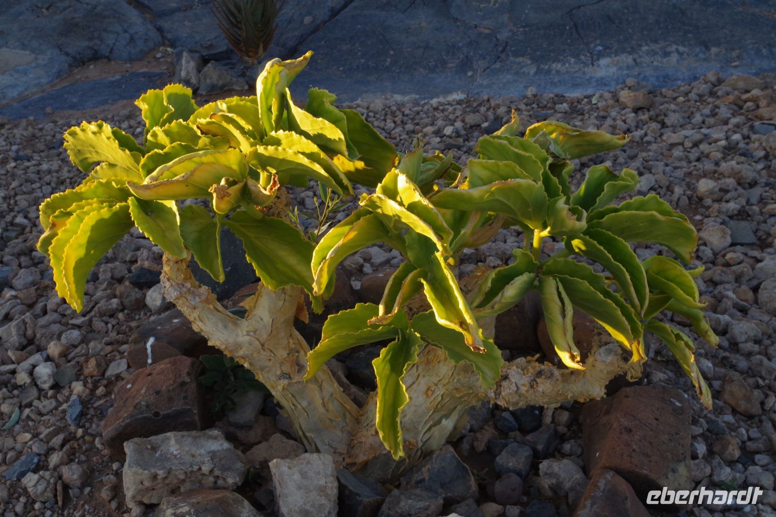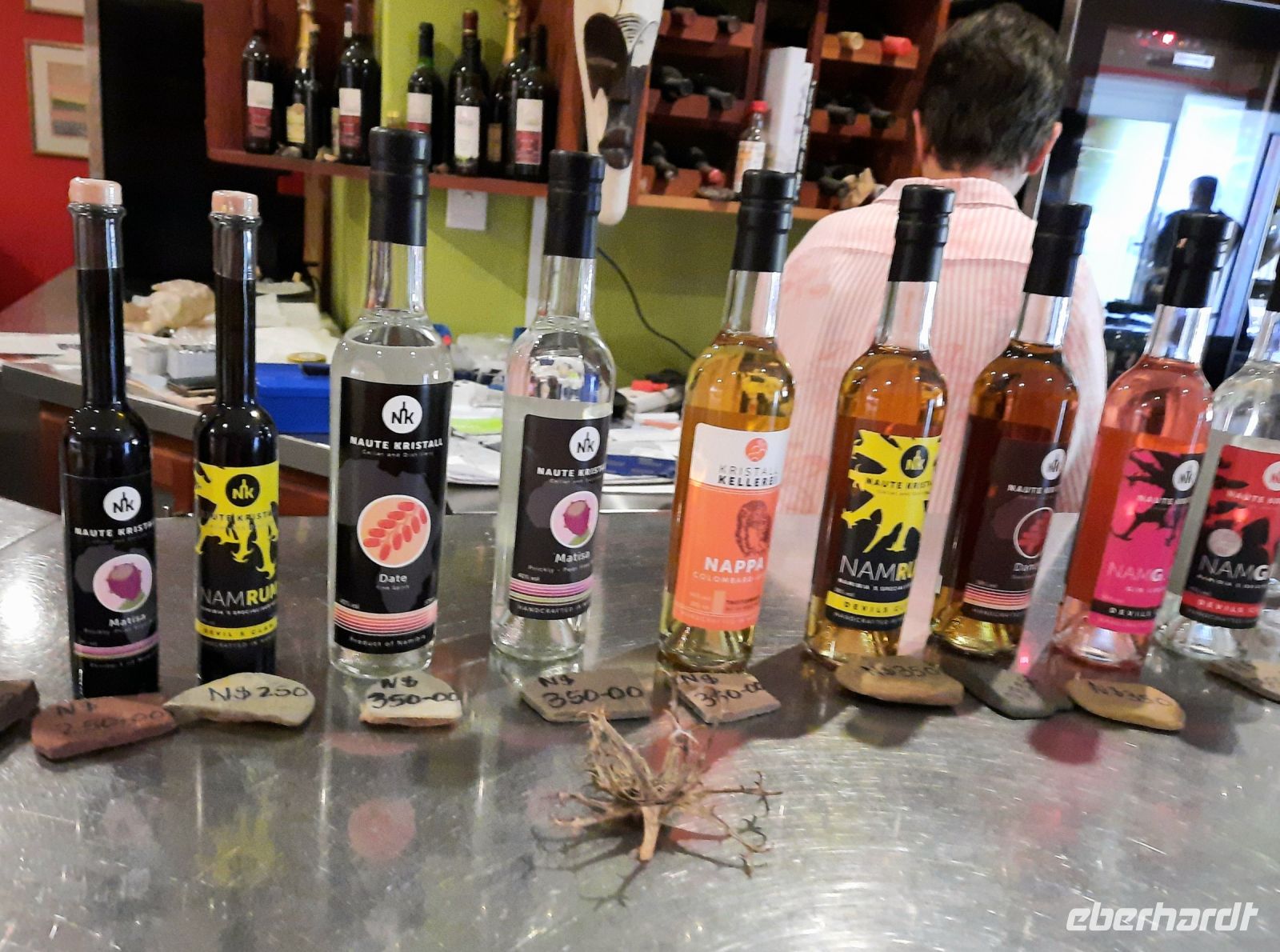 Nach dem Frühstück fuhren wir zum Fish River Canyon. Dort wanderten wir bis zum Hiking Point und unsere Fotoapparate klickten - herrliche Aussichten und Panoramen. Der Fisch Fluss windet sich durch den 550 Meter tiefen Canyon und bildet somit die zweitgrößte Schluchtenlandschaft der Erde. Auf einer Länge von etwa 160 km und Breite von bis zu 27 km bis zu 550 Meter tief wurde der Canyon vom Fluss ausgewaschen. Der Fischfluss ist mit einer Länge von über 650 km der längste Fluss Namibias, führt aber nur periodisch Wasser. Nach dem Naturschauspiel fuhren wir weiter. Nach einem Tankstopp am urigen Canon Roadhouse wurden wir von Familie Weder am Naute Damm erwartet. Der Damm dient zur Wasserversorgung der umliegenden Ortschaften und zur Bewässerung der hier angelegten Obstplantagen. In der kleinen Oase gedeihen nun Tafeltrauben, Datteln, Kaktusfeigen, Affenorangen und Granatäpfel. Einiges Obst kann aber wegen kleiner Mängel nicht in den Export gehen. Dieses Obst wird nun von Katrin und Michael Weder destilliert. Das ist der Hintergrund des Projektes "Naute Dam Brennerei". Neben einem leckeren Mittagessen und italienischen Espresso verkosteten wir natürlich die geistreichen Getränke. Danach zog unsere Karawane weiter. An der Strecke lag der fast verlassene Ort Seeheim, der früher Station der deutschen Schutztruppe war und durch den Bau der Eisenbahn ein wichtiger Verkehrsknotenpunkt war. Wir überquerten den Fisch Fluss und erreichten am Nachmittag unsere nächste Unterkunft, die Alte Kalköfen Lodge. Auf dem Farmgelände steht noch ein alter Brennofen, in dem früher der Kalk gebrannt wurde, daher auch der Name der Lodge. Die Lodge befindet sich auf der ehemaligen Farm Simplon und ist mit viel Liebe zum Details ausgestattet. Interessant ist auch das Hobby von Frikkie, dem Eigentümer. In seinem Cole Lithoparium, einem speziellen Gewächshaus, kann man die größte Sammlung von Lithops in Südnamibia bewundern kann. Diese ungewöhnlichen Pflanzen sind auch als „blühende oder lebende Steine“ bekannt, da sie Kieselsteinen ähneln. Frikkie besitzt die einzige offizielle Lizenz in Namibia, diese seltenen und geschützten Wüstenpflanzen zu sammeln. Am Abend nahmen wir an der reichlich gedeckten Tafel Platz und wurden von den Kochkünsten von Frikkies Frau verwöhnt.