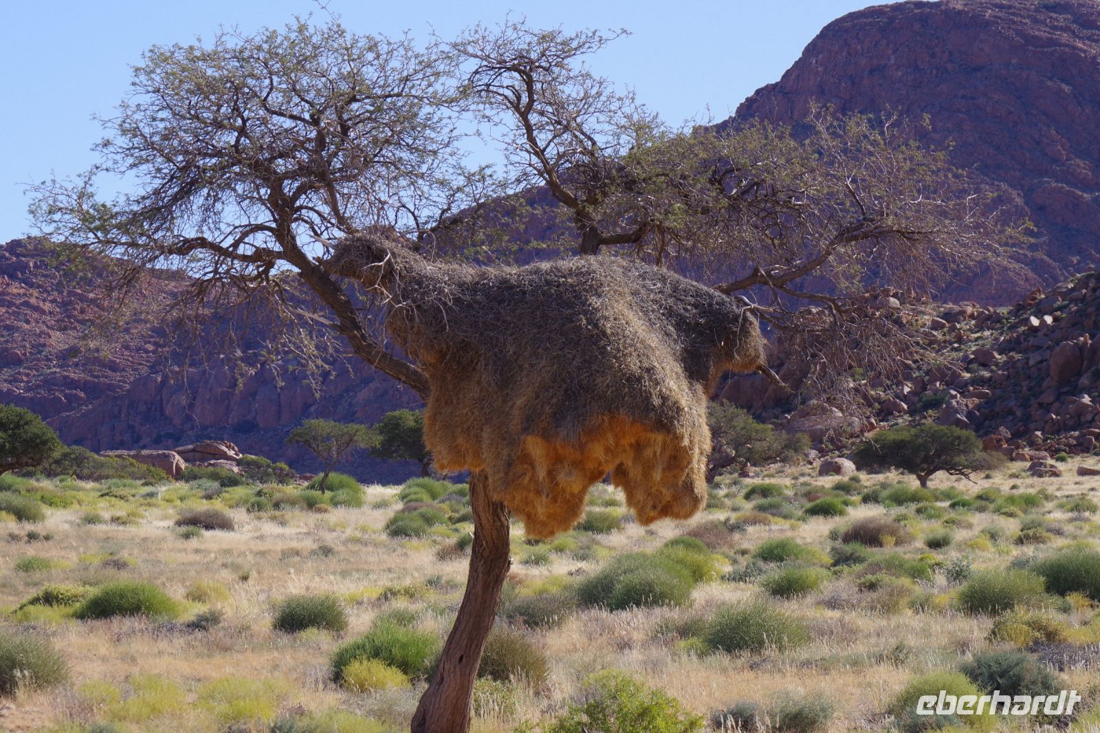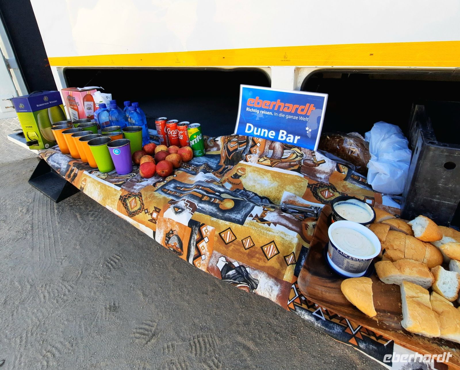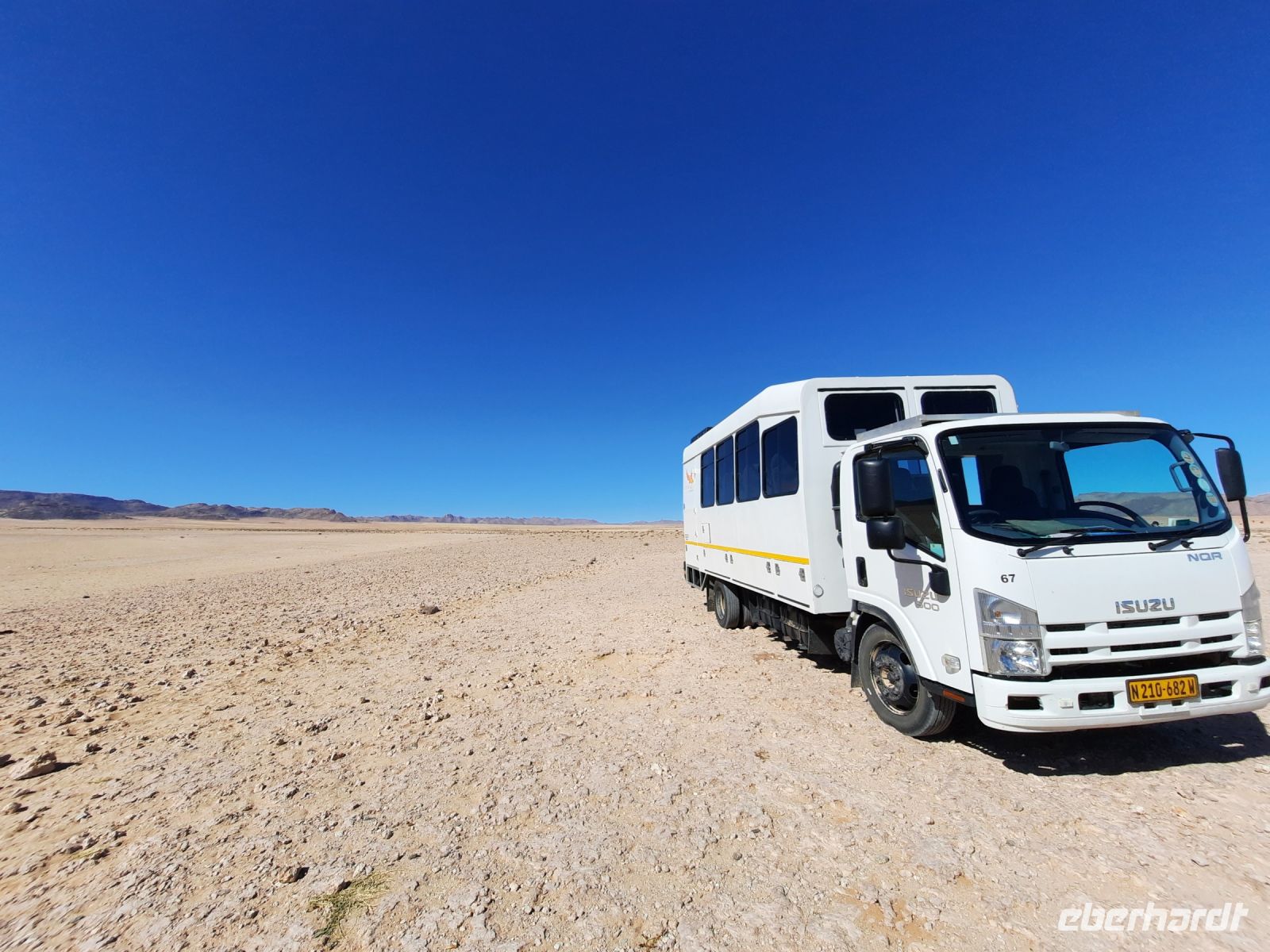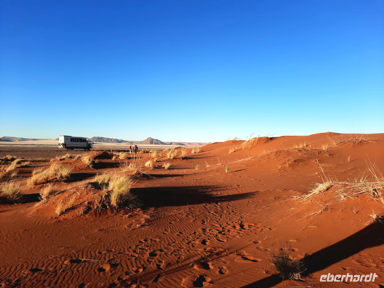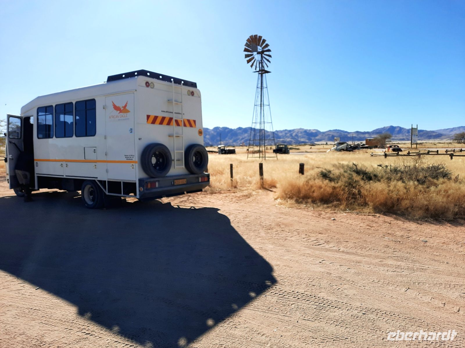 Die Vorhut landete am frühen Morgen in Windhoek und wurde von unserem DriverGuide Harold herzlich begrüßt. Im fast leeren Truck fühlten sie sich etwas einsam, wurden aber bestens von Harold betreut. Vorbei am Heldenacker und der Basterstadt Rehoboth ging es in die Dünenlandschaft der Kalahari zur Kalahari Anib Lodge bei Mariental. Unterwegs bestaunten die Gäste die Riesennester der Webervögel, einsame Viehstationen mit traditionellen Wasserpumpen und "Kalahari Ferraris", die durch die Wüste rasen". Die Nachzügler bestiegen am Abend den Flieger von Eurowings Discover und hoben in den nächtlichen Himmel ab.