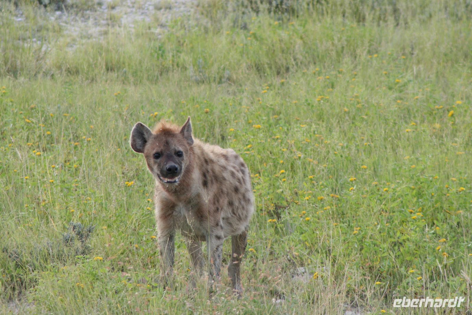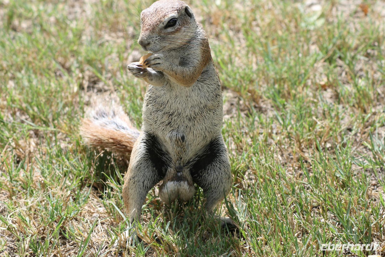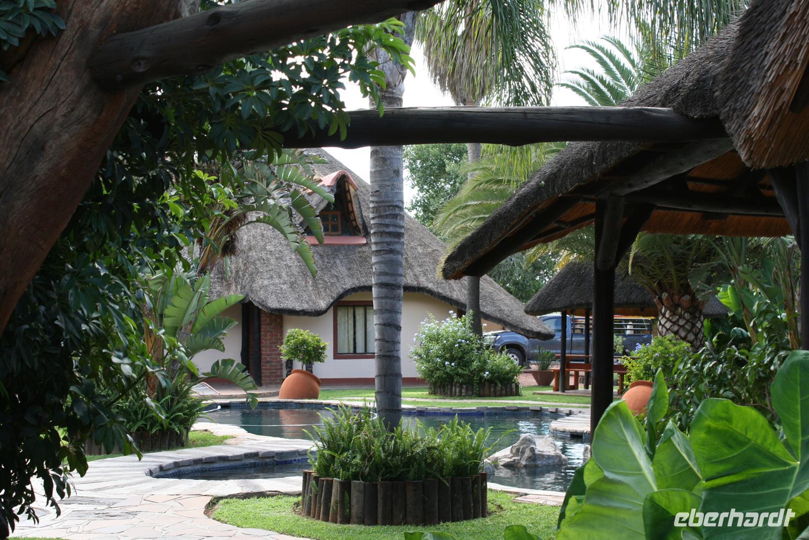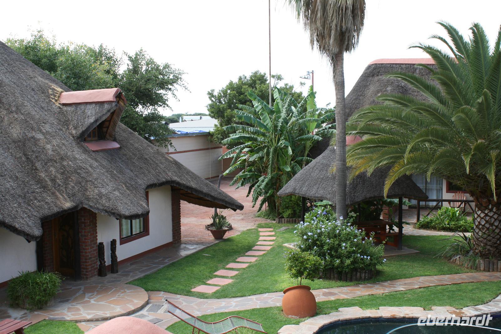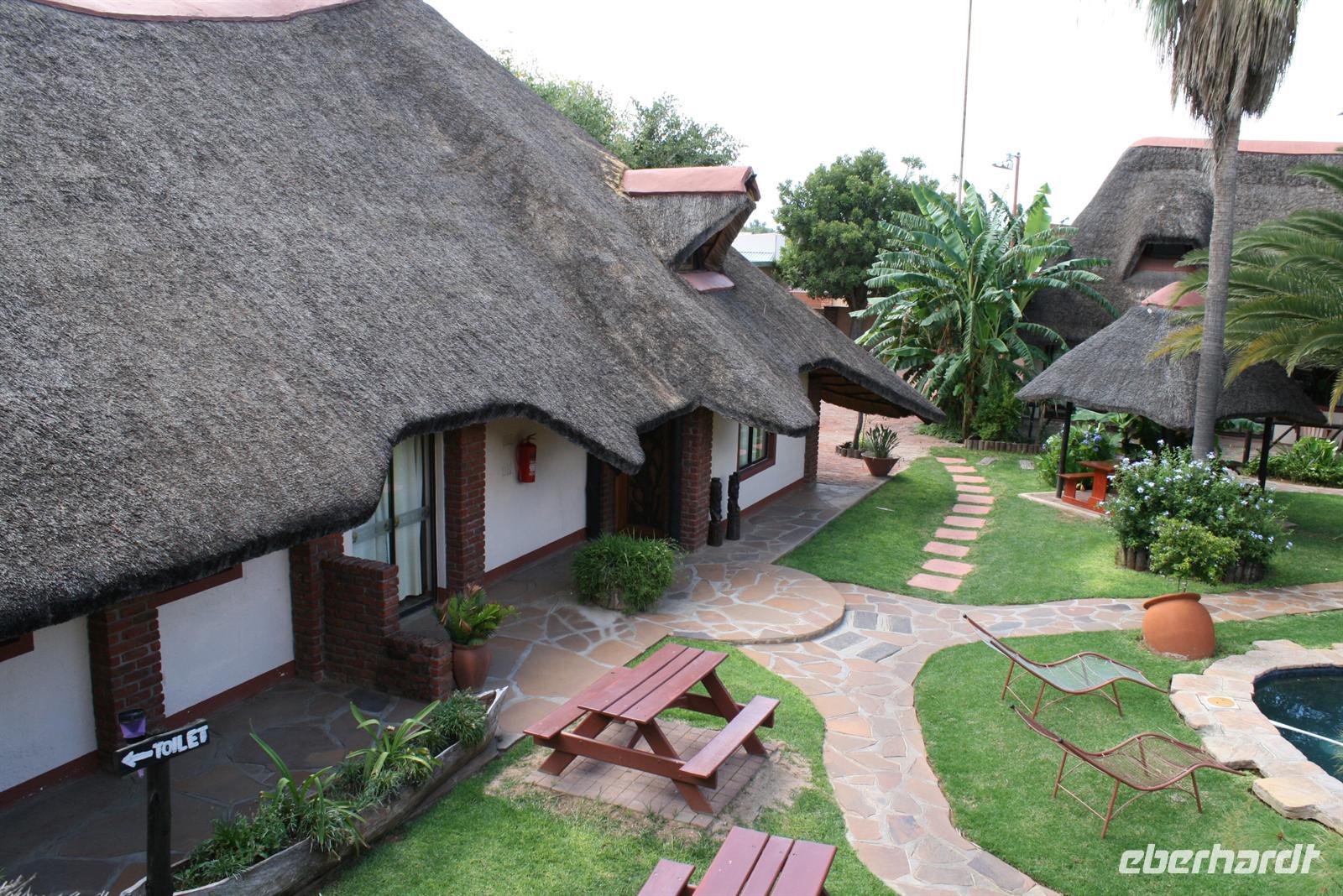 Namibias ewige Weite liegt vor uns. Von unserer Lodge in Opuwa fahren wir die uns bereits bekannte Strecke in Richtung Etosha zurück. Ganz nahe dem Etosha Nationalpark befindet sich unsere schöne Lodge, wo wir den Nachmittag wieder am Pool genießen können. Für heitere Stimmung sorgte das Hausmaskottchen - ein kleines Erdmännchen.