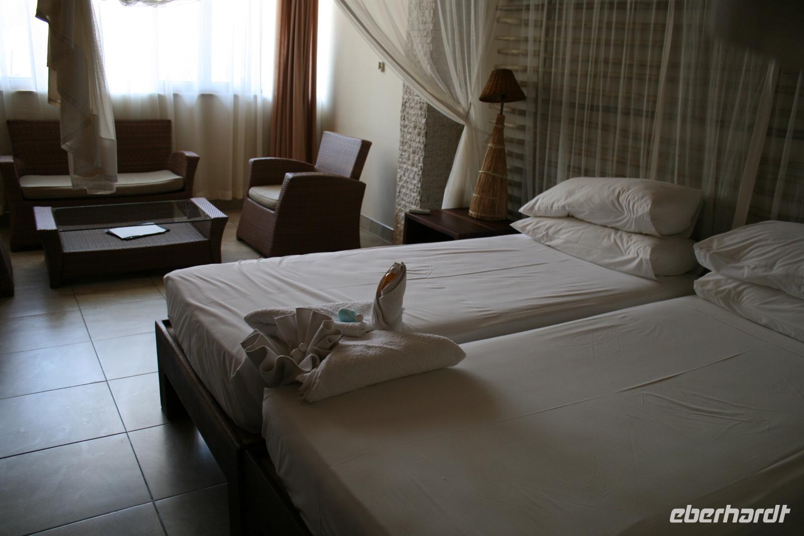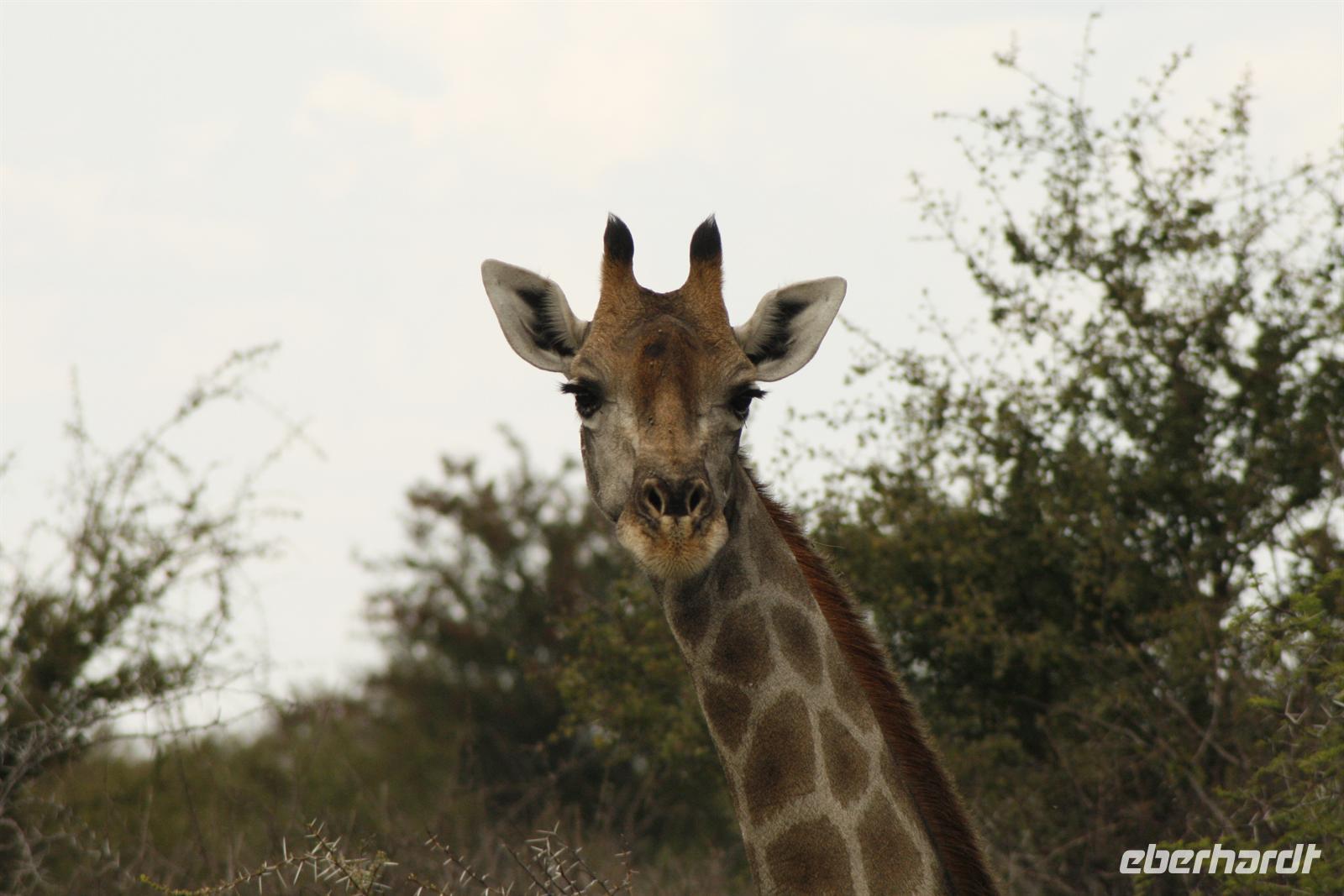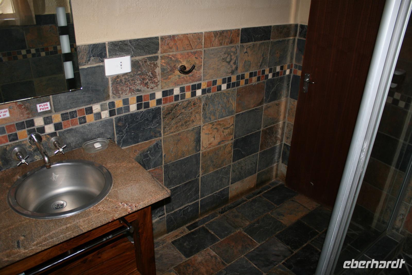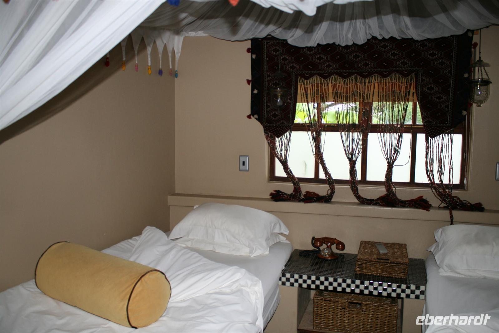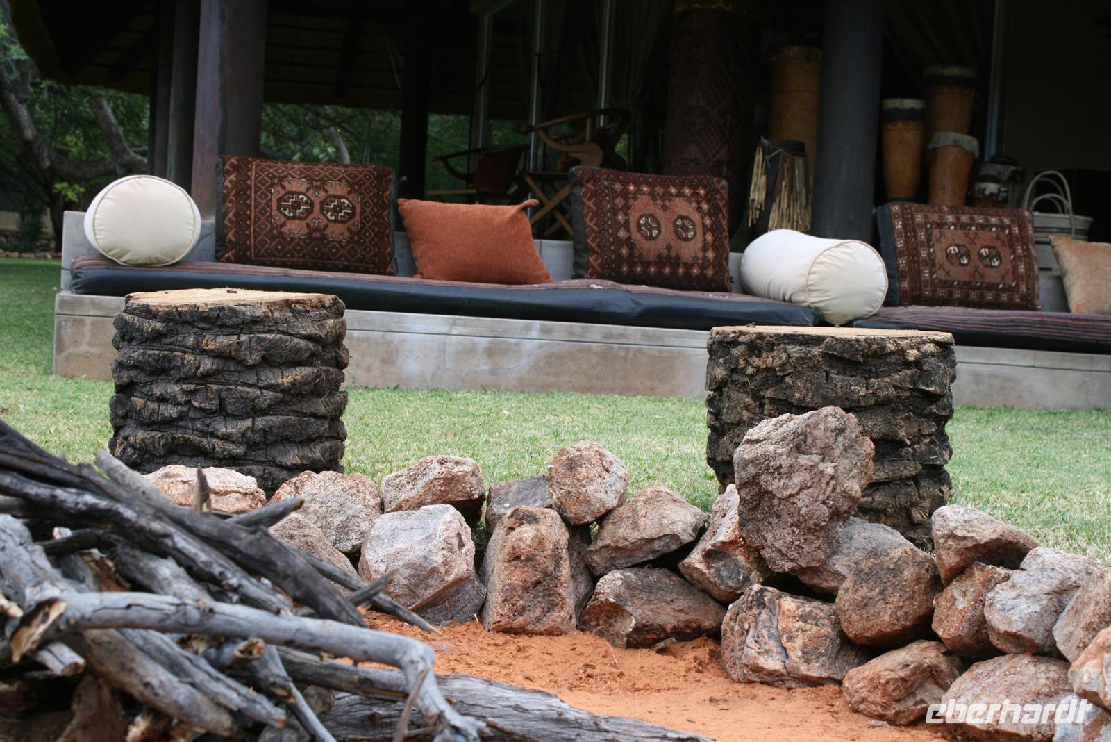 Noch ein letztes Mal versuchen wir ein paar der beeindruckenden Tiere des Etosha Nationalparks zu Gesicht zu bekommen. Und wir haben auch an diesem Tag außerordentliches Glück. Schon nach wenigen Minuten Fahrt in Richtung Norden entdeckten wir Giraffen im Gebüsch. Am nächsten Wasserloch zeigte sich ein Tier, dann in voller Größe. Obwohl es hieß alle Elefanten währen gerade ausgeflogen, entdeckten unser Wildsafariexperte Nico einen frischen Elefantenfussabdruck und abgeknickten Bäume. Nun die Hoffnung stirbt zu letzt, so begegneten wir zwei jungen Bullen mitten im dichten Gebüsch links und rechts der Strasse. Beide waren aktiv dabei zu fressen und zu baden. Im Großen und Ganzen drei gelungene Tage mit vielen Eindrücken und riesigem Glück (man könnte es auch den sechsten Sinn von Nico verdanken!) so viele verschiedene und teilweise auch seltene Tiere in der freien Natur zu beobachten. Nur einige Kilometer vom Etosha Nationalpark entfernt liegt die liebevoll gestaltete „!Uris Safari Lodge", wo wir mit Paukenschlägen empfangen werden. Den Nachmittag konnten wir uns am Pool oder in der schöngestalteten Anlage vertreiben, bevor man uns zum eleganten Abendtisch bat.