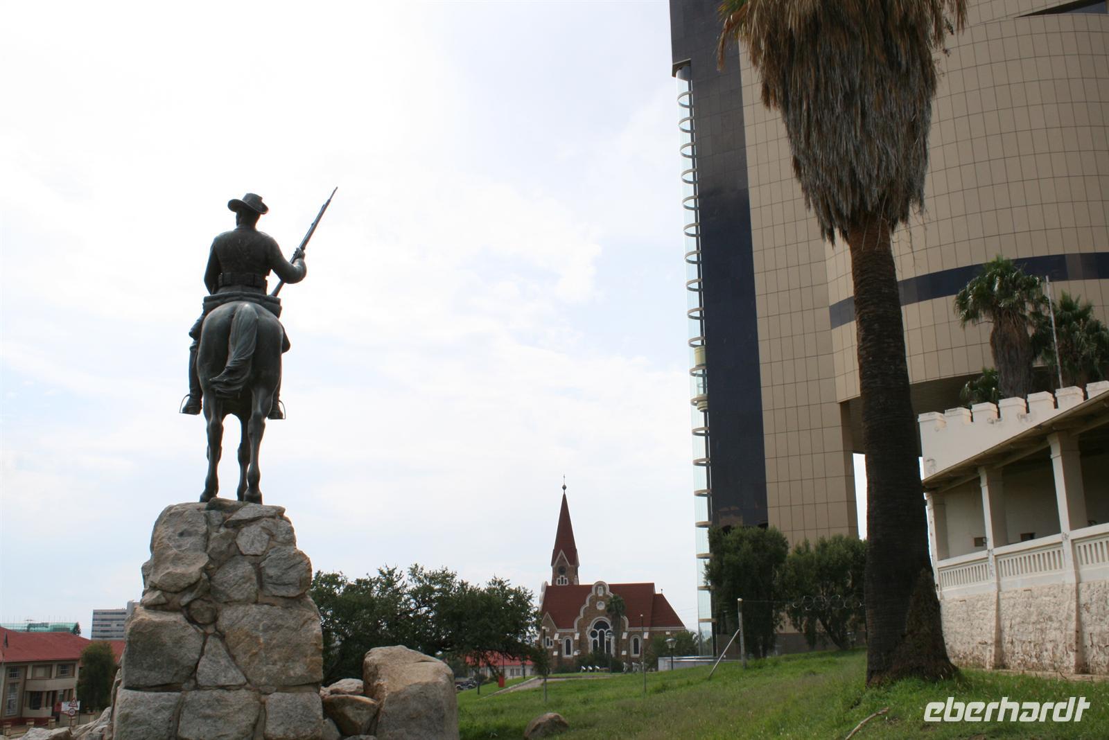 Unser vorletzter Tag ist angebrochen und wir fahren von Otjiwarongo nach Windhoek. In Windhoek angekommen ging die Fahrt durch die Townships Katatura, Soweto und ein wildes Bauviertel. Am Rand der Stadt befanden sich auch "Slums" mit Wellblechhütten, teils sogar nur aus Pappe oder Sperrholz. Wir halten an der "Alte Feste" und der "Christuskirche". Die ganzen alten Gebäude stammen unverkennbar aus der deutschen Kolonialzeit, die Alte Feste ist dabei das älteste Gebäude (Baubeginn 1890) und gilt als Grundstein der Stadtgründung Windhoeks und beherbergt heute das Nationalmuseum Namibias. Bevor wir bei etwas Freizeit die Stadt besichtigen, fahren wir in das Hotel um einzuchecken. Am Abend treffen wir uns zu einem letzten Abendessen im Hotelrestaurant und zogen später in die Bar um.