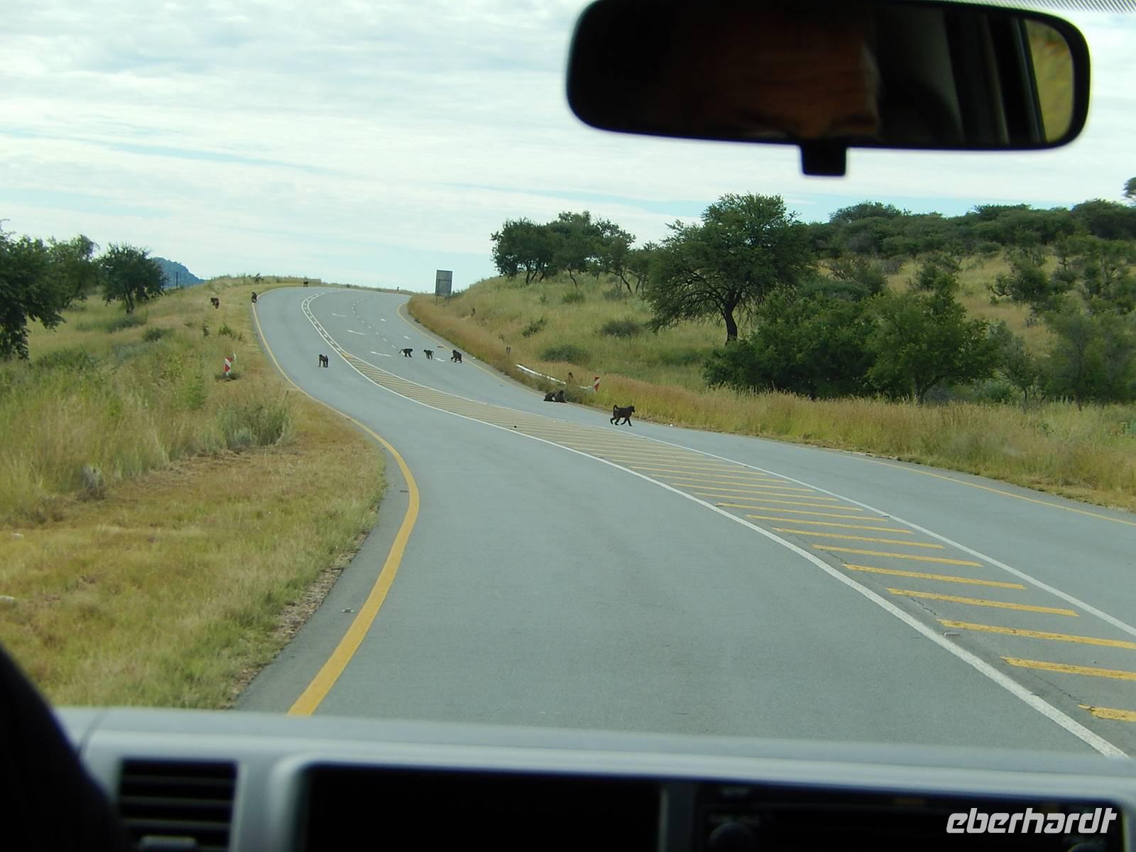 Endlich beginnt die lang ersehnte Traumreise nach Namibia! In einer kleinen, feinen Gruppe von nur 7 Personen plus Reisebegleitung fliegen wir über München und Johannesburg nach Windhoek. Schon aus der Luft bekommen wir einen Eindruck von der endlosen Weite der Savanne. Es ist das Ende der Regenzeit und damit ist die Landschaft relativ grün. Am Flughafen nimmt uns unser örtlicher Reiseleiter Klaus gut gelaunt in Empfang. Auf der Fahrt in die namibische Hauptstadt zeigt sich am Straßenrand schon unser Begrüßungskomitee, eine Horde Paviane - der erste Glückstreffer. Heute ist gutes Wetter für die Namibier, denn es regnet. Wir erkunden daher im Namibia Crafts Center eine kleine Diamanten-Manufaktur und können in den Shops nach Kunsthandwerk stöbern. Danach fahren wir vorbei am Tintenpalast, dem heutigen Parlamentsgebäude, zum Office of the Prime Minister. Wir dürfen sogar hinein und entdecken eine Ausstellung verschiedener Kunstwerke. Anhand zweier großer Wandgemälde fasst Klaus die wechselhafte Geschichte Namibias zusammen. Das Wahrzeichen von Windhoek ist die 1910 erbaute Chistuskirche. Von hier kann man fast die ganze Stadt überblicken. Auffällig sind sofort die vielen deutschen Straßennamen und es wird tatsächlich auch recht häufig Deutsch gesprochen. Bisher fühlt es sich noch nicht sehr afrikanisch an, aber das wird sicher noch kommen...