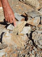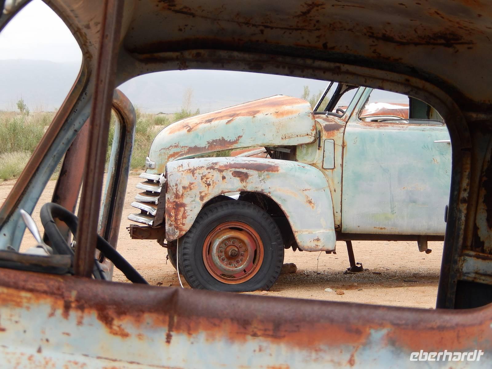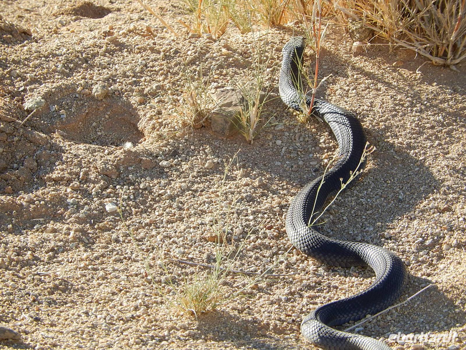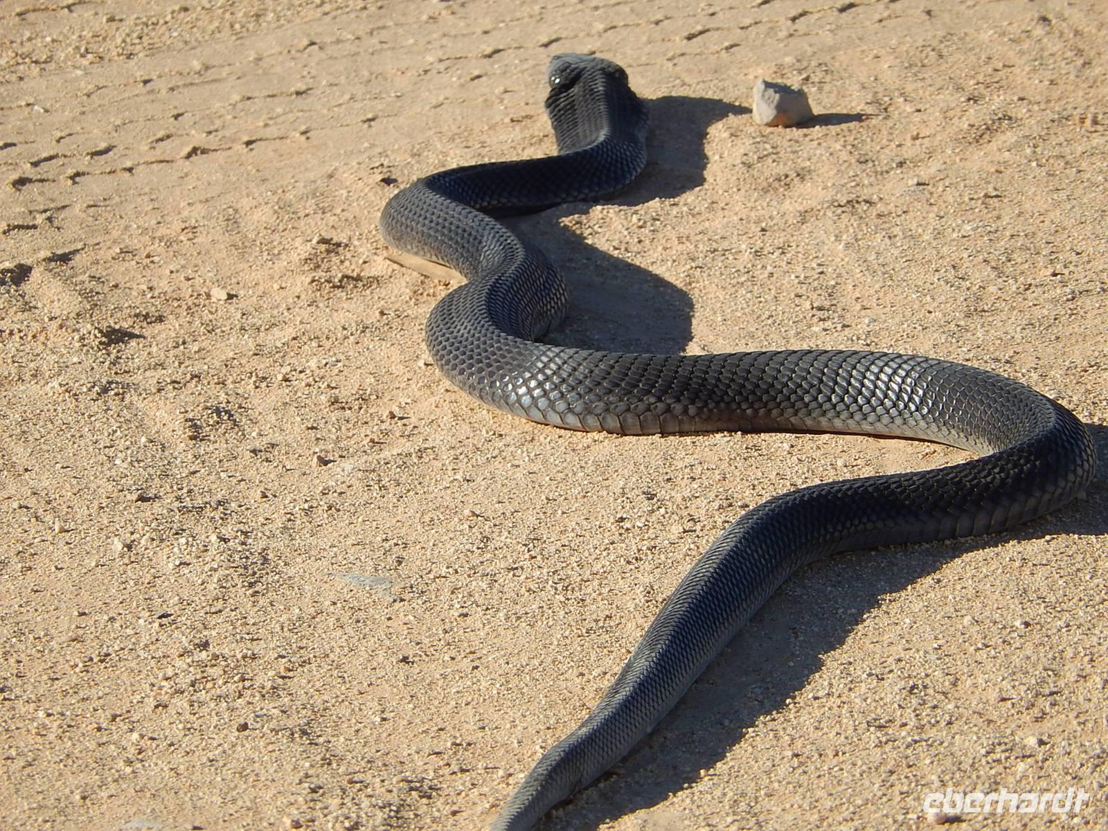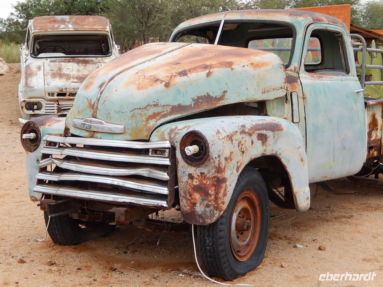 Auch das Frühstück im Canyon Village lässt keine Wünsche offen, so fällt es uns schwer, die zauberhafte Lodge schon zu verlassen... doch heute erwarten uns - und auch unseren Reiseleiter Klaus - ganz neue Wege und Eindrücke. Unser erstes Highlight am Wegesrand ist ein prächtiges Exemplar einer Schwarzen Kobra - ab jetzt gehen wir nur noch besonders achtsam durch die Büsche! Wir fahren durch eine trockene Landschaft aus verschieden farbigen Felsen und Sand, wo ein alter, verrosteter Chevrolet ein schönes Fotomotiv gibt. In Aussenkehr erreichen wir den südlichsten Punkt unserer Reise. Wir befinden uns am Oranje-Fluss, der die Grenze nach Südafrika bildet. Der Fluss zieht sich wie ein grünes Band durch die sonst so trockene Landschaft. Ab jetzt geht es weiter nordwärts, am Rande des ehemaligen Diamanten-Sperrgebietes entlang bis nach Aus. Heute ist in Namibia Nationalfeiertag, große Feierlichkeiten sehen wir jedoch nicht. Am Nachmittag checken wir in der Klein Aus Vista Lodge ein. Vor dem Abendessen machen wir noch einen kurzen Ausflug zum POW-Camp (Prisoner-of-war Camp) und dem Friedhof. An das Kriegsgefangenenlager Aus, wo die Kaiserliche Schutztruppe für Deutsch-Südwestafrika 1915-1919 untergebracht war, erinnert heute nur noch ein Gedenkstein.