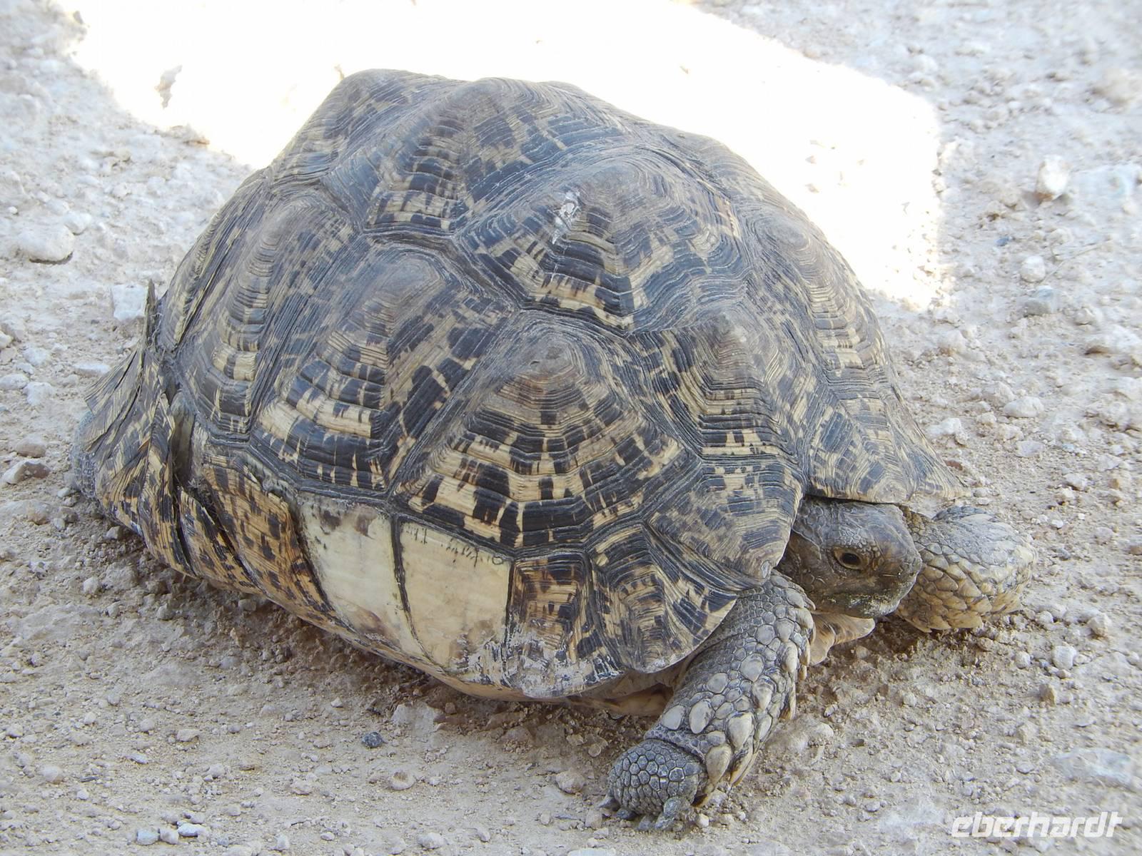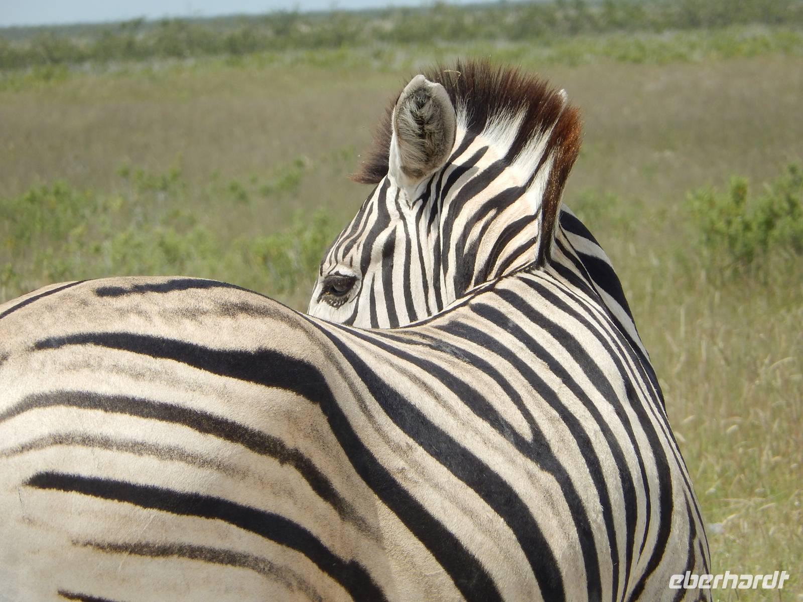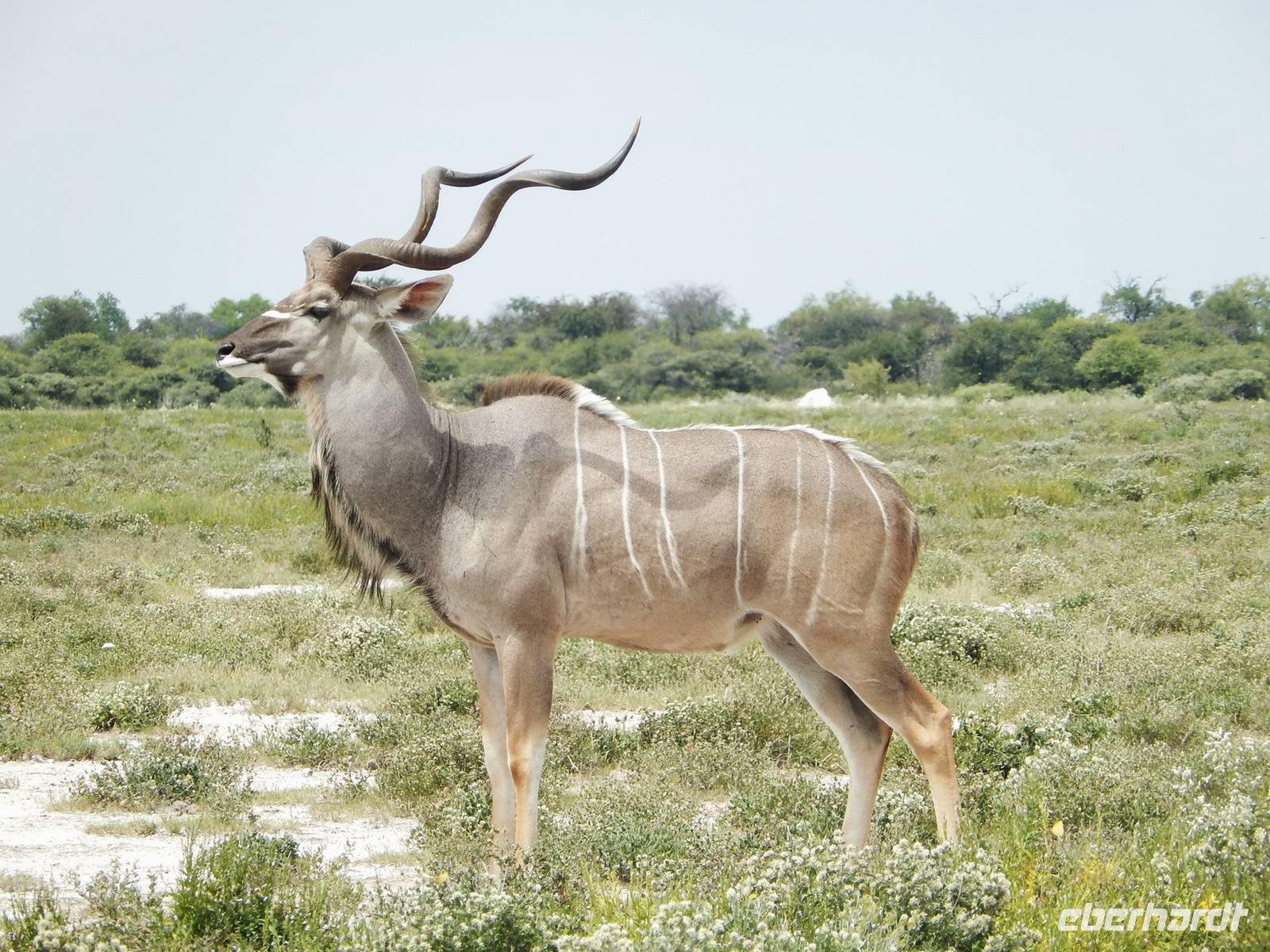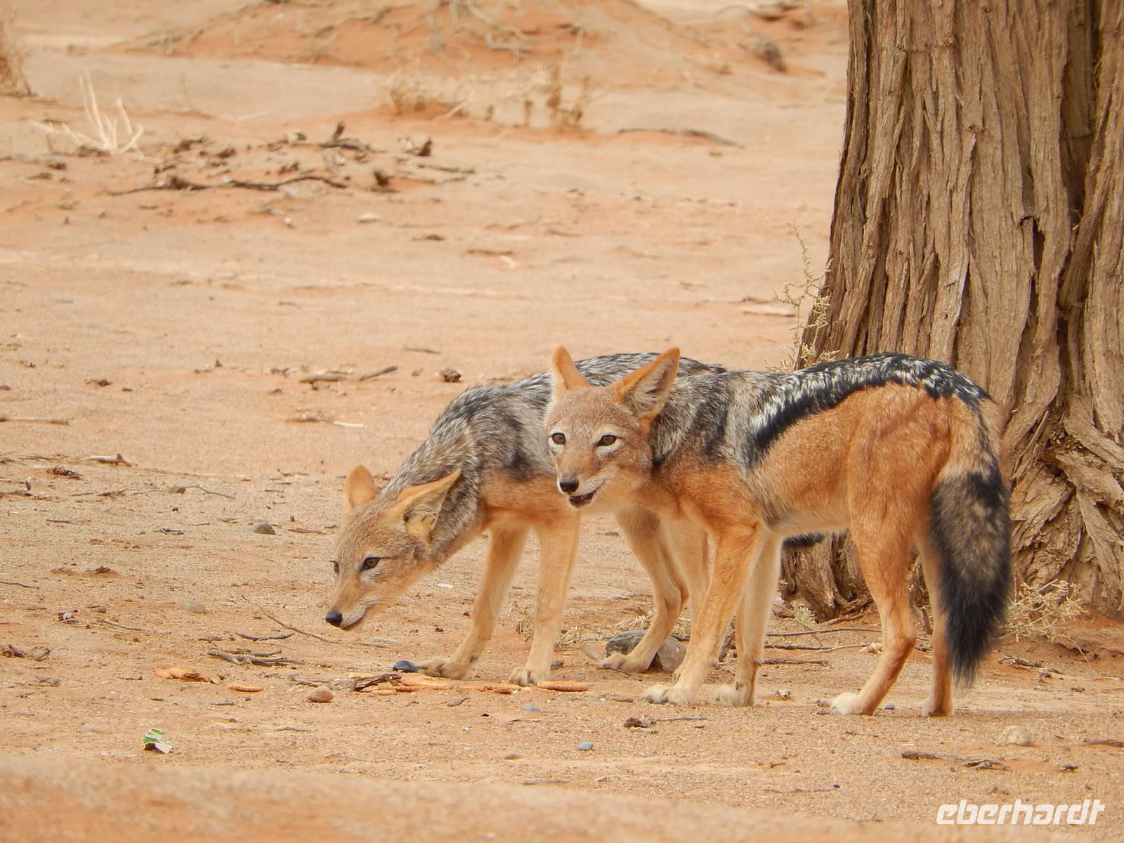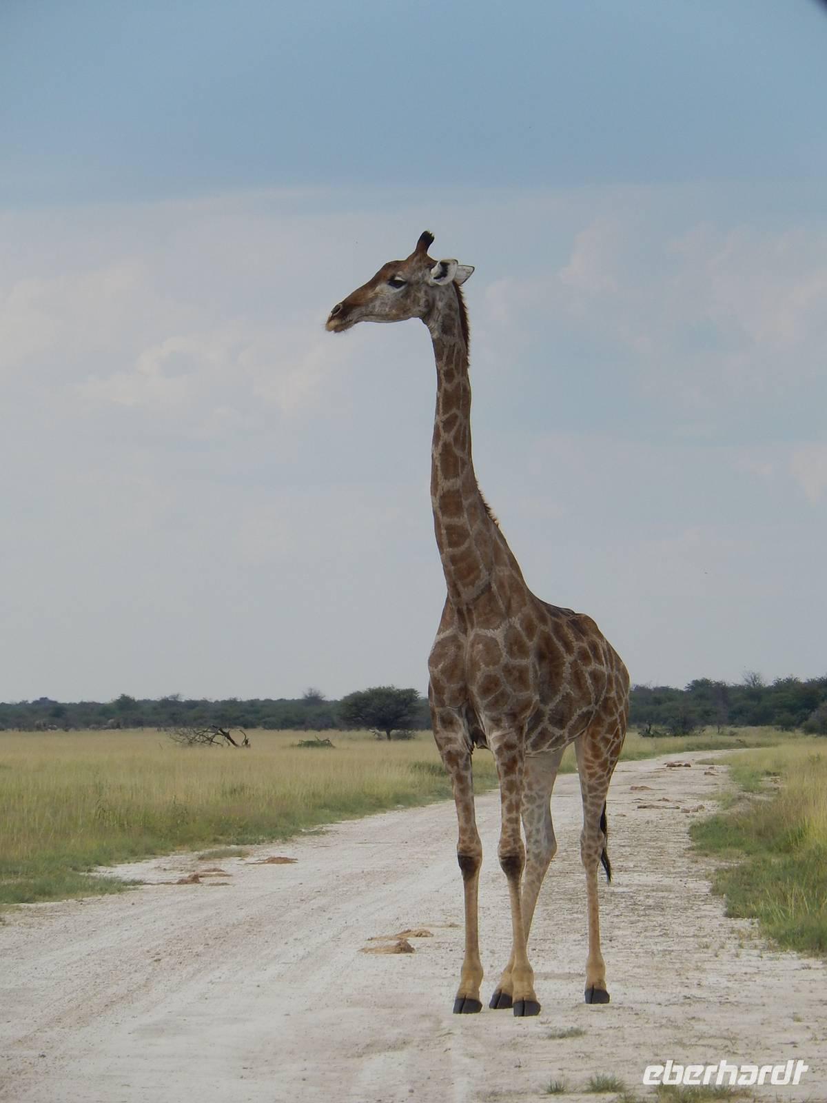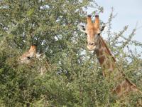 Nach den Erfolgserlebnissen des gestrigen Tages, starten wir heute erwartungsvoll auf unsere morgendliche Safari im offenen Jeep. Pünktlich zum Sonnenaufgang erreichen wir das Gate zum Park und halten die Augen offen. Leider haben wir nur „magere Beute" und sehen nicht einen Vertreter der berühmten Big Five. Richtig fette Beute haben dagegen die Weißrückengeier gemacht, die die sich an einem gerissenen Zebra zu schaffen machen. Dennoch erfreuen wir uns an der Schönheit der Springböcke, Zebras und Strauße. Die hübsche Gabelracke und die Bienenfresser stehen ebenfalls für uns Porträt. Kurz vor der Ausfahrt des Parks sehen wir noch die zweitkleinste Antilope Namibias, den Steinbock, und ein Warzenschwein, das schnell im Gebüsch verschwindet. Nach einer Mittagspause im Camp probieren wir noch einmal unser Glück. Wir bekommen eine Riesentrappe, die Leopardenschildkröte, Erdmännchen, Kudus und eine Herde Gnus vor die Linse. Und dann bekommen wir einen wahrhaft heißen Tipp - am Wasserloch Olifantsbad sollen drei Löwen zu sehen sein. Wir können unseren Augen kaum trauen - aus nächster Nähe können wir die majestätischen Katzen in Ruhe und sogar bei der Paarung beobachten! Was haben wir für ein Glück! Auf dem Rückweg sehen wir noch einen Elefanten und eine Herde Impalas.