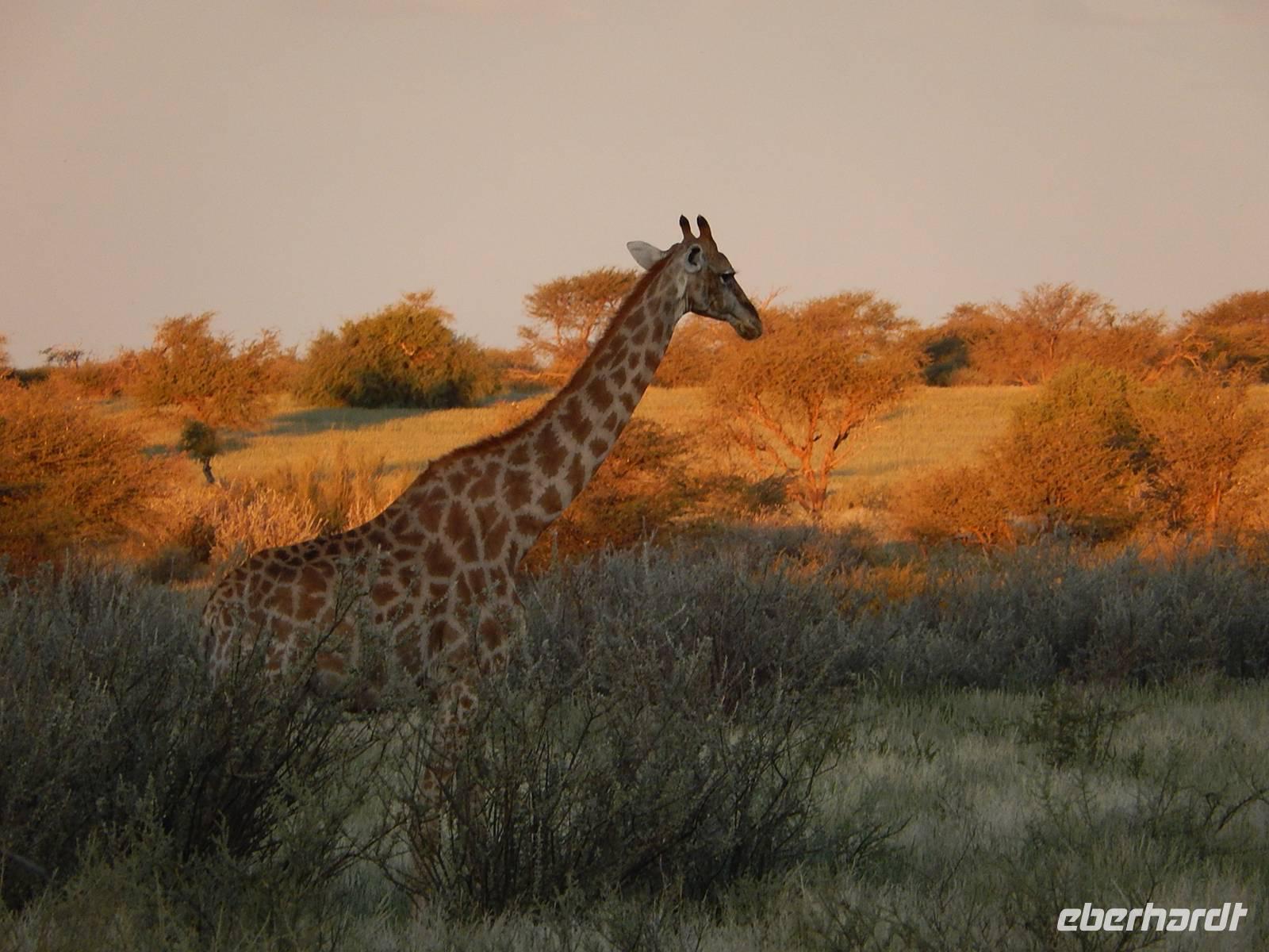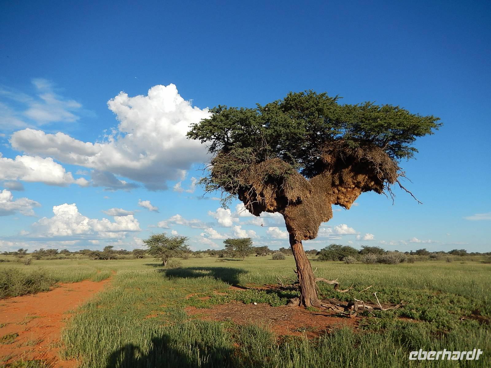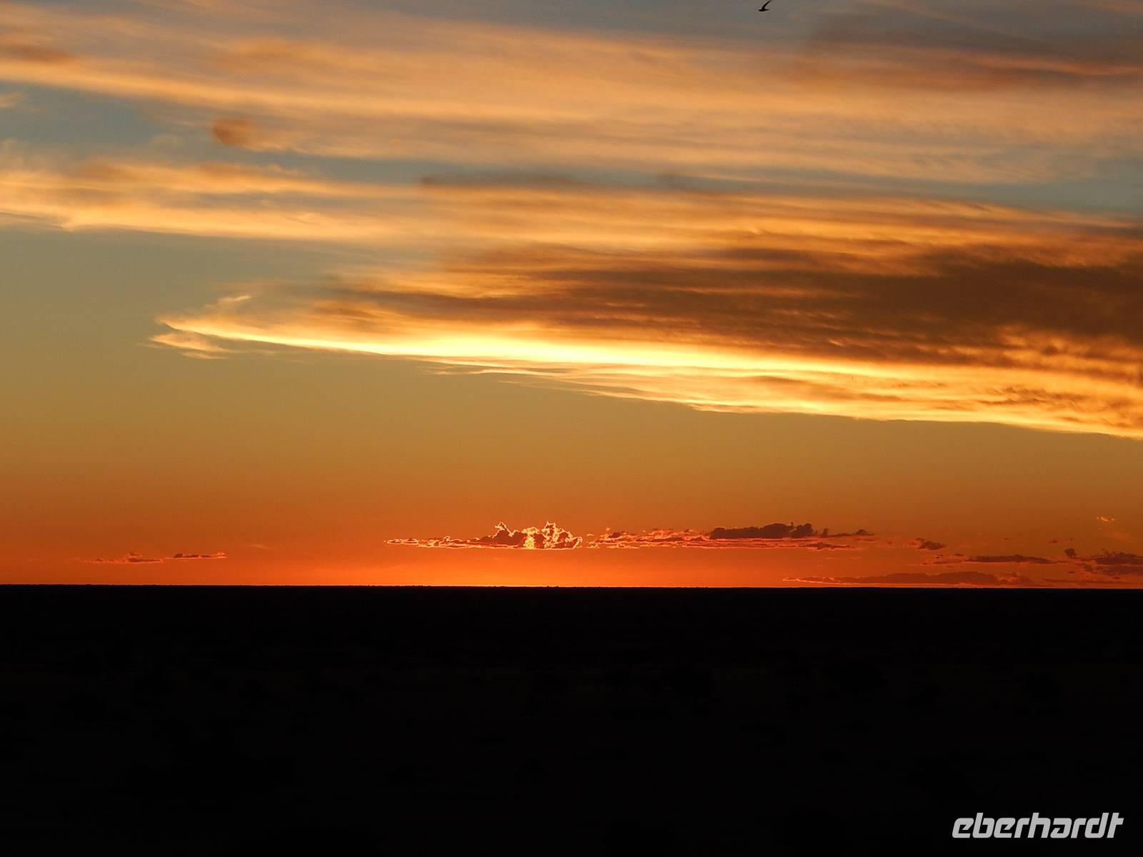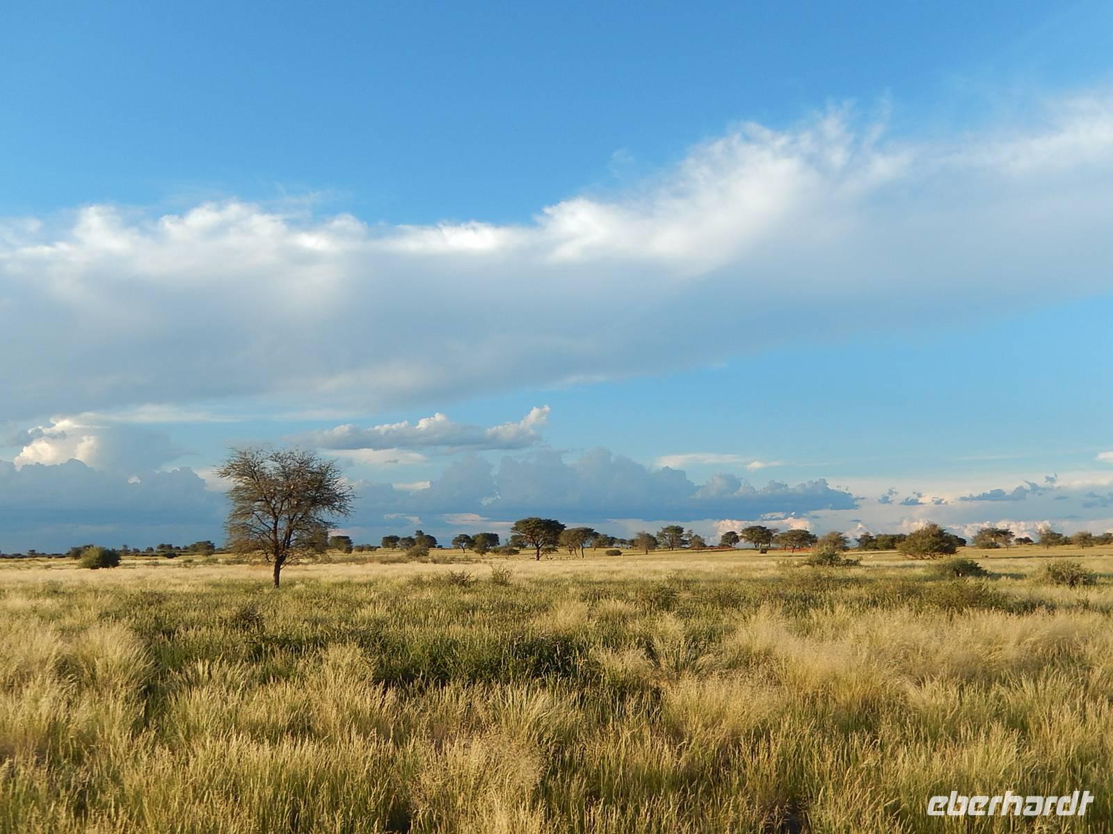 Wir lassen die Hauptstadt Windhoek hinter uns und fahren Richtung Süden. Die Straße führt (fast) schnurgerade durch die Savanne. In Reoboth (ehemals ein Staat im Staat) drehen wir eine Runde durch den Ort, um zu sehen, wie die Menschen hier leben und besonders wie sie aussehen. Wir blicken in farbige Gesichter mit hellen Augen - hier leben die Baster, die Nachfahren der „Hottentotten", der Kinder von Holländern und afrikanischen Khoisan. Beim 23. Breitengrad überqueren wir den südlichen Wendekreis, den „Tropic of Capricorn" - das ist auf jeden Fall ein Foto wert. Fortan bewegen wir uns überwiegend auf Schotterpiste und erreichen am Nachmittag die reizende Auob Lodge - JWD, wie man so schön sagt. Hier fühlt man sich endlich wie in Afrika. Am Nachmittag begeben wir uns per Jeep auf eine Game Drive auf privates Farmgelände - heja Safari! Die Landschaft ist bedeckt mit zartgrünen Gräsern, einigen Bäumen und Sträuchern. Zwischendurch leuchtet der rote Sand der Kalahari im Abendlicht und wir machen Bekanntschaft mit den ersten tierischen Bewohnern Namibias. Wir sehen Springböcke, Löffelhunde, Oryx, Strauße, Kudus und sogar Giraffen. In einem Baum hängt ein besonders schönes und großes Exemplar eines Siedelwebernestes, ein echtes „Mehrfamilienhaus". Pünktlich zum Sonnenuntergang erreichen wir den Aussichtspunkt und genießen einen Gin Tonic mit Blick in die weite Landschaft.