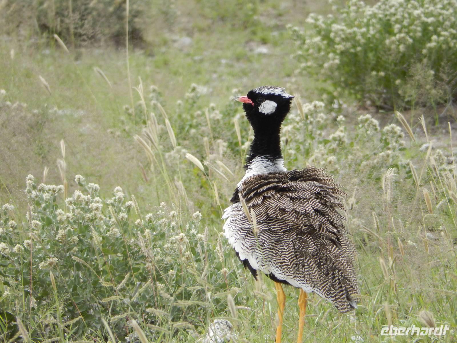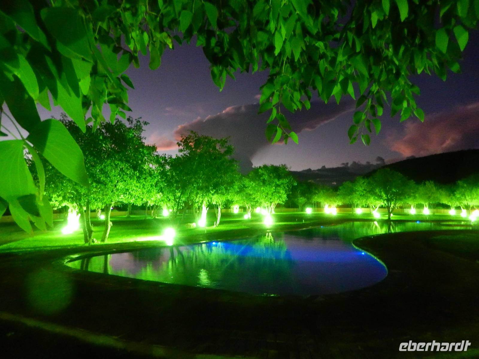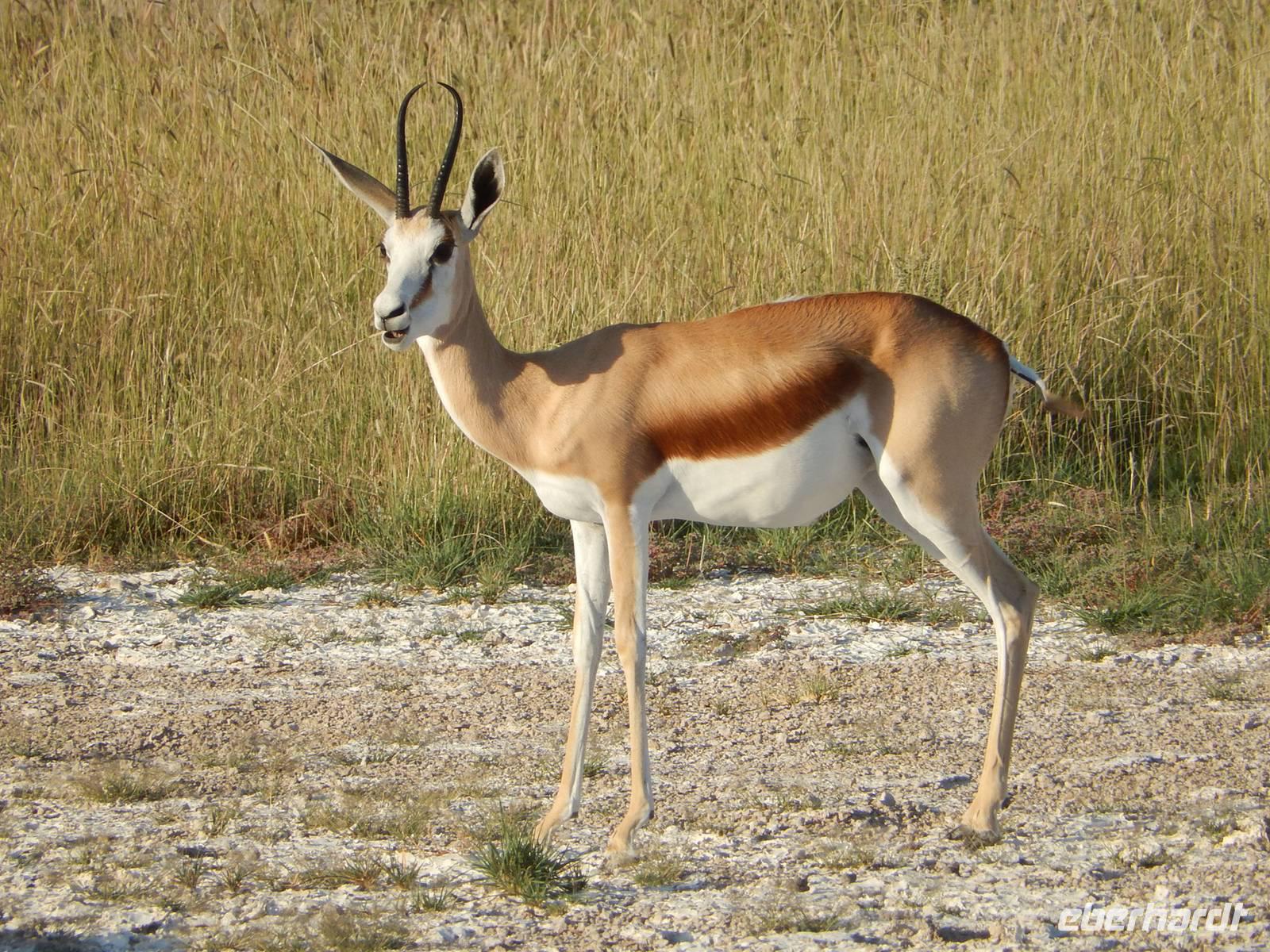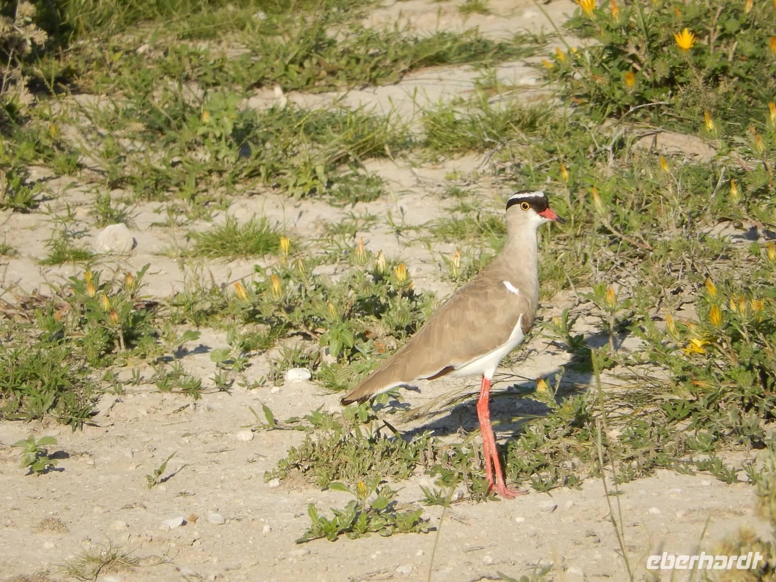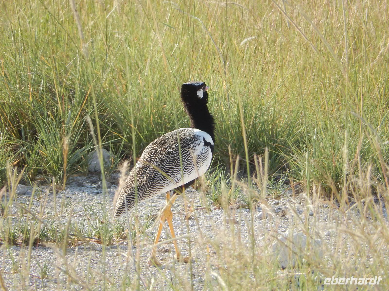 Auch dieser Tag steht im Zeichen der Pirsch im Etosha-Park, jedoch geben wir uns eher mit kleineren Dingen zufrieden: Erdmännchen, Gackeltrappen, Kronenkiebitze, eine Straußen-Familie, Zebras und jede Menge Springböcke, die lustig durch die Landschaft hüpfen. Nach dem Abendessen wollen wir noch einen Blick auf das nächtlich beleuchtete Wasserloch von Okaukuejo werfen, aber weit und breit ist kein Tier zu sehen. Dann träumen wir wenigstens von Simba, Pumpa und seinen tierischen Freunden.