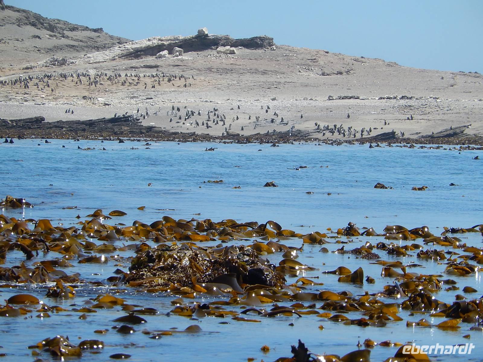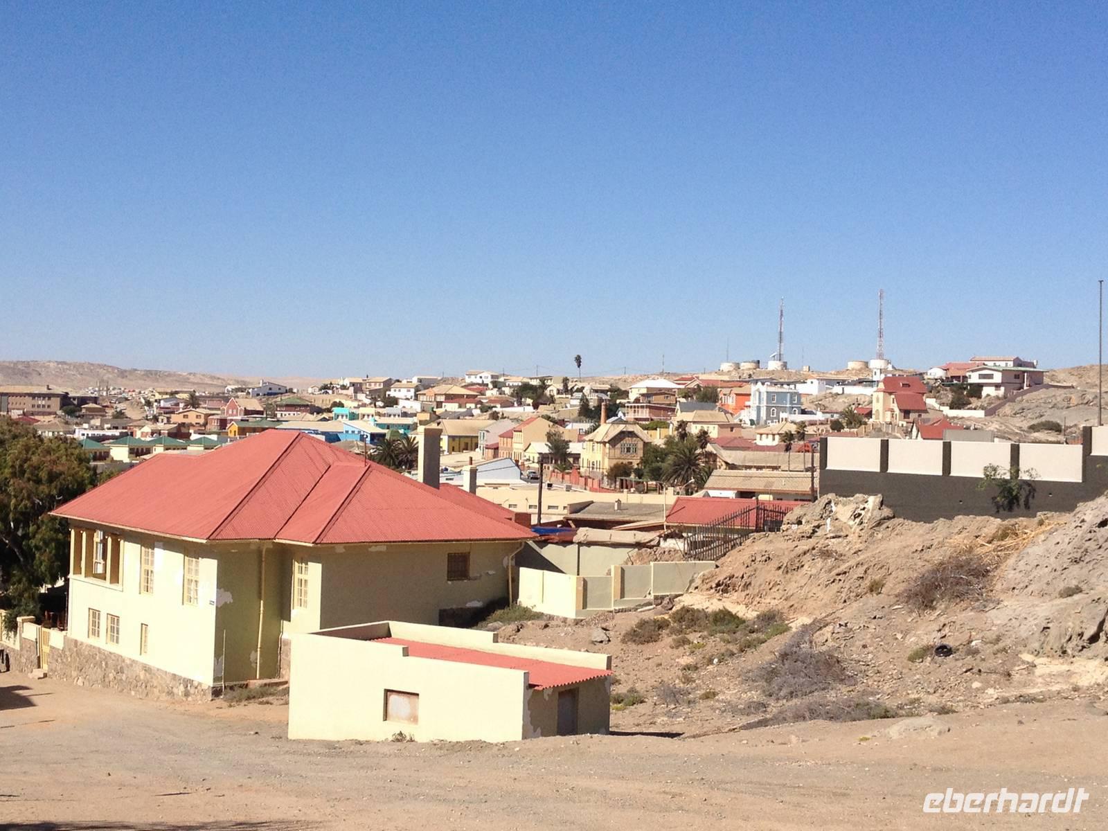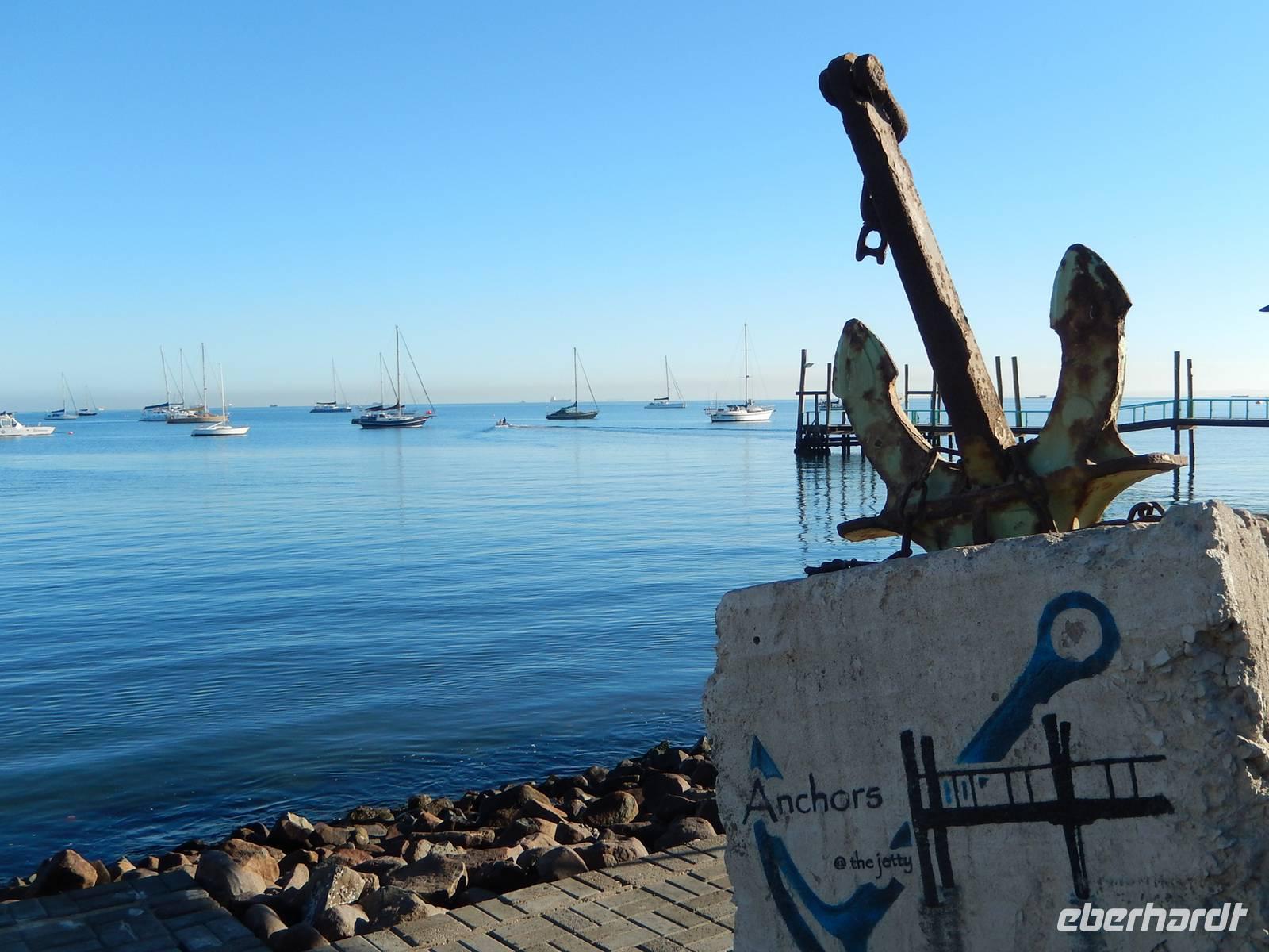 Eine abwechslungsreiche Fahrt nach Swakopmund steht uns heute bevor. Unseren ersten Stopp legen wir in Solitaire ein, wo rostige Autos, Motorräder eine Zapfsäule und andere ausrangierte Gebrauchsgegenstände fotogen arrangiert wurden. Bald darauf überqueren wir zum zweiten Mal den südlichen Wendekreis und kommen in die Täler des Gaub- und Kuiseb-Flusses, die zur Zeit sogar reichlich Wasser führen - das soll nur an ca. 30 Tagen im Jahr der Fall sein. Gleichzeitig hat der Regen das dunkelbraune, metamorphe Gestein mit einem lindgrünen Teppich überzogen. Danach wechselt das Landschaftsbild zu einer trockenen Steinwüste. Im Park sehen wir zart rosa blühende Hoodia-Pflanzen (ein afrikanisches Rezept für die schlanke Linie). Nach der Picknick-Pause unter einem Schatten spendenden Baum im Ganab-Camp erblicken wir in der Ferne sogar Berg-Zebras. Toll! Vorbei an der Bergkette Langer Heinrich, wo Uran abgebaut wird, befahren wir bald den Welwitscha Drive. Hier sehen wir die uralten Welwitscha-Pflanzen. Bis zum Horizont blicken wir nur auf eine trockene, hellsandige Wüste bis sich plötzlich die bizarre Mondlandschaft auftut. Mit vielen eindrucksvollen Bildern erreichen wir am späten Nachmittag die Küstenstadt Swakopmund.