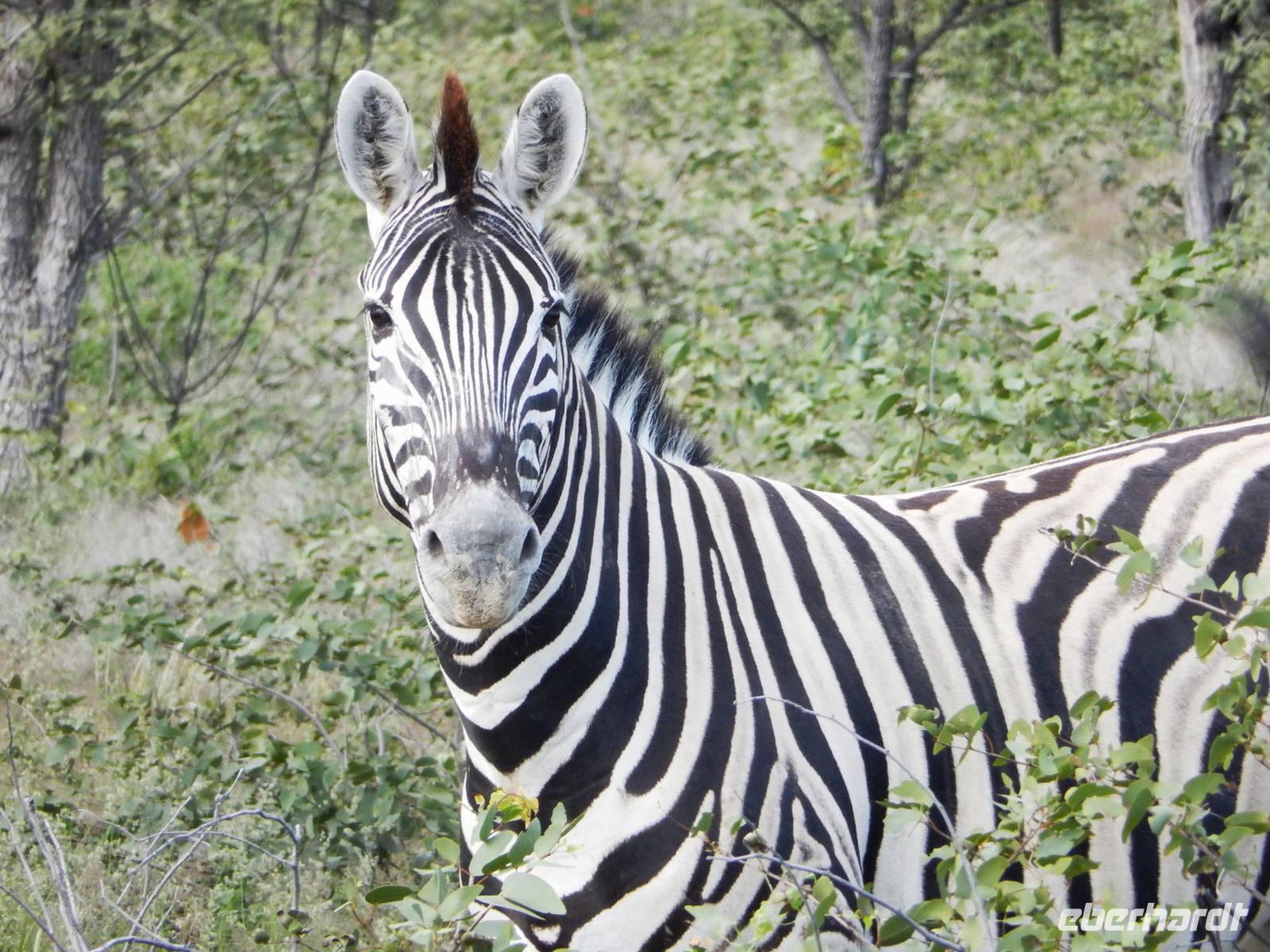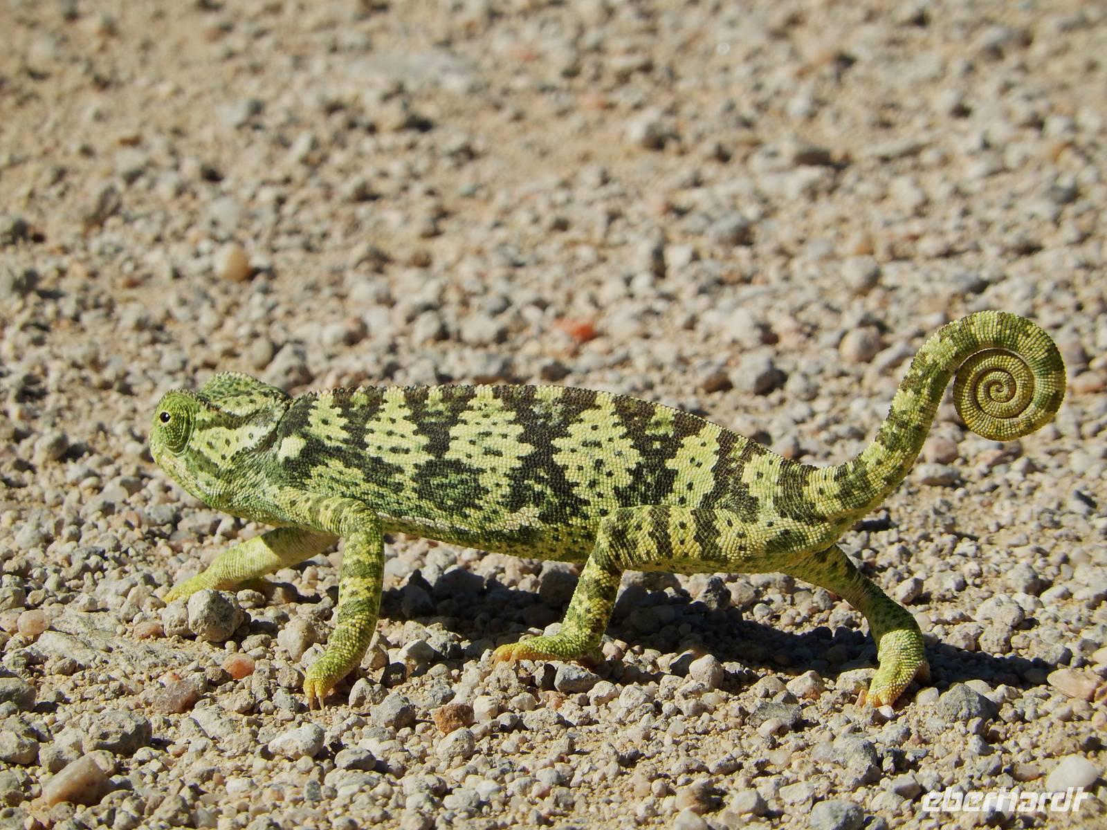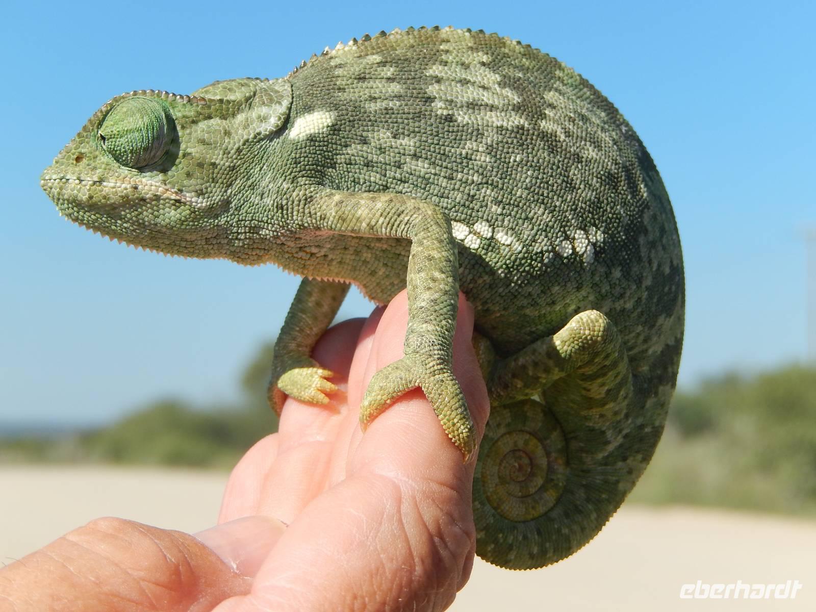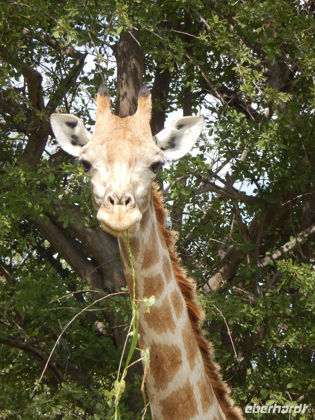 Begleitet von afrikanischen Klängen fahren wir durch die grüne Landschaft und halten Ausschau nach Elefanten, die hier vorkommen sollen. Da sich die großen Dickhäuter nicht zeigen, hat Klaus einen Blick für das Kleine: wir sehen einen Tausendfüßler, schauen uns ein Chamäleon näher an (und es uns) und eine kleine Leopardenschildkröte, die kaum größer als eine Streichholzschachtel ist. Schließlich sehen wir noch Giraffen am Straßenrand und einen ca. fünf Meter hohen, rot gefärbten Termitenhügel. Am Nachmittag beobachten wir noch das lebendige Treiben in Opuwo. Bei einem Bummel durch den Ort sehen wir ein buntes Völkergemisch aus Himba und Herero, überwiegend in ihrer traditionellen Kleidung - ein sehr authentischer und lebendiger Eindruck Afrikas. Das Opuwo Country Hotel liegt malerisch an einem Hang mit einem weiten Blick in die Landschaft. Zum Abendessen werden uns heute unter anderem fünf verschiedene Fleischspezialitäten gereicht: Springbock, Oryx, Elanantilope, Zebra und Giraffe. Guten Appetit!