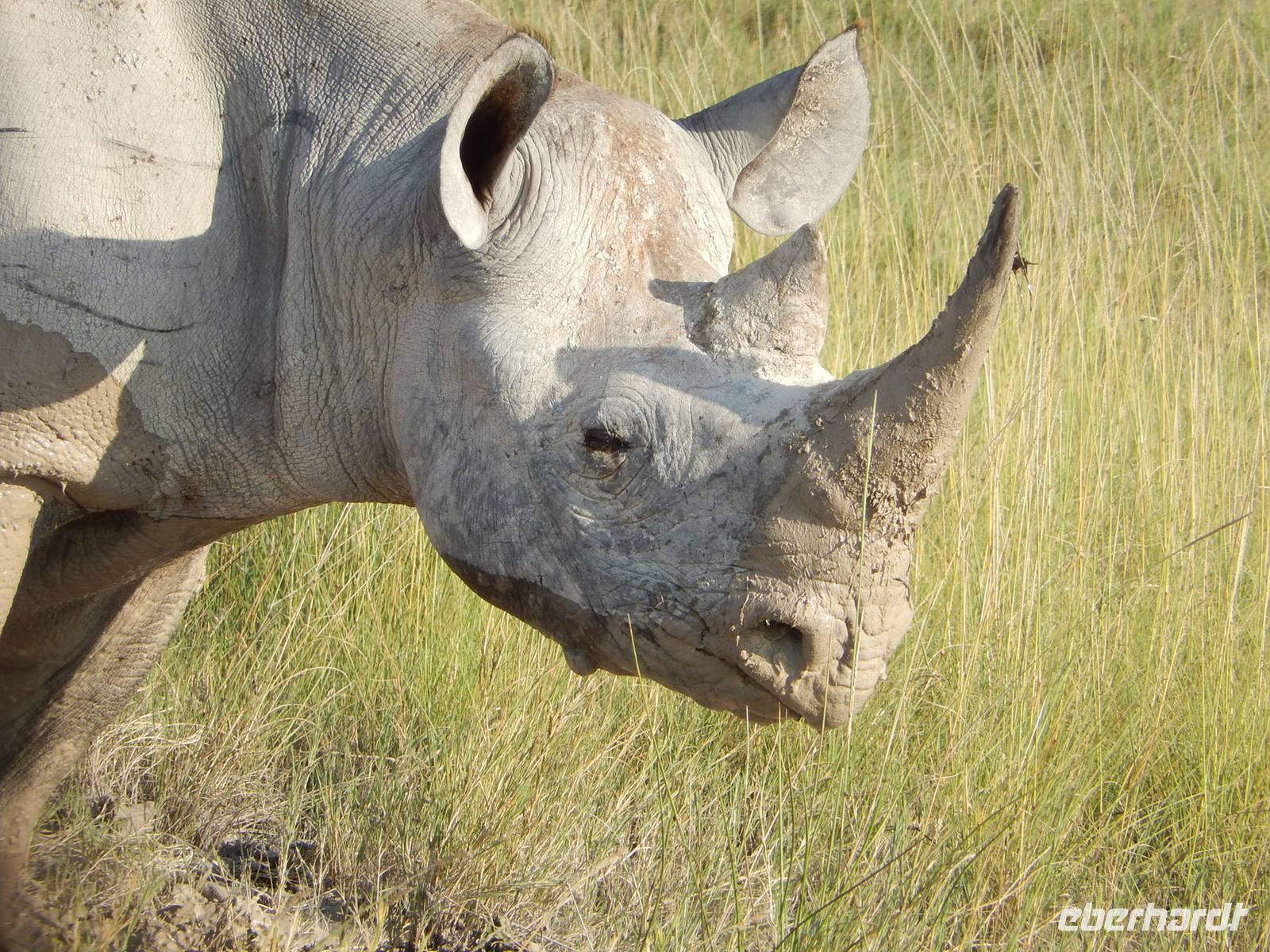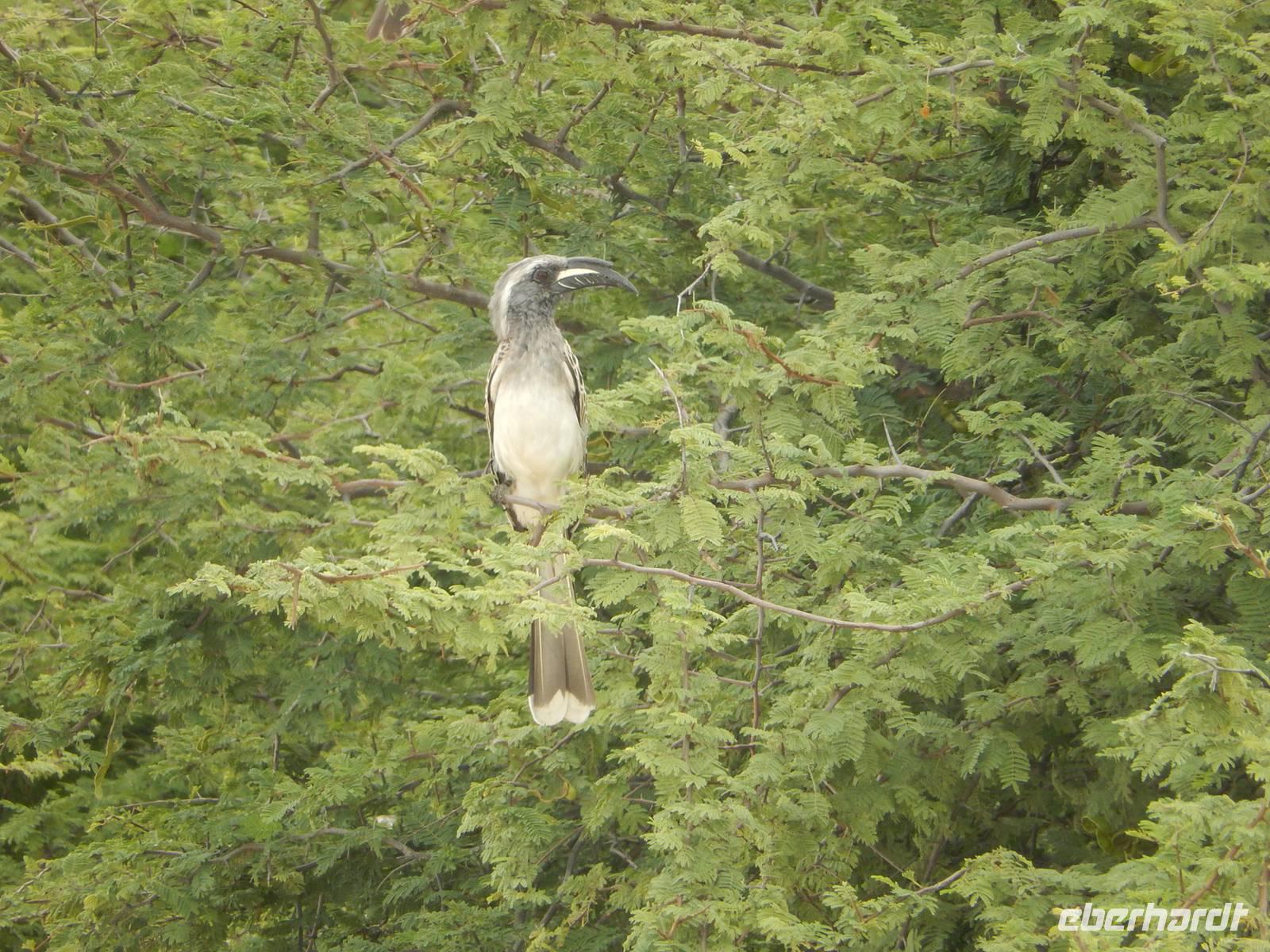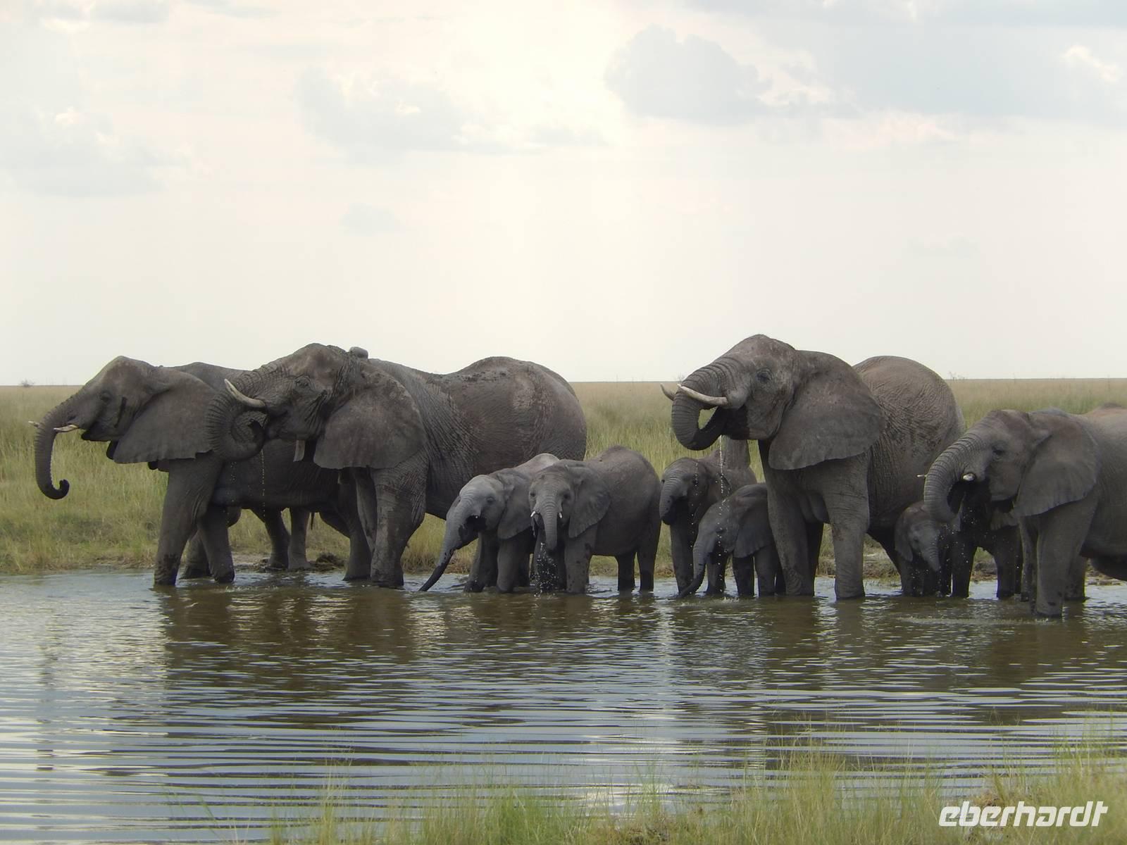 Noch einmal begeben wir uns auf Safari im Etosha-Nationalpark. Doch das Glück ist uns am Vormittag wieder nicht hold und wir sehen kaum mehr als einige Vögel in der weiten Landschaft. Nach einer Kaffeepause im Camp Halali und einem Fotostopp an der Etosha-Pfanne wird es endlich wieder wild - im Busch bewegen sich zwei Nashörner und mit ein bisschen Geduld können wir eines sogar aus nächster Nähe beobachten und fotografieren. Danach präsentieren sich noch ein stolzer Kudu und der Sekretär (samt Sekretärin ;-)). Im Fort Namutoni machen wir Mittagspause und probieren erneut unser Glück im Norden des Parks, wo wir anfangs die riesige Herde Elefanten sahen. Und tatsächlich tauchen die sanften Dickhäuter wieder in großer Anzahl auf und vergnügen sich vor unseren Augen am Wasserloch. Darüber hinaus begegnen uns noch einige Giraffen. Am Abend werden wir in der Uris Safari Lodge mit einem typisch namibischen Braai überrascht - im Garten ist für uns unter einem Marula-Baum liebevoll ein Tisch hergerichtet und es werden Spezialitäten frisch vom Grill serviert. Was für eine wunderbare Atmosphäre!