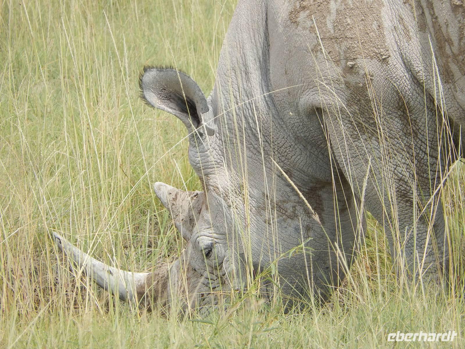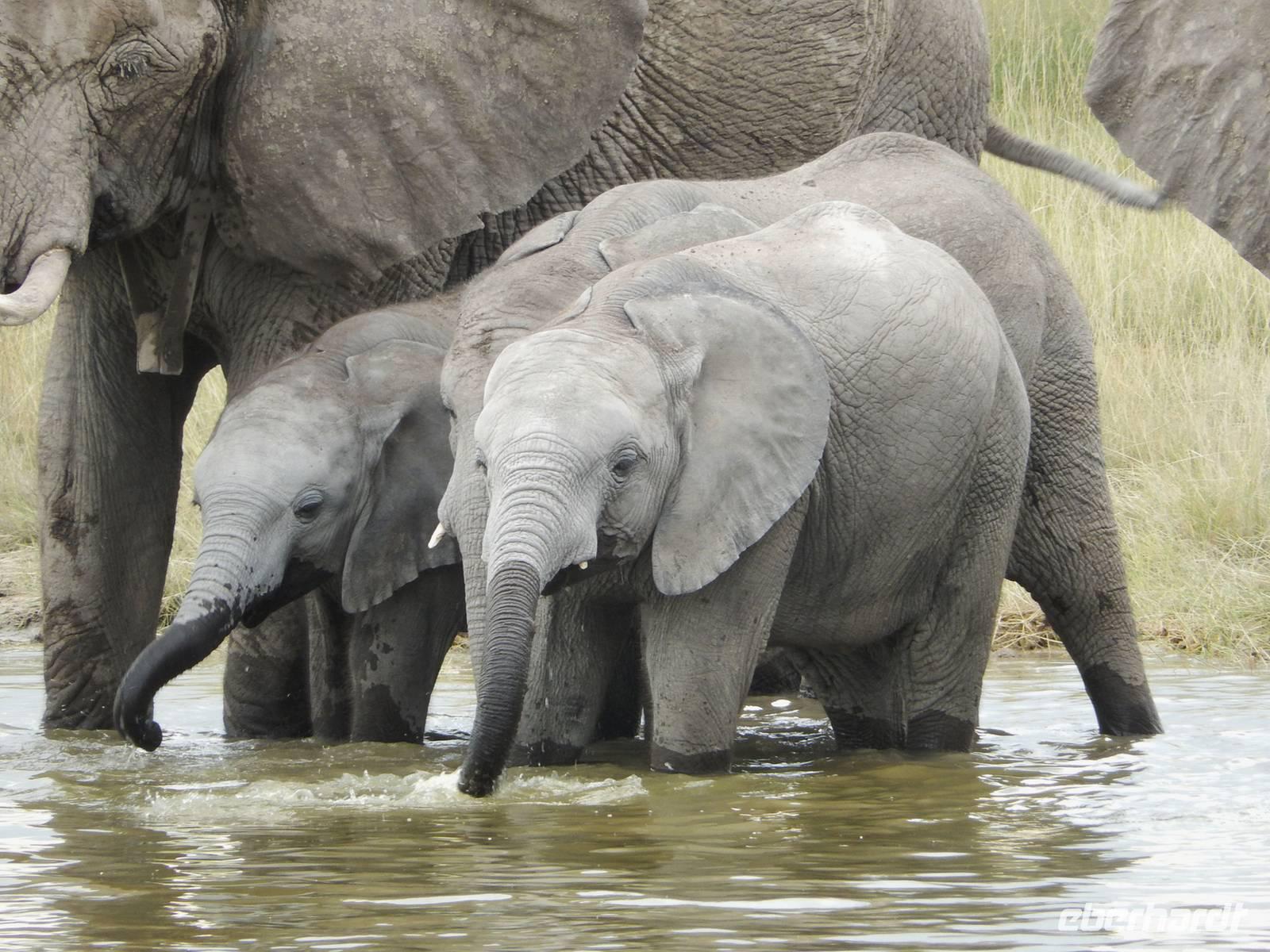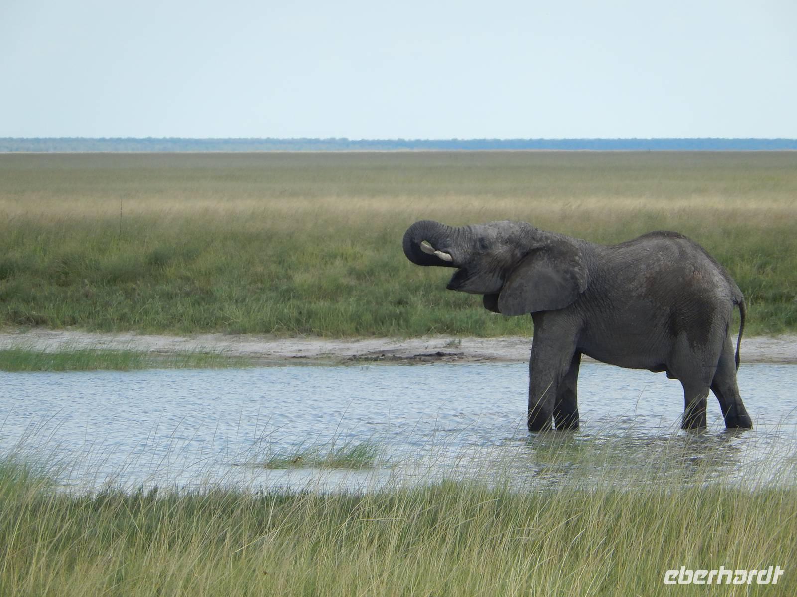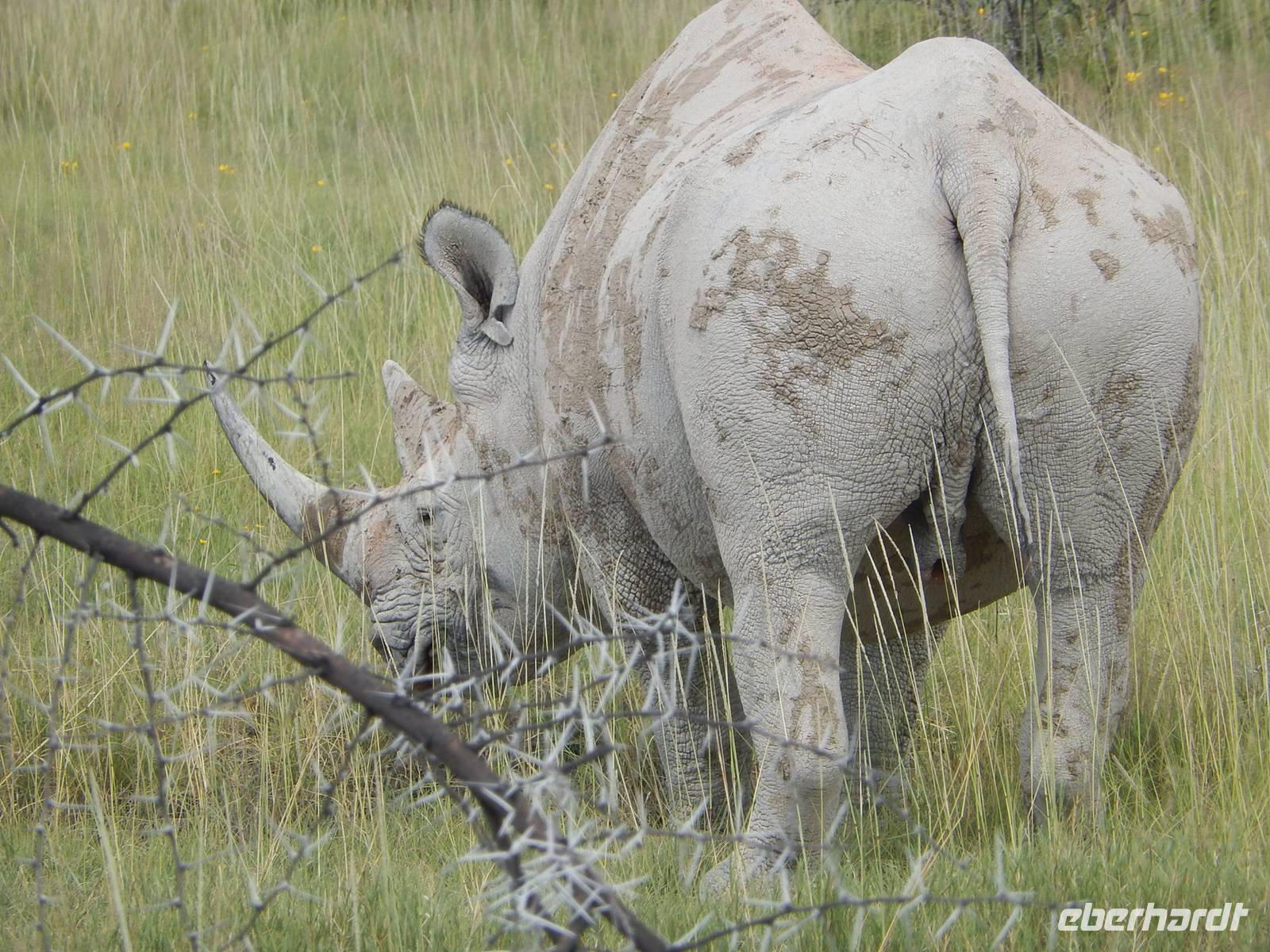 Noch einmal begeben wir uns auf Safari im Etosha-Nationalpark. Doch das Glück ist uns am Vormittag wieder nicht hold und wir sehen kaum mehr als einige Vögel in der weiten Landschaft. Nach einer Kaffeepause im Camp Halali und einem Fotostopp an der Etosha-Pfanne wird es endlich wieder wild - im Busch bewegen sich zwei Nashörner und mit ein bisschen Geduld können wir eines sogar aus nächster Nähe beobachten und fotografieren. Danach präsentieren sich noch ein stolzer Kudu und der Sekretär (samt Sekretärin ;-)). Im Fort Namutoni machen wir Mittagspause und probieren erneut unser Glück im Norden des Parks, wo wir anfangs die riesige Herde Elefanten sahen. Und tatsächlich tauchen die sanften Dickhäuter wieder in großer Anzahl auf und vergnügen sich vor unseren Augen am Wasserloch. Darüber hinaus begegnen uns noch einige Giraffen. Am Abend werden wir in der Uris Safari Lodge mit einem typisch namibischen Braai überrascht - im Garten ist für uns unter einem Marula-Baum liebevoll ein Tisch hergerichtet und es werden Spezialitäten frisch vom Grill serviert. Was für eine wunderbare Atmosphäre!