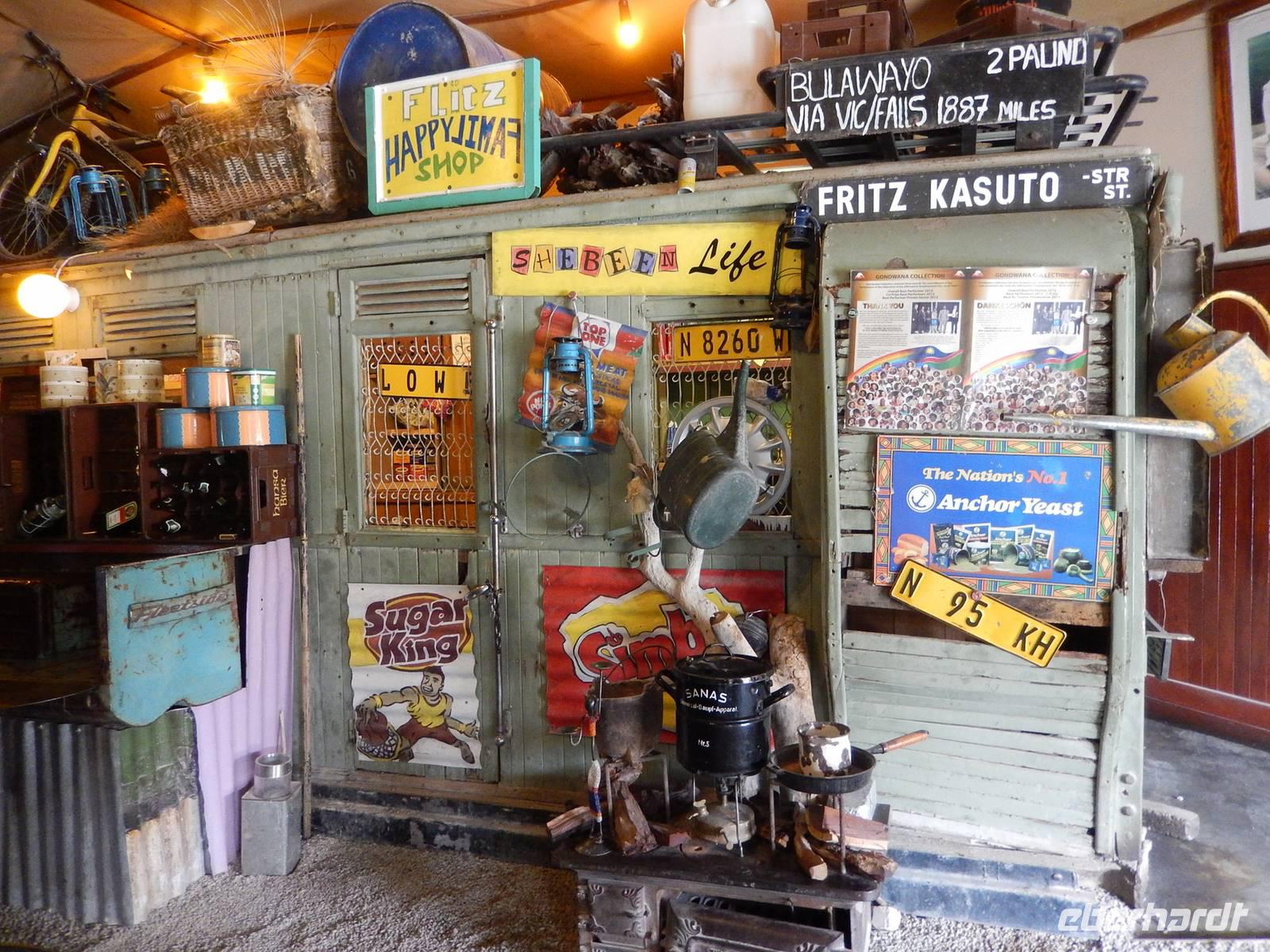 Die letzte Etappe unserer Reise führt uns von Otjiwarongo zurück nach Windhoek. In Okahandia legen wir eine Pause auf dem Schnitzermarkt ein, wo fantasievolle Schnitzereien aus Holz angeboten werden. Eine prima Gelegenheit, um noch Andenken oder typische Mitbringsel für daheim zu erstehen. Zum Abschluss gönnen wir uns noch einen Rock Shandy im Crafts Centre in Windhoek... und so schließt sich der Kreis. Voller wundervoller Eindrücke sitzen wir an der selben Stelle wie vor drei Wochen und können in lebendigen Erinnerungen schwelgen. Schließlich fliegen wir über Johannesburg und München wieder heimwärts und eine fantastische Reise durch Namibia geht zu Ende.