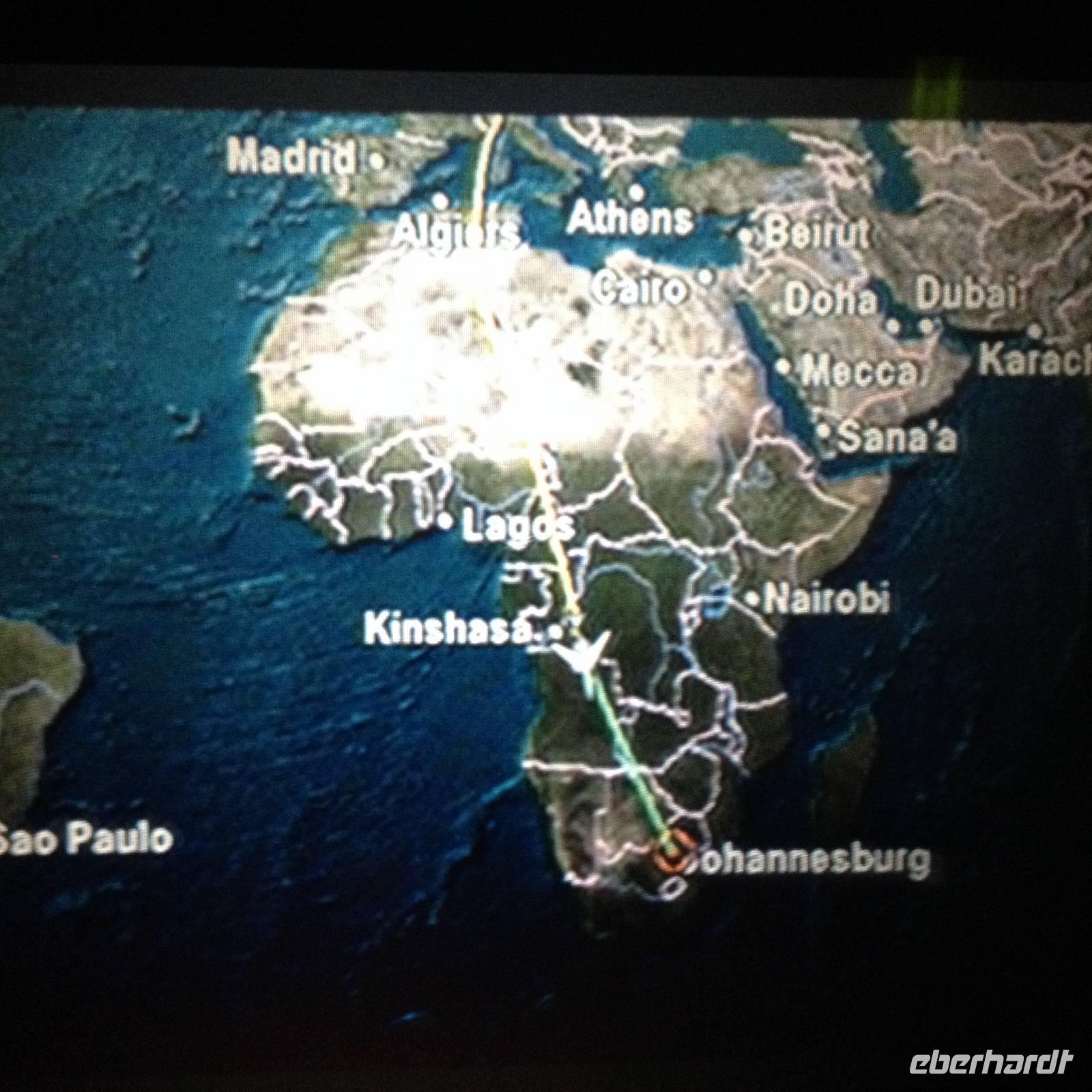 Am Flughafen verabschiedeten wir uns von unserem versierten Fahrer und zugleich sehr gutem Reiseleiter Claus, gaben unser Gepäck ab und machten uns zunächst auf dem Weg nach Johannesburg in Südafrika. Hier hatten wir noch einmal die letzte Gelegenheit, das letzte Geld loszuwerden bevor es mit South African Airways einmal von Süd nach Nord über ganz Afrika zurück nach München ging.