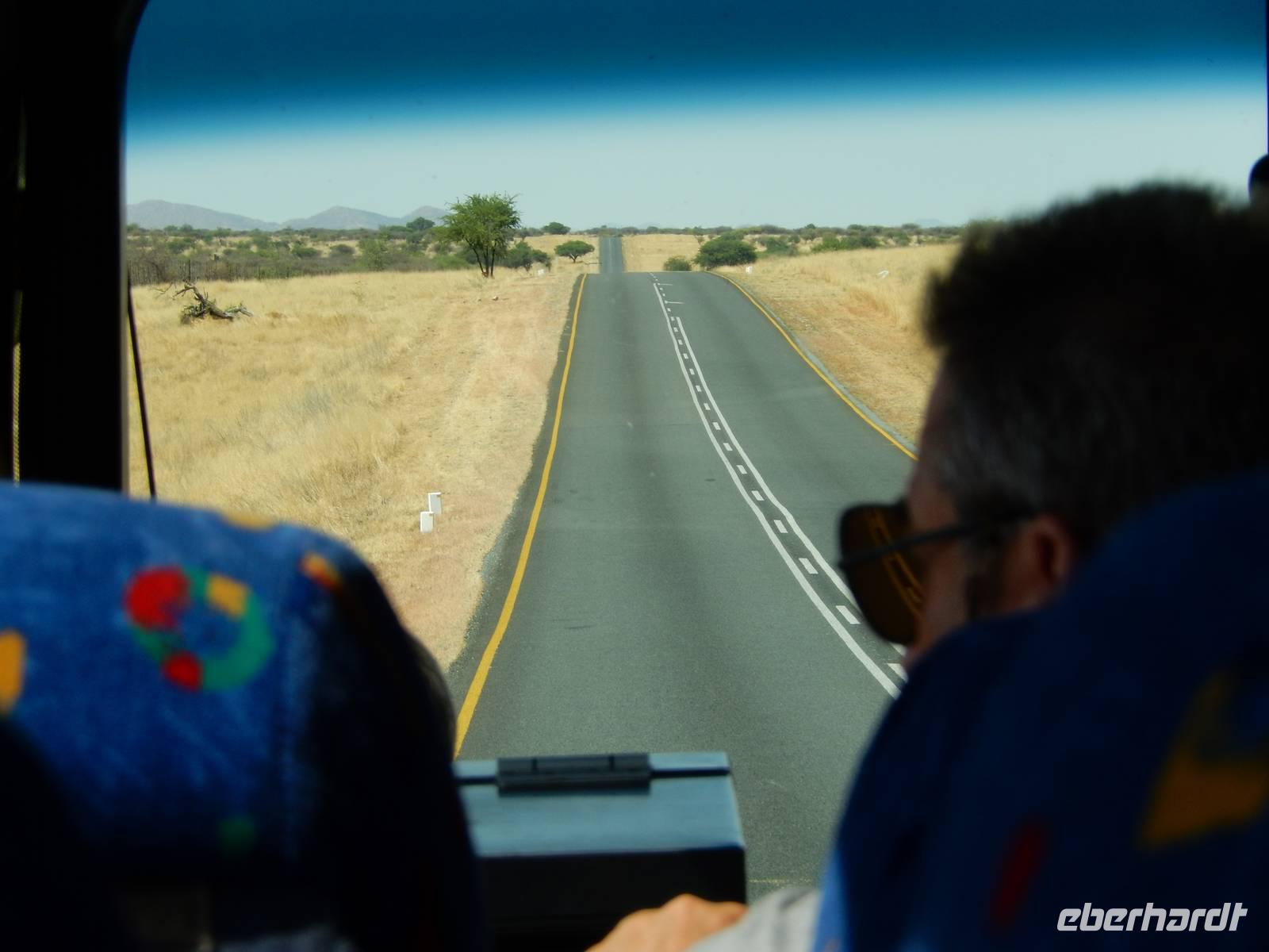 So langsam näherten wir uns wieder der Hauptstadt Windhoek. Bis zum Flughafen war es also nicht mehr allzu weit. Doch eine wichtige Frage stellten wir uns alle noch: Wieviel Kilometer werden wir wohl in den letzten 19 Tagen zurückgelegt haben? Nur Claus konnte es wissen und so machten wir daraus noch eine kleine Quizrunde. Die Schätzungen waren schnell abgegeben.