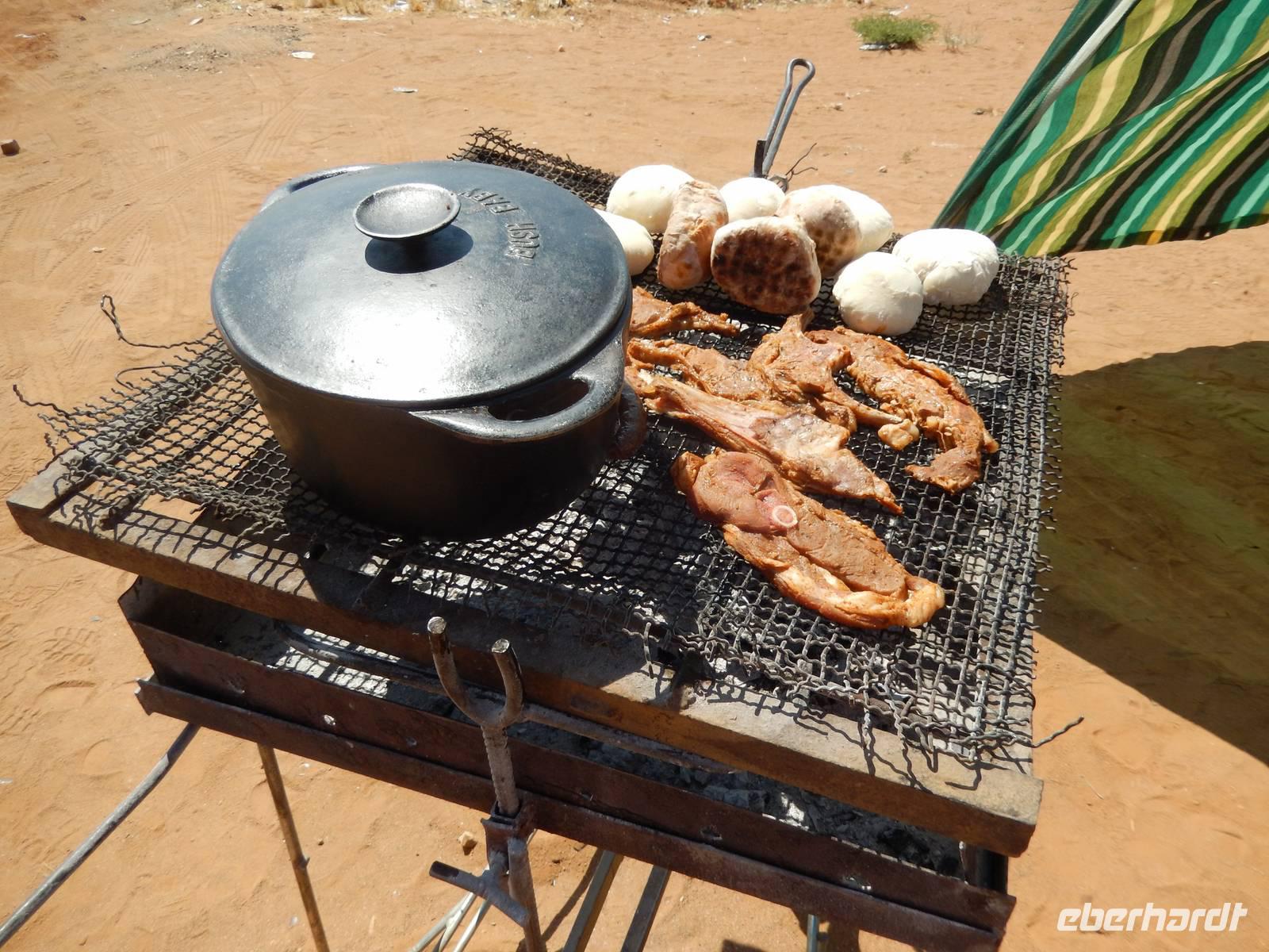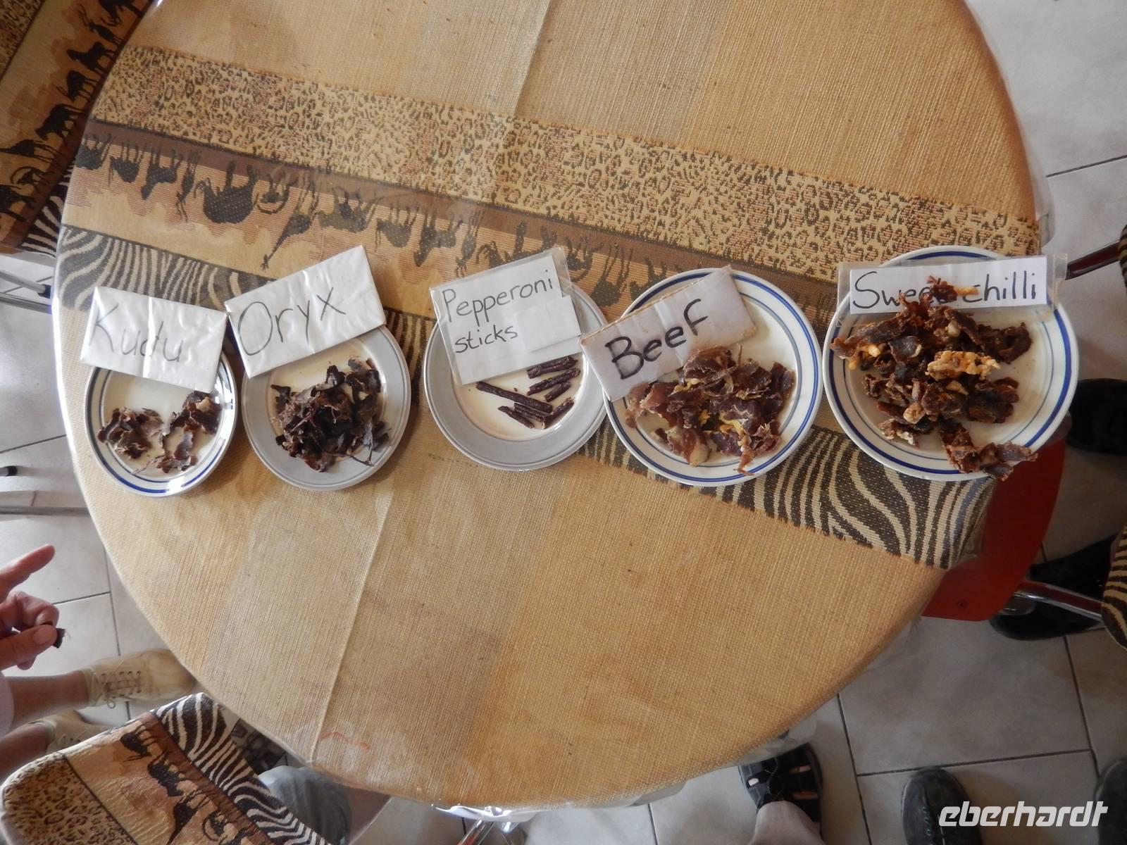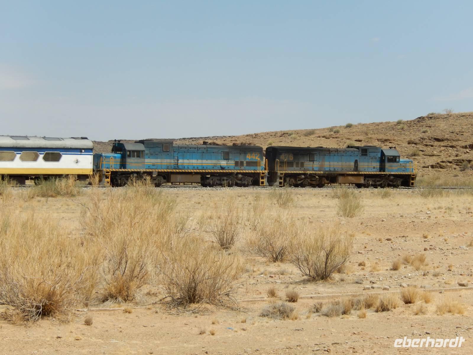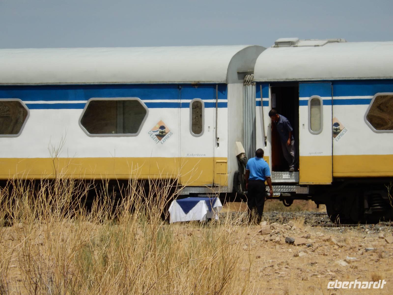 Während unserer Fahrt dann wieder in Richtung Norden, begegneten wir dem Desert Express - einem Luxuszug, der Bahnliebhaber durch das südliche Afrika bringt. An einer kleinen Raststelle kauften wir leckeres Biltong, eine Spezialität der südafrikanischen und namibischen Küche, bestehend aus luftgetrocknetem Rindfleisch oder Wildfleisch.