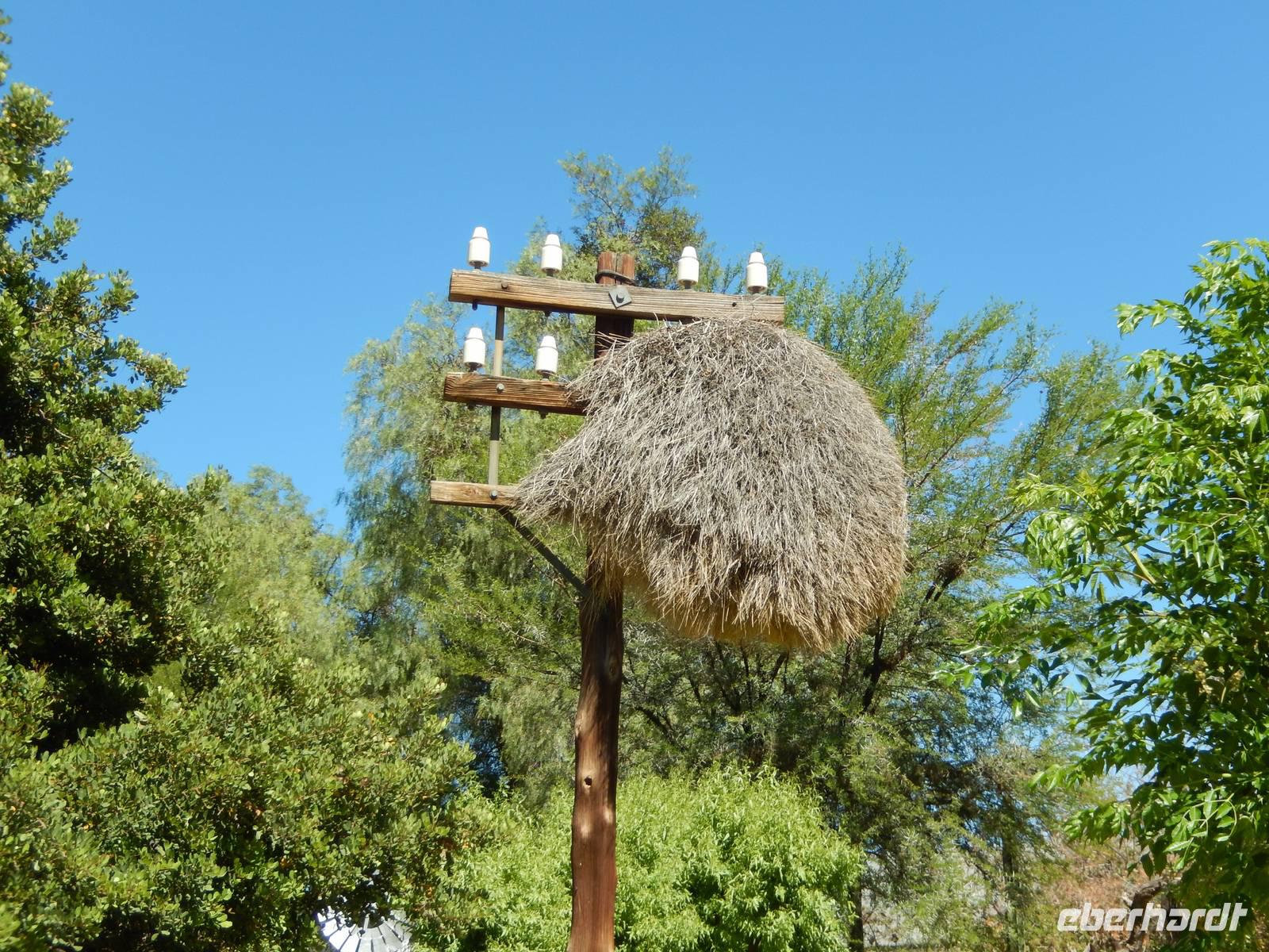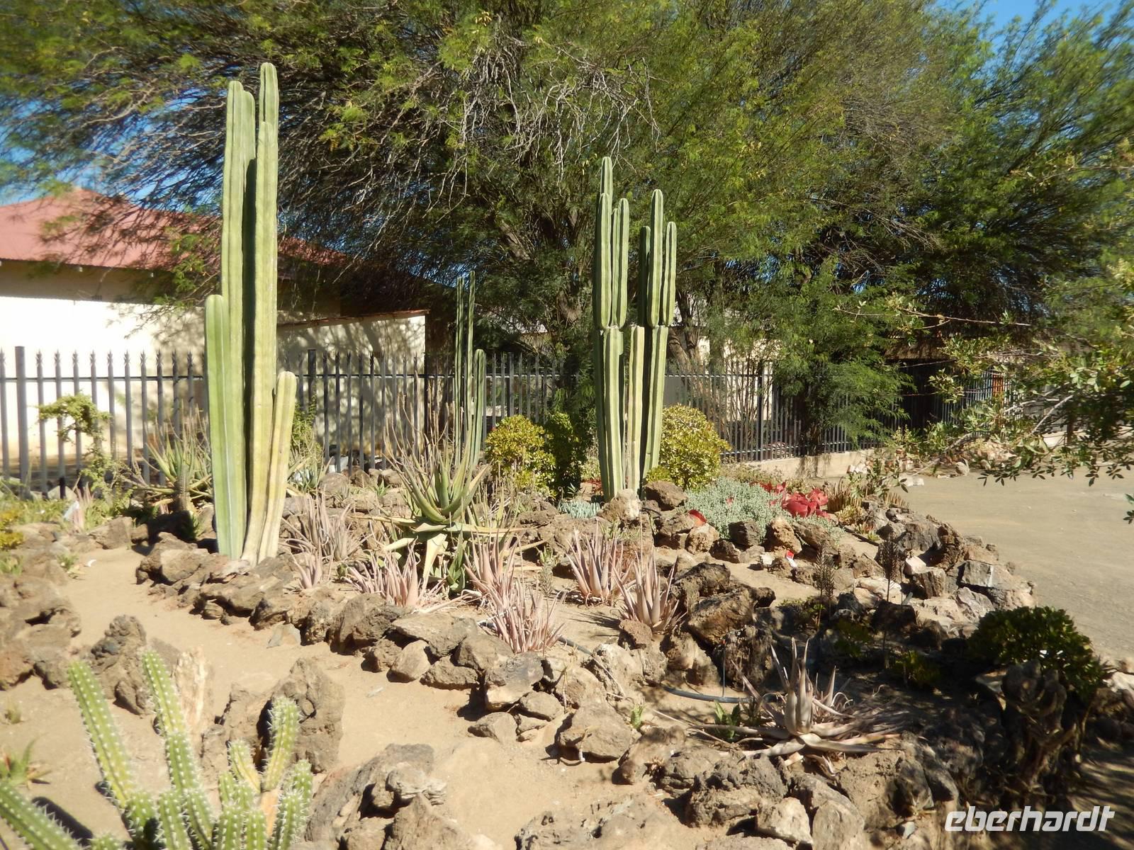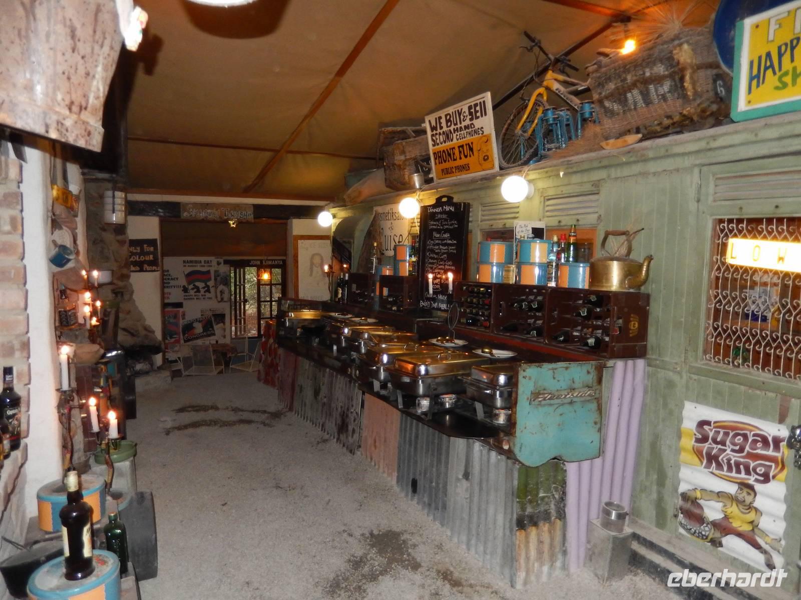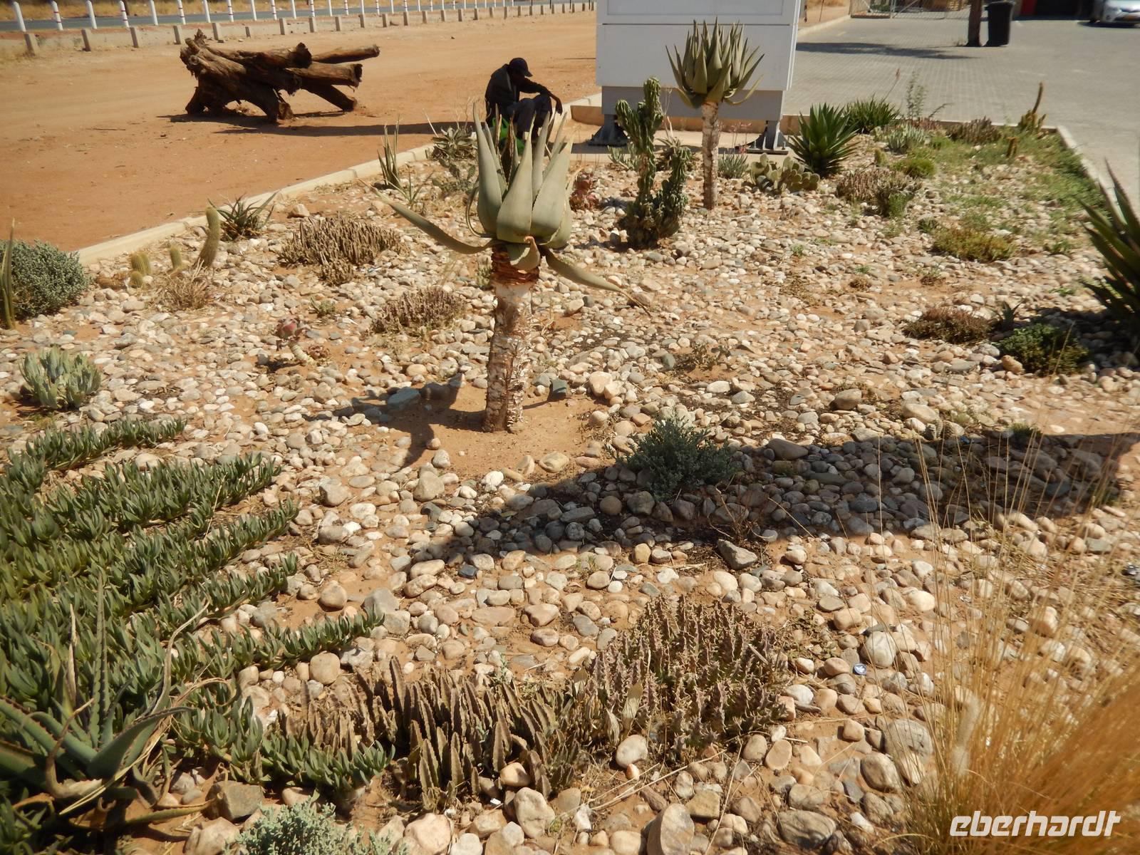 Die Mittagspause verbrachten wir in der Goanikontes-Oase im Swakoptal auf der Veranda einer netten Gaststätte. Ringsherum spendeten riesige Dattelpalmen lang ersehnten Schatten.