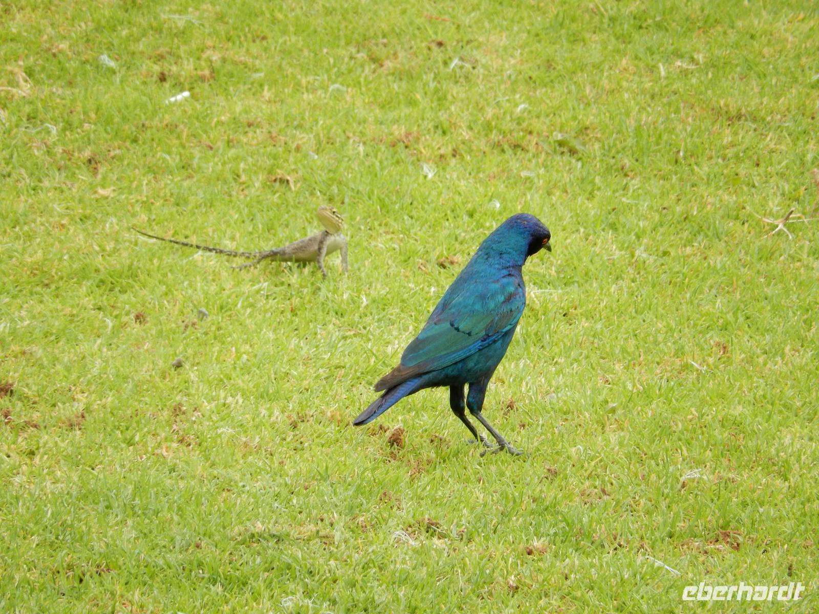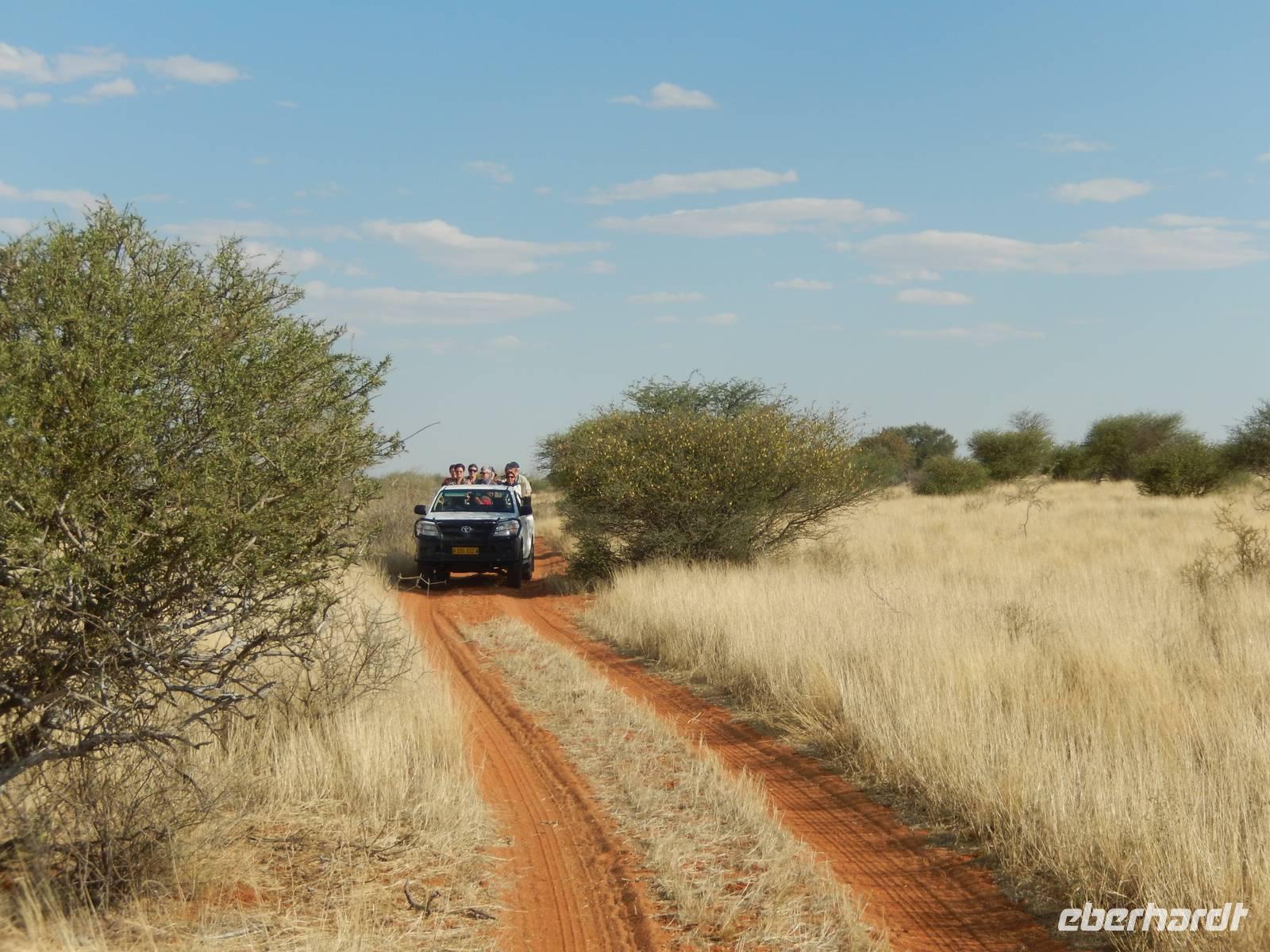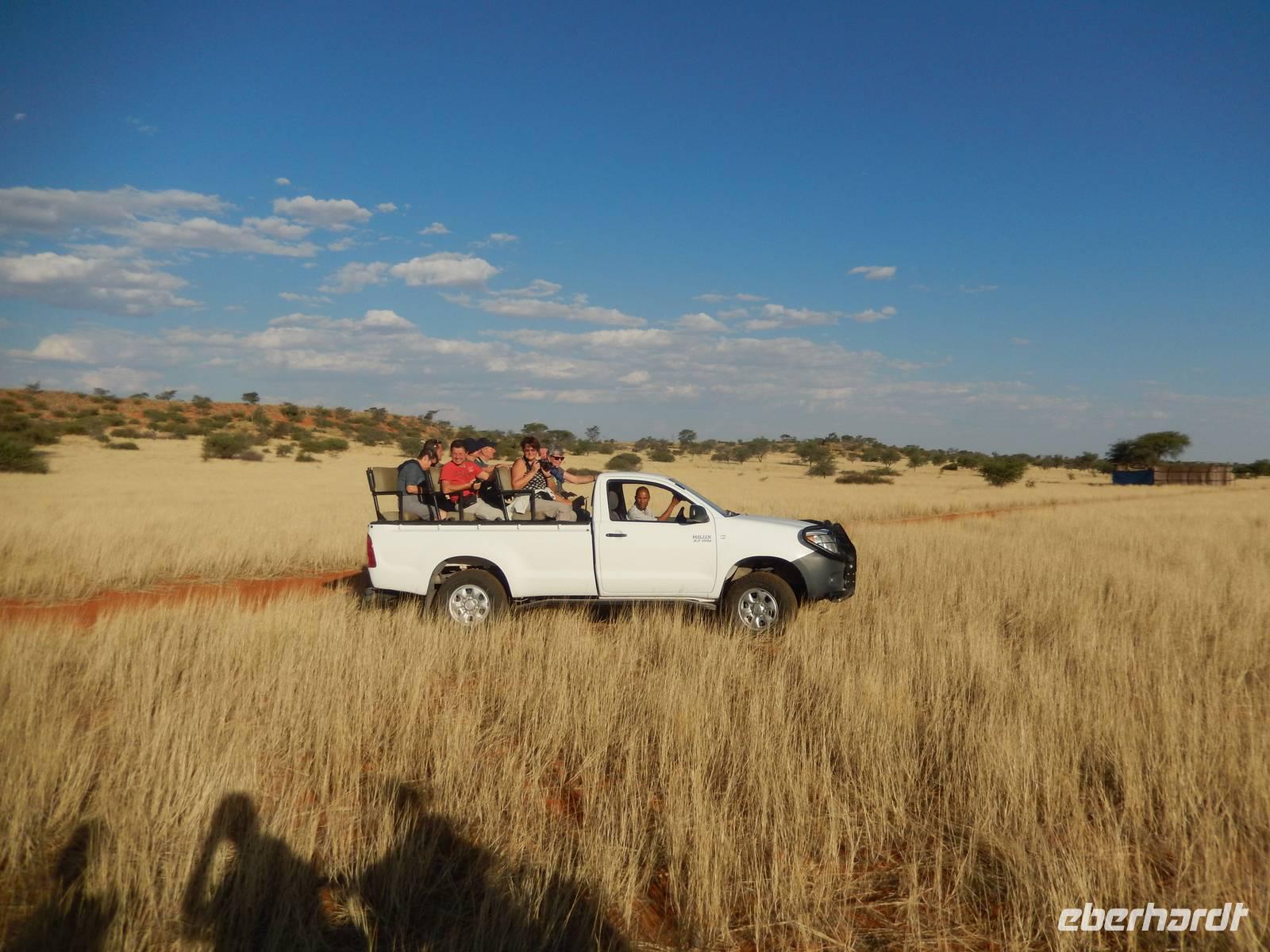 Um das richtige Gefühl einer Pirschfahrt zu erleben, entschieden wir uns heute für einen offenen Geländewagen. In dicke Decken eingehüllt, sauste uns der Wind um die Nase - wir waren auf Safari! Doch so viel Glück wie an den letzten beiden Tagen war uns heute nicht gegönnt. Vielmehr mussten wir unser Auge heute auf die kleineren Tiere des Parks richten. Es wäre ja auch zu viel verlangt, wenn wir drei Tage hintereinander die großen afrikanischen Tiere zu Gesicht bekämen.